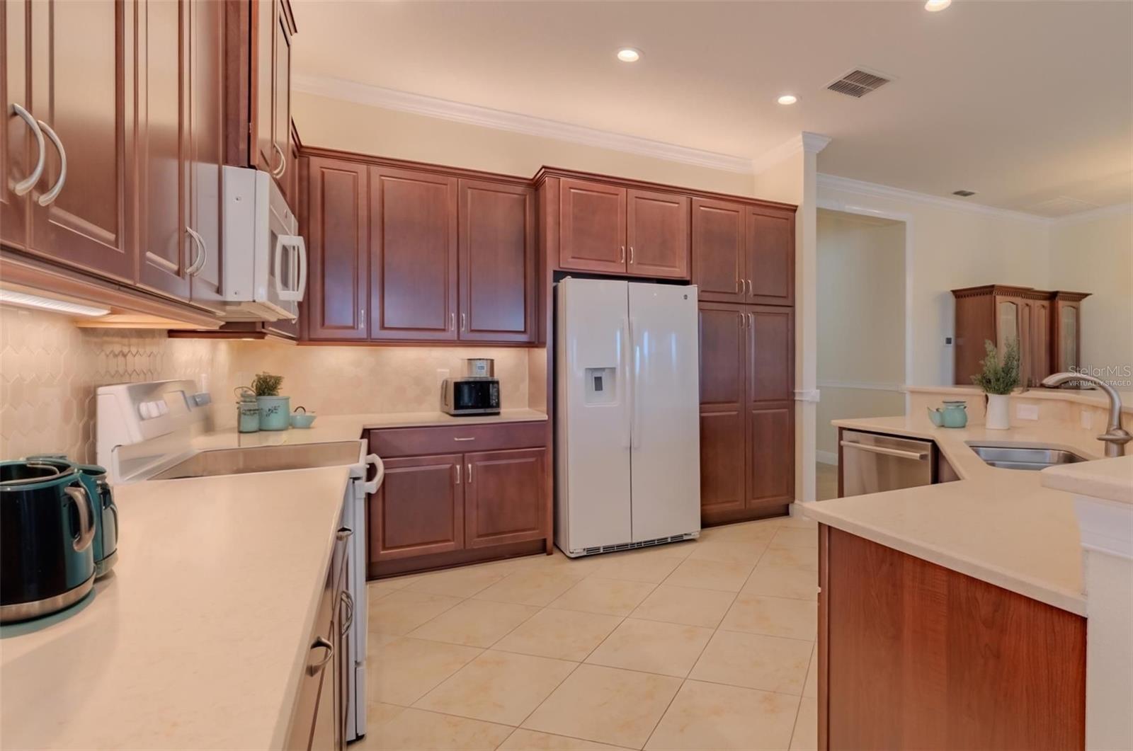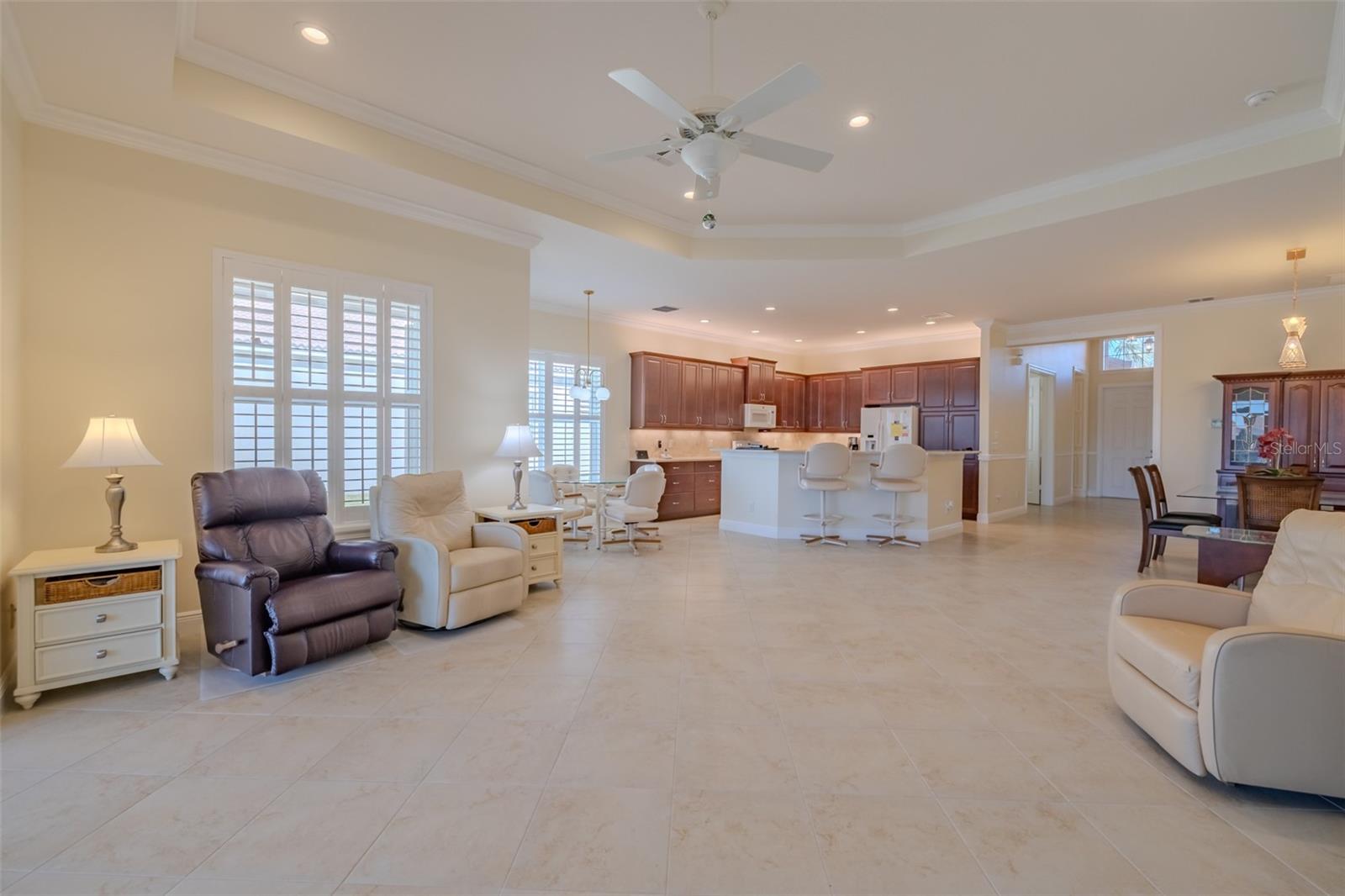 LINDA VISTA PARA A ÁGUA - CASA RECÉM-PINTADA - PRONTA PARA MUDAR - NOVO PREÇO! Aproveite este dia e comece a viver sua vida idílica em Valencia Lakes, a principal comunidade de adultos ativos com mais de 55 anos de Tampa Bay. Este modelo BARBADOS construído pela GL Homes em 2018 oferece 2.268 SF sob ar-condicionado, uma grande varanda/sala de tela com tremenda vista para o mar oeste e uma garagem tandem para 3 carros. Ao se aproximar, observe o paisagismo amigável da Flórida, o extenso espaço entre as casas, a calçada pavimentada em toda a largura, as venezianas sanfonadas e as beiradas da frente e de trás das casas. Ao entrar na casa, um hall de entrada com um teto imponente de 13'-14' oferece um espaço acolhedor especial e uma vista maravilhosa de dentro e fora da casa. Molduras de coroa e marcenaria personalizada percorrem toda a casa. À direita do hall de entrada fica o quarto 2, que possui um ventilador de teto iluminado, venezianas na janela saliente e um armário personalizado. À frente deste quarto há um banheiro completo de três peças. No meio e à direita do hall de entrada fica o terceiro quarto que possui portas francesas duplas, closet personalizado e ventilador de teto. Este pode ser um ótimo espaço para ser usado como escritório ou escritório. À frente do foyer há uma planta aberta que oferece sala de jantar, sala grande, cozinha e sala de jantar. A sala de jantar possui um lindo lustre em vidro vintage rosa com detalhes em ouro, destacando um espaço confortável que acomodará confortavelmente 8 pessoas. À frente da sala de jantar há uma grande sala ampla com teto de bandeja de 10'-11' com ventilador de teto, uma porta de vidro deslizante de 12' de largura adornada com uma cortina deslizante retrátil. Adjacente à grande sala encontra-se a dinette que é um espaço perfeito para refeições diárias ou íntimas. A sala de jantar recebe luz natural proporcionada por uma porta de vidro deslizante e uma grande janela. A cozinha possui uma ilha de trabalho com balcão alto para café da manhã, pia dupla e amplo balcão. Armários de bordo maciço de 42 "com 4 gavetas para panelas e uma despensa com prateleiras deslizantes, eletrodomésticos GE, balcões de quartzo e backsplash de pedra arabesco tornam esta cozinha funcional e bonita. O quarto principal fica na parte traseira da casa e oferece excelente separação dos outros dois quartos. Possui dois closets personalizados, uma janela muito grande adornada com persianas através da qual você pode ver o pôr do sol incrível, um teto de bandeja de 10' a 11' e um maravilhoso banheiro privativo. O banheiro privativo tem duas pias separadas, um amplo chuveiro e um vaso sanitário para o banheiro. A garagem tandem para 3 carros com seu piso de epóxi brilhante, abridor de porta de garagem com acionamento por correia que controla as portas de garagem isoladas e uma porta de saída adicional certamente colocará outro sorriso em seu coração. Você usará a terceira garagem para armazenamento adicional, uma oficina ou talvez aquele carro dos sonhos? sistema de amaciante e novo aquecedor de água STATE de 50 galões (2024). Valencia Lakes oferece um estilo de vida vibrante em estilo resort centrado em um clube espetacular de 40.000 pés quadrados, entretenimento ao vivo, danças, mais de 100 clubes e um café recém-reformado. salas de cartas/bilhar, jardim comunitário, parque para cães, piscina estilo resort, piscinas de resistência e olímpicas, saunas seca e a vapor e academia de ginástica de última geração com aulas profissionais.
