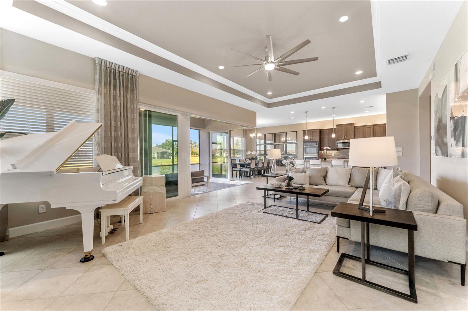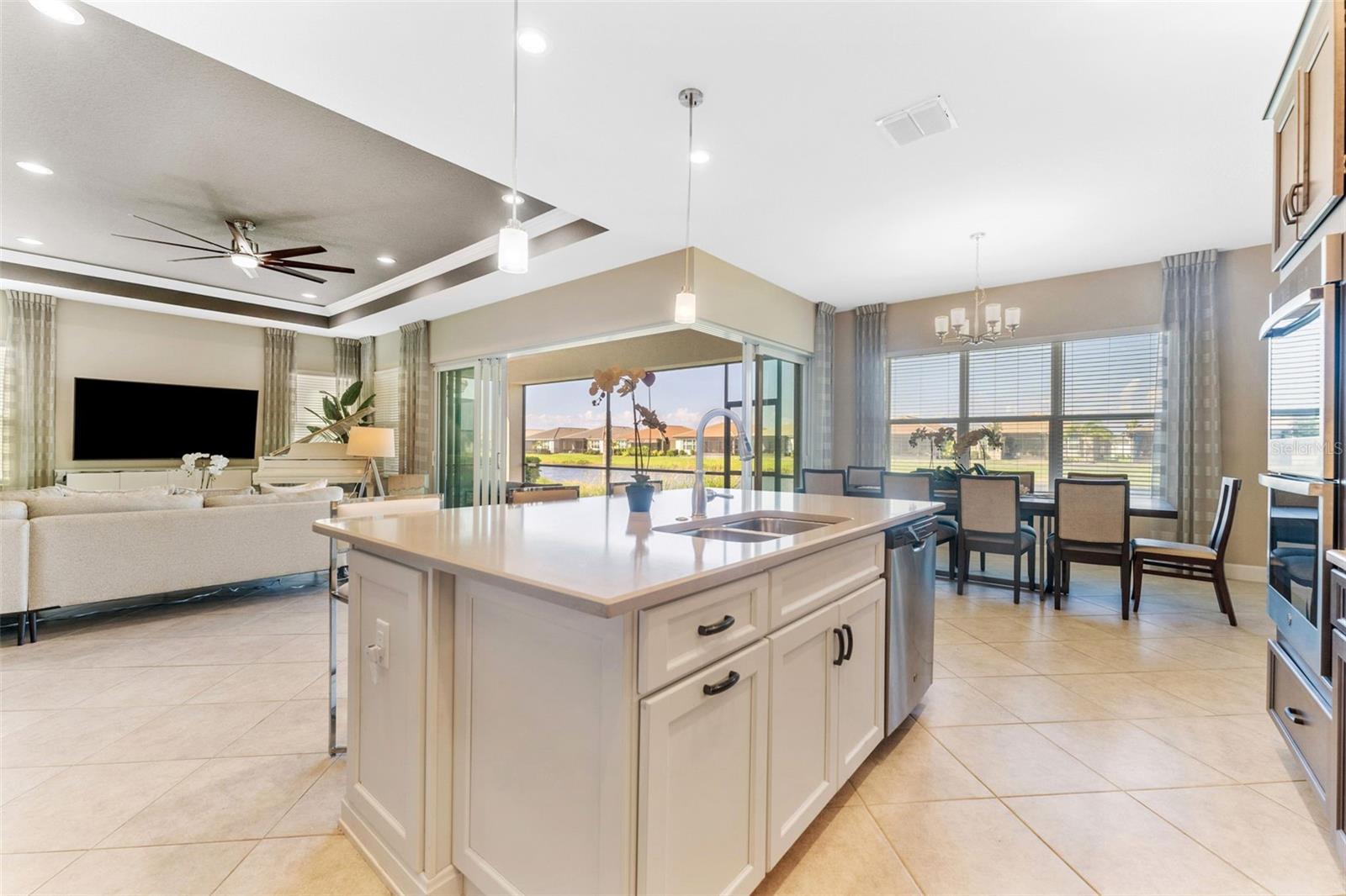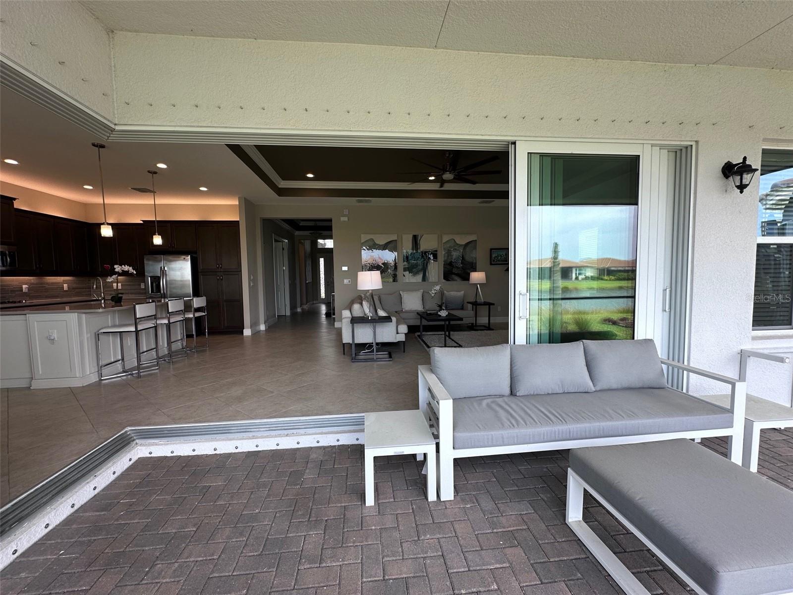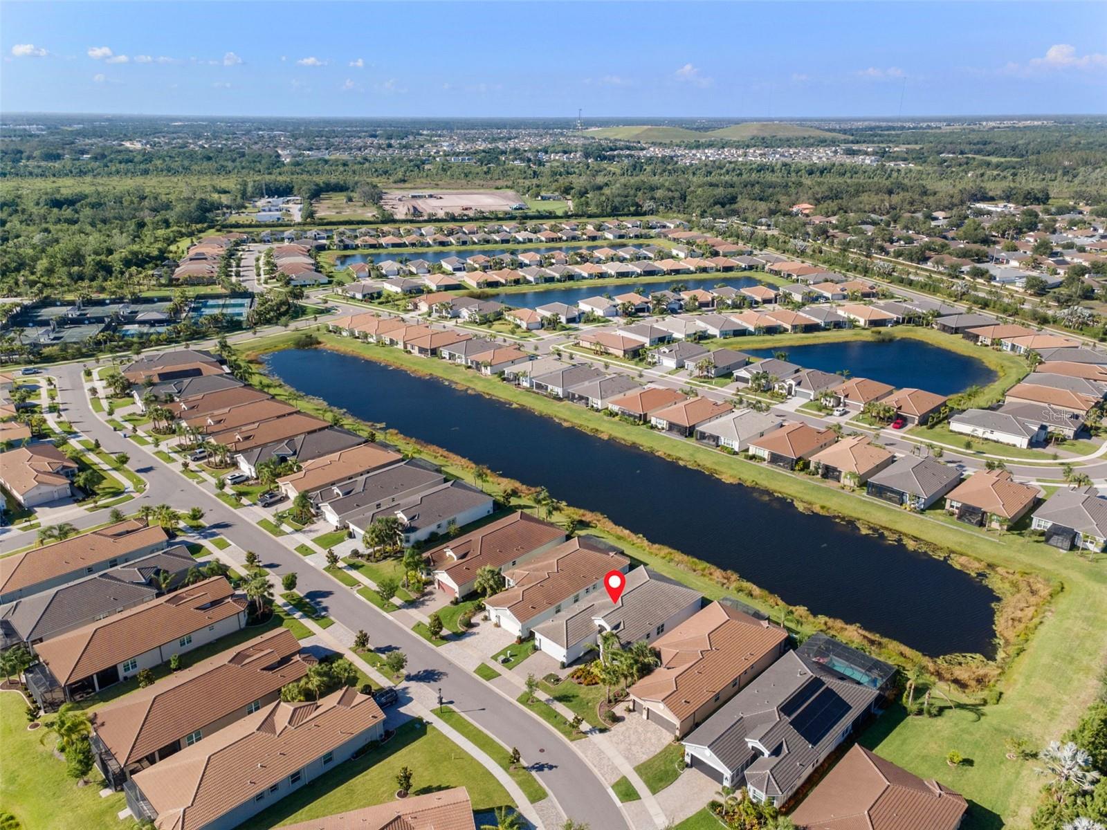 Impressionante casa em Valencia del Sol (55+) com uma sala de estar que você precisa ver! *VA ASSUMÍVEL 5,25%* TAMBÉM DISPONÍVEL MOBILADO, PARA ALUGAR! Tudo começa no grande foyer com seu teto duplo (15 pés) e sancas detalhadas. Pisos de cerâmica diagonais levam você à Grande Sala, onde uma abundância de luz irradia das janelas grandes e das portas deslizantes de vidro de “canto zero” que cobrem praticamente toda a parede de 32 pés. A engenharia dos controles deslizantes de 5 painéis é em estilo acordeão e, para os meses mais frios do ano, você vai adorar tê-los totalmente abertos, expandindo sua sala de estar para uma área de estar ainda maior. A varanda de 25 pés fica de frente para um lago sereno ao NE e, seja para tirar uma soneca à tarde ou observar as estrelas à noite, você vai se apaixonar por ter um espaço como este. A cozinha possui armários shaker de 42 "de fechamento suave em cor de nogueira suavizada, fogão a gás, bancadas de quartzo claro e um forno duplo GE habilitado para WiFi. A sala de jantar e a sala de estar - com teto de bandeja de 12 pés + sanca própria - posicionam-se quase perfeitamente em torno do balcão da ilha. A primeira porta à direita da sala de estar é a exclusiva Suíte Master - dois banheiros privativos e dois closets! Teto alto de bandeja de 12 pés nesta sala também. Ao voltar para no corredor, a sala flexível funcional (quarto ou escritório) fica à sua esquerda. Um banheiro de hóspedes separado e um quarto de hóspedes - com janela saliente e closet - unem tudo. Lavanderia completa com W/D mais recente e amplos armários ficam ao lado da garagem para 2 carros. comida!), pickleball, tênis, academia (com equipamentos novos) e até um parque para cães. Eventos e atividades como karaokê, jogos de cartas, artes e ofícios, hidroginástica, dança/ioga e muito mais!