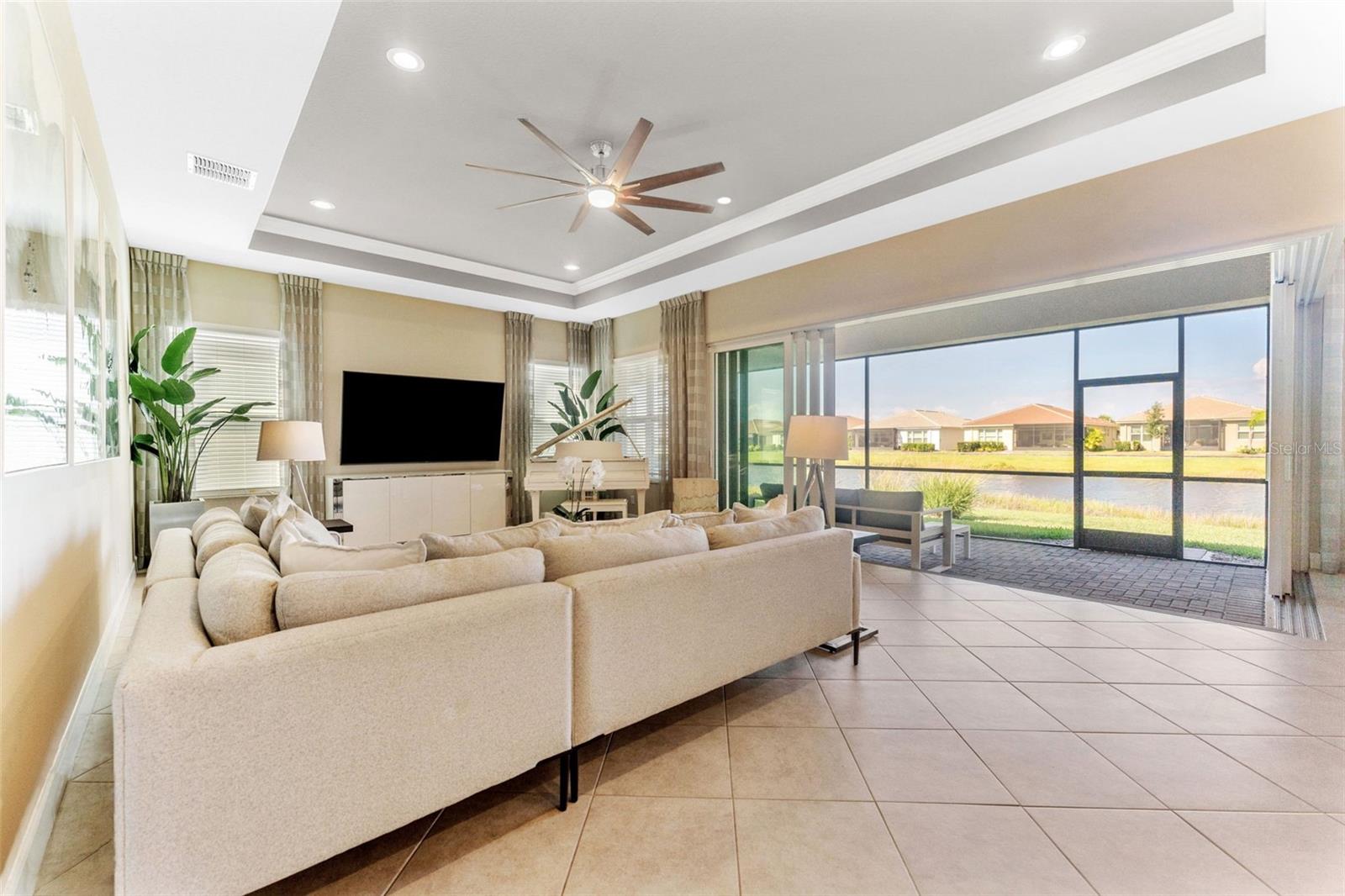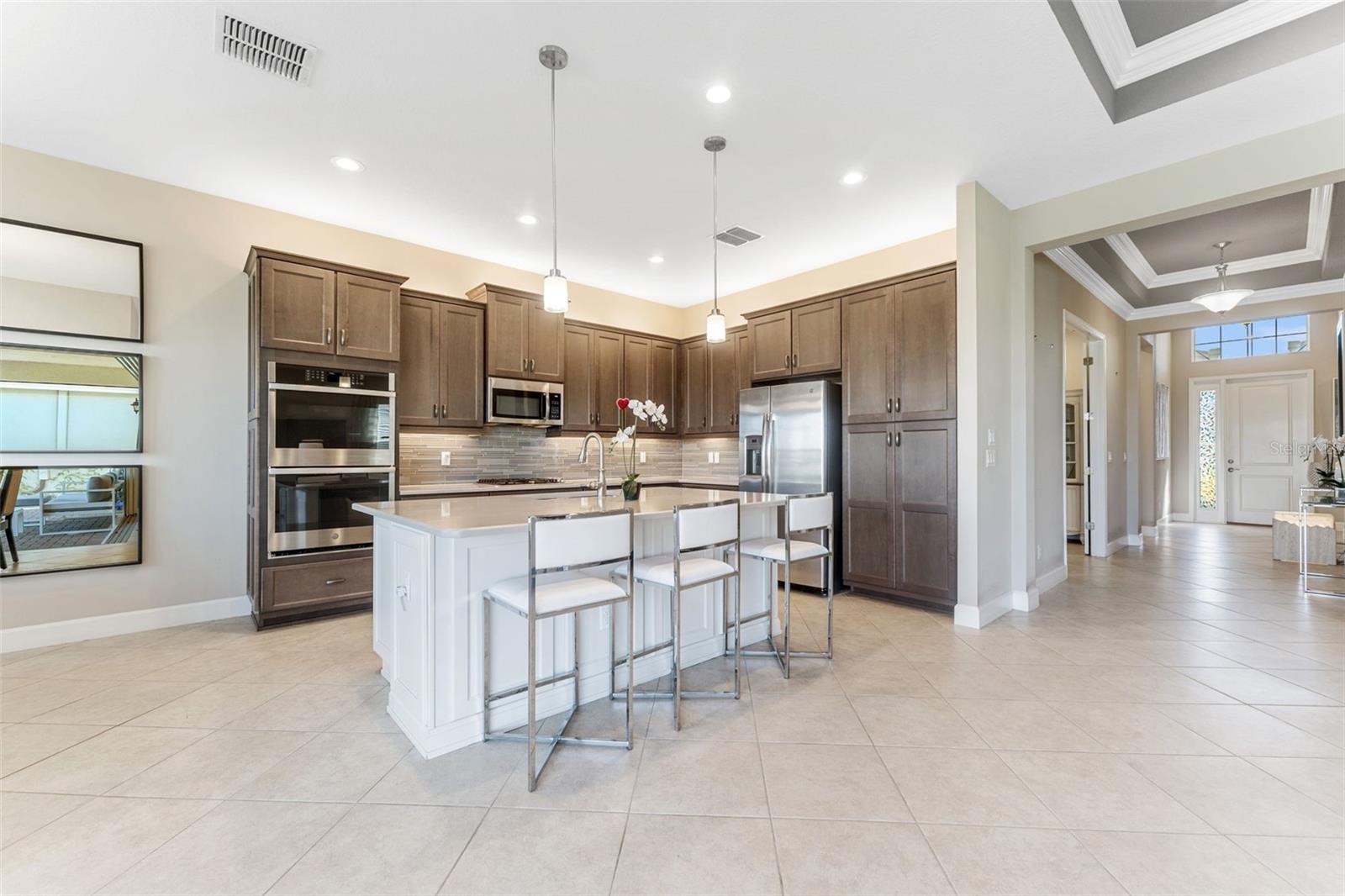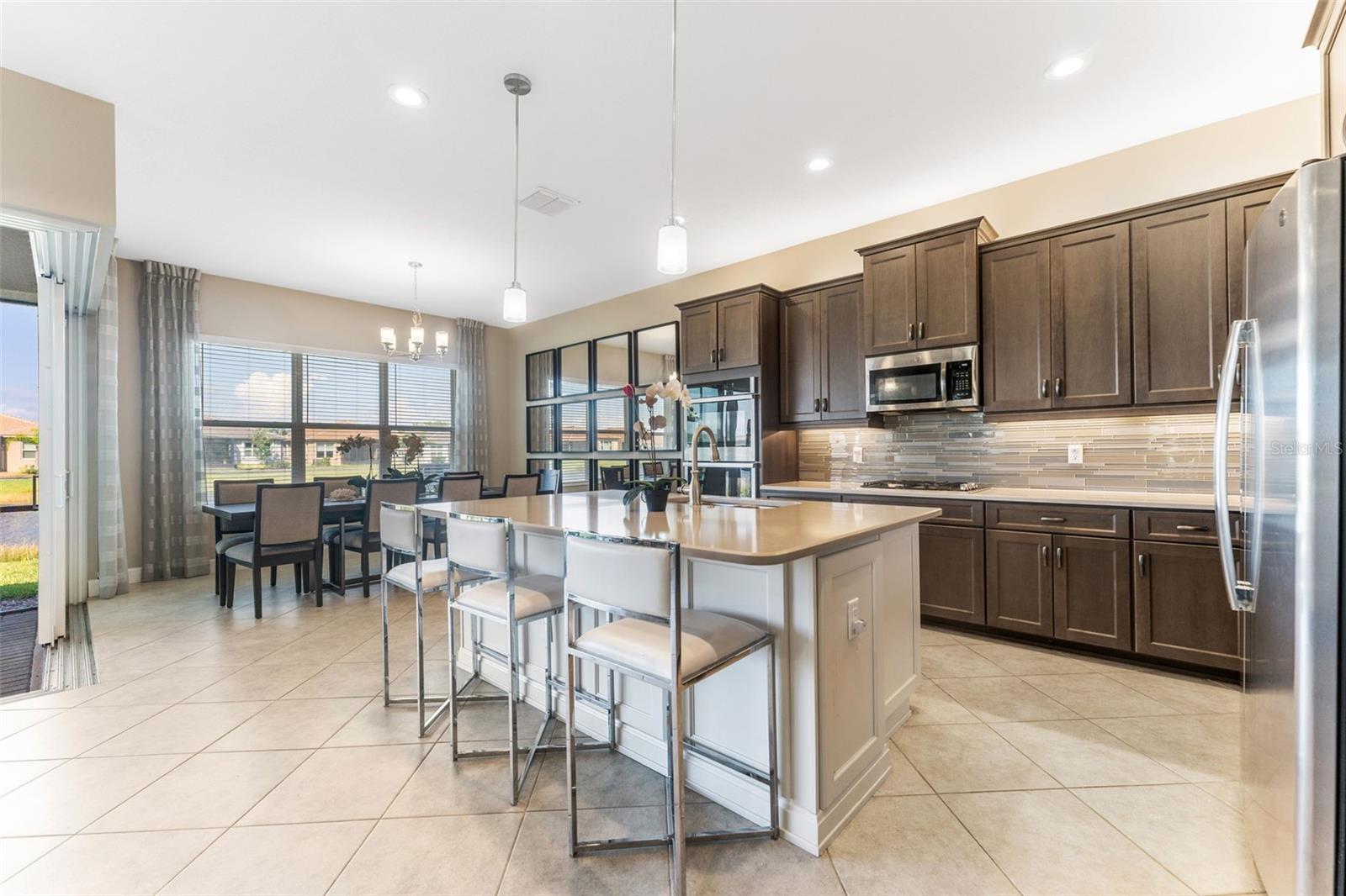 Impressionante casa em Valencia del Sol (55+) com uma sala de estar que você precisa ver! *VA ASSUMÍVEL 5,25%* TAMBÉM DISPONÍVEL MOBILADO, PARA ALUGAR! Tudo começa no grande foyer com seu teto duplo (15 pés) e sancas detalhadas. Pisos de cerâmica diagonais levam você à Grande Sala, onde uma abundância de luz irradia das janelas grandes e das portas deslizantes de vidro de “canto zero” que cobrem praticamente toda a parede de 32 pés. A engenharia dos controles deslizantes de 5 painéis é em estilo acordeão e, para os meses mais frios do ano, você vai adorar tê-los totalmente abertos, expandindo sua sala de estar para uma área de estar ainda maior. A varanda de 25 pés fica de frente para um lago sereno ao NE e, seja para tirar uma soneca à tarde ou observar as estrelas à noite, você vai se apaixonar por ter um espaço como este. A cozinha possui armários shaker de 42 "de fechamento suave em cor de nogueira suavizada, fogão a gás, bancadas de quartzo claro e um forno duplo GE habilitado para WiFi. A sala de jantar e a sala de estar - com teto de bandeja de 12 pés + sanca própria - posicionam-se quase perfeitamente em torno do balcão da ilha. A primeira porta à direita da sala de estar é a exclusiva Suíte Master - dois banheiros privativos e dois closets! Teto alto de bandeja de 12 pés nesta sala também. Ao voltar para no corredor, a sala flexível funcional (quarto ou escritório) fica à sua esquerda. Um banheiro de hóspedes separado e um quarto de hóspedes - com janela saliente e closet - unem tudo. Lavanderia completa com W/D mais recente e amplos armários ficam ao lado da garagem para 2 carros. comida!), pickleball, tênis, academia (com equipamentos novos) e até um parque para cães. Eventos e atividades como karaokê, jogos de cartas, artes e ofícios, hidroginástica, dança/ioga e muito mais!