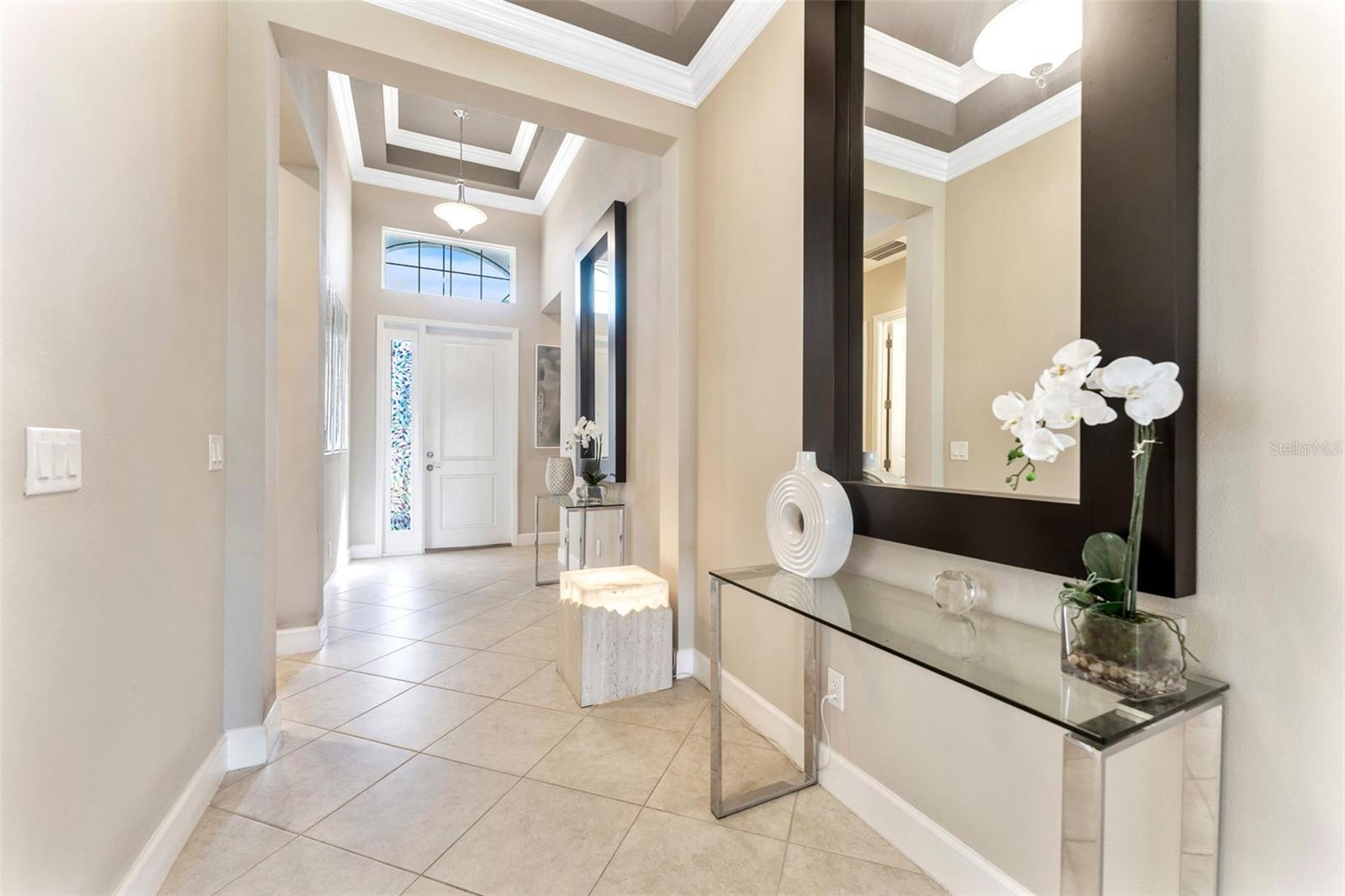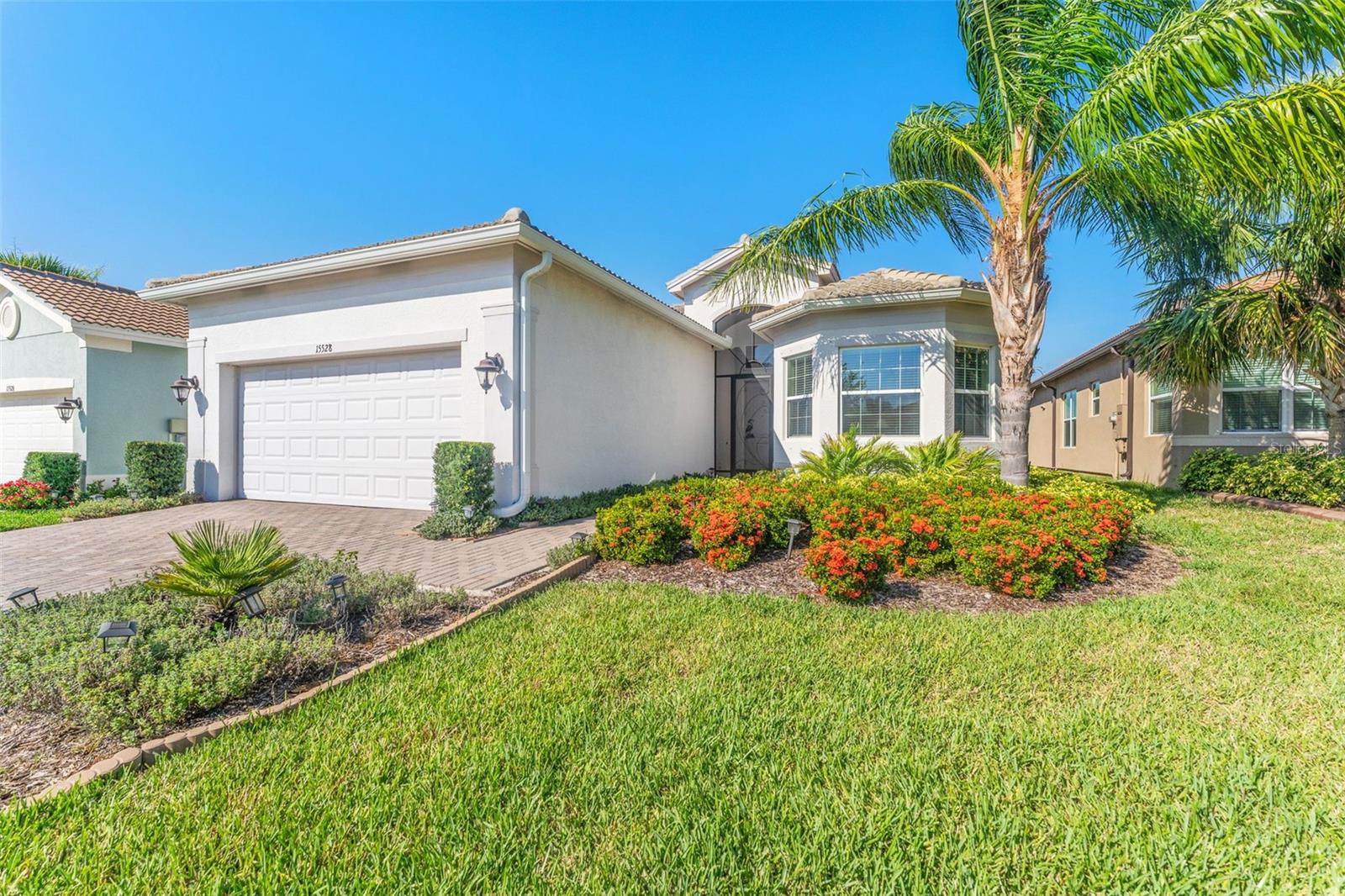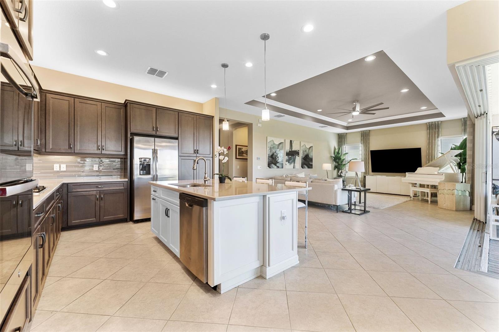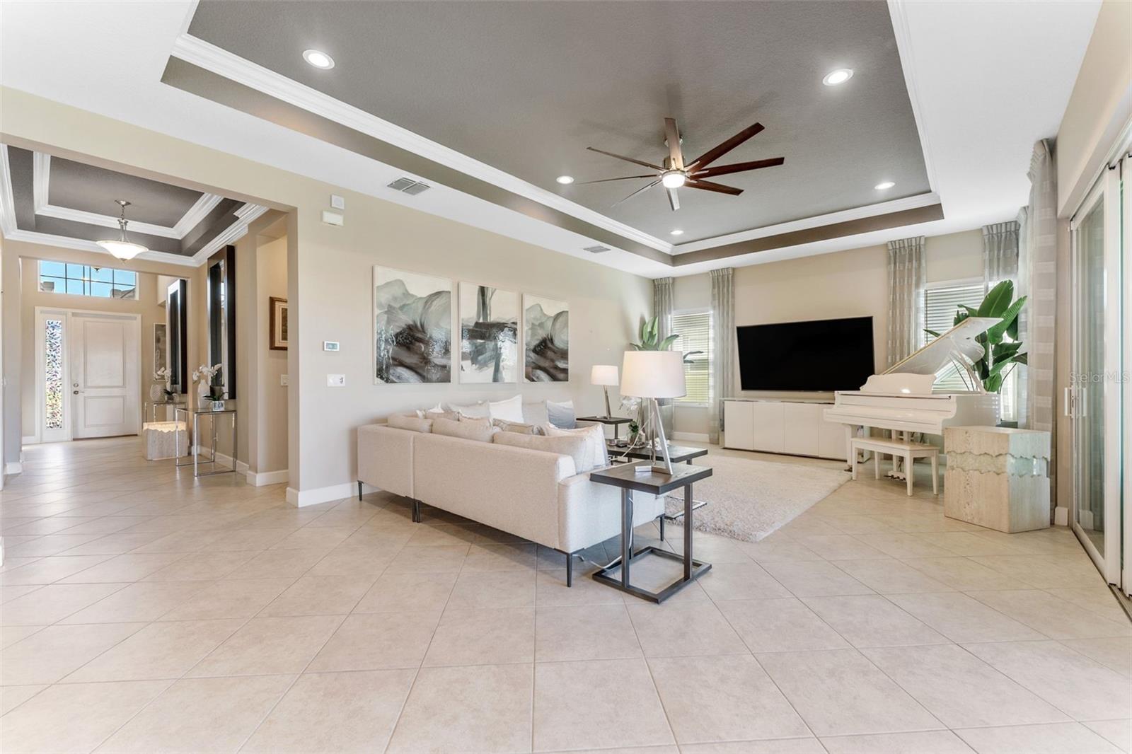 Impressionante casa em Valencia del Sol (55+) com uma sala de estar que você precisa ver! *VA ASSUMÍVEL 5,25%* TAMBÉM DISPONÍVEL MOBILADO, PARA ALUGAR! Tudo começa no grande foyer com seu teto duplo (15 pés) e sancas detalhadas. Pisos de cerâmica diagonais levam você à Grande Sala, onde uma abundância de luz irradia das janelas grandes e das portas deslizantes de vidro de “canto zero” que cobrem praticamente toda a parede de 32 pés. A engenharia dos controles deslizantes de 5 painéis é em estilo acordeão e, para os meses mais frios do ano, você vai adorar tê-los totalmente abertos, expandindo sua sala de estar para uma área de estar ainda maior. A varanda de 25 pés fica de frente para um lago sereno ao NE e, seja para tirar uma soneca à tarde ou observar as estrelas à noite, você vai se apaixonar por ter um espaço como este. A cozinha possui armários shaker de 42 "de fechamento suave em cor de nogueira suavizada, fogão a gás, bancadas de quartzo claro e um forno duplo GE habilitado para WiFi. A sala de jantar e a sala de estar - com teto de bandeja de 12 pés + sanca própria - posicionam-se quase perfeitamente em torno do balcão da ilha. A primeira porta à direita da sala de estar é a exclusiva Suíte Master - dois banheiros privativos e dois closets! Teto alto de bandeja de 12 pés nesta sala também. Ao voltar para no corredor, a sala flexível funcional (quarto ou escritório) fica à sua esquerda. Um banheiro de hóspedes separado e um quarto de hóspedes - com janela saliente e closet - unem tudo. Lavanderia completa com W/D mais recente e amplos armários ficam ao lado da garagem para 2 carros. comida!), pickleball, tênis, academia (com equipamentos novos) e até um parque para cães. Eventos e atividades como karaokê, jogos de cartas, artes e ofícios, hidroginástica, dança/ioga e muito mais!