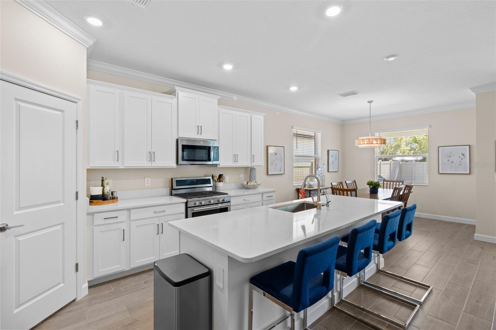 Casa elegante e profissionalmente decorada de 2 quartos e 2 banheiros com uma sala flexível (converte facilmente em um espaçoso 3º quarto) em Medley em South Shore Bay, um primeiro-ministro fechado. Construído em 2024, esta casa pronta para mover-in possui um layout de conceito aberto com tetos altos, luz natural abundante e molduras personalizadas por toda parte. A cozinha do chef inclui eletrodomésticos atualizados, como uma geladeira da porta francesa LG com gelo artesanal, um fogão a gás KitchenAid de 5 queimadores, uma grande barra de café da manhã e uma espaçosa área de jantar que se abre para o espaço principal-ideal para entretenimento. A suíte do proprietário está localizada na parte traseira da casa e inclui um banho no estilo de spa e um closet. O segundo quarto está posicionado na frente, junto com uma sala flexível que pode servir como um terceiro quarto, escritório ou espaço para hobby. Um Lanai exibido abre para um quintal particular, com uma nova cerca de privacidade de vinil de 6 '. Destaques adicionais incluem uma garagem de pavimentação, garagem para dois carros com espaço de carrinho de golfe, lavanderia de grandes dimensões, sistema de segurança aprimorado, iluminação de grife e exterior profissionalmente paisagístico. Desfrute de comodidades no estilo resort, incluindo um clube, piscina, fitness center, quadras esportivas, trilhas para caminhada e uma lagoa de cristal de 5,5 acres para caiaque, paddleboarding e relaxamento. Localizado em Wimauma, perto do centro da cidade de Sun, compras, restaurantes, assistência médica e recreação ao ar livre. Experimente a baixa manutenção de luxo que vive em uma das mais vibrantes comunidades de 55 mais vibrantes de Tampa Bay.