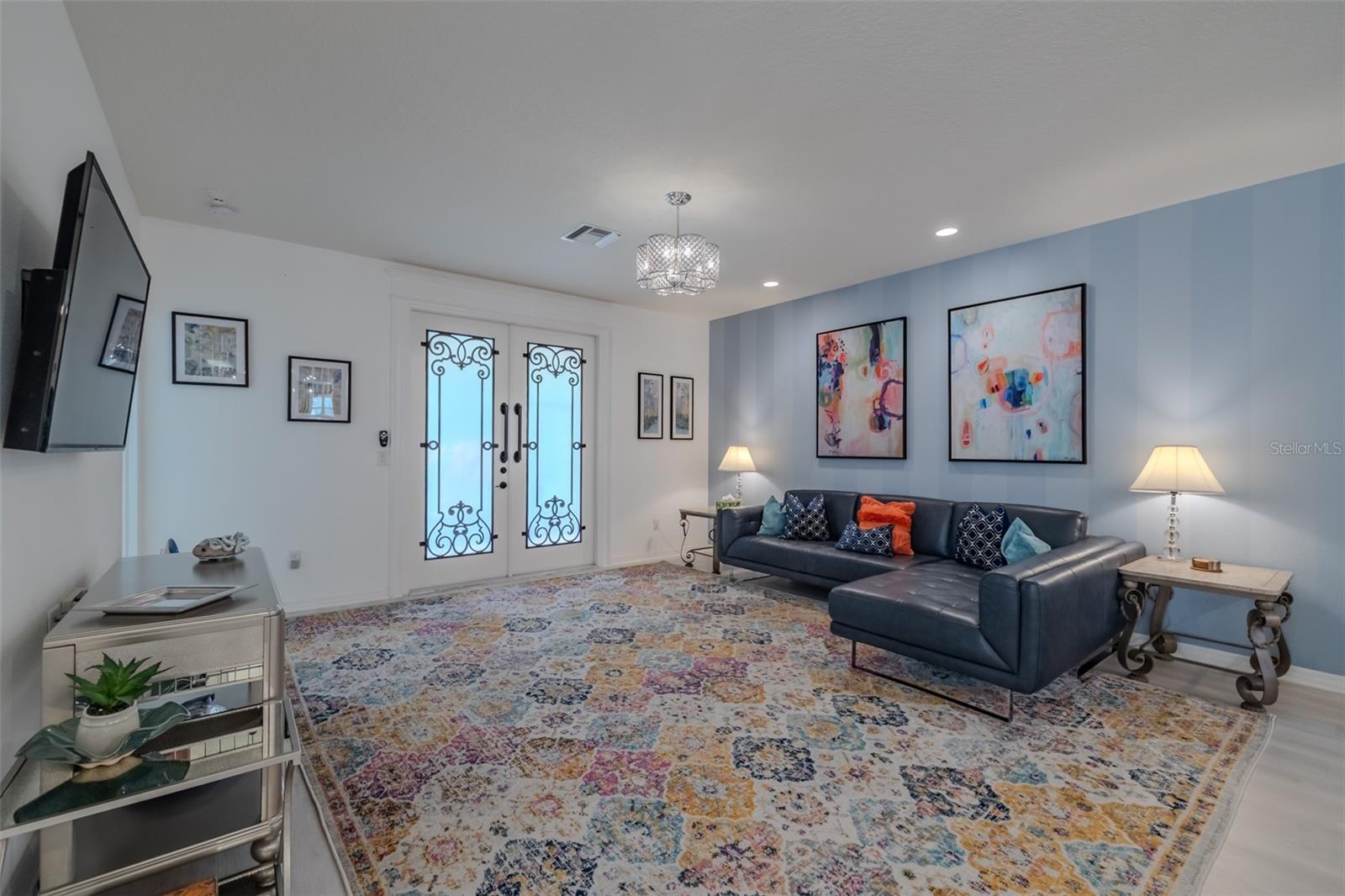 Você está pronto para Isabella? Este GL Homes construiu Isabella Villa está chamando seu nome, mas você pode ouvi -la? Com quase 1500 anos de idade, que oferece dois quartos, dois banheiros, uma sala de jantar, sala grande, cozinha com lanchonete e um lanai verdadeiramente particular, isso é garantido para atender e exceder suas necessidades e desejos. Uma entrada de automóveis e uma passarela nas pavimentadas e os jardins bem cuidados levam a um imponente pórtico da frente que acolhe a família e os amigos. Belos pisos laminados são a base de um ambiente acolhedor que é adornado com elegância por toda parte. Além do hall de entrada, há um plano de piso aberto que apresenta uma grande sala grande com vista para a linda sala de jantar com seu trabalho de fábrica personalizado e prateleiras embutidas e uma cozinha que agradará o chef mais exigente. A grande sala de 17'x15 apresenta um lustre sutilmente elegante, duas luzes de vasilha embutidas acima da área de estar, portas francesas duplas que levam ao Lanai e uma vista imponente da planta aberta. A cozinha possui armários de bordo sólidos de cor branca com iluminação de gabinete superior e sobre o superior, uma abundância de balcões de granito, um backsplash diagonal de pedra e uma área de jantar casual adjacente que será o espaço perfeito para desfrutar de refeições diárias ou íntimas. Maximizando o uso do espaço, uma lavadora e secadora estão praticamente escondidas no armário da Dinette. O quarto principal possui um ventilador de teto iluminado, persianas de plantações, uma parede de características com lambris e millwork, uma prateleira superior corbel tripla, um grande armário e um delicioso banheiro privativo. É um espaço glorioso para aproveitar seu retiro diário. O segundo quarto fica na frente da vila e possui um ventilador de teto iluminado, persianas e um banheiro adjacente. Isso garantirá que seus convidados tenham conforto e privacidade. O Lanai oferece um espaço tranquilo para apreciar a beleza da natureza. Os confortos ambientais são entregues pela transportadora HVAC de 3,5 toneladas, um sistema de amaciador de água de Culligan em toda a casa e um sistema de áudio doméstico inteiro. Isso Isabella certamente o agradará de todas as formas. Localizado em Valencia Lakes, a Premier 55 Active Community, de Tampa Bay, que tem um incrível clube de 40.000 pés quadrados, oferecendo shows de entretenimento, danças, inúmeros clubes, um centro de fitness de ponta 24 horas por dia, 7 dias por semana, piscina de estilo resort, piscina, aulas de exercícios, salas de cartas, pickleball, tênis e muito mais. Convenientemente localizado perto de dois novos hospitais e o novo Moffit Cancer Center, o centro de Tampa, o aeroporto de Tampa e a uma curta distância de carro da Disney, portos de cruzeiro, Sarasota e algumas das melhores praias do país! Venha desfrutar de conforto elegante e viver sua vida idílica nesta casa especial.