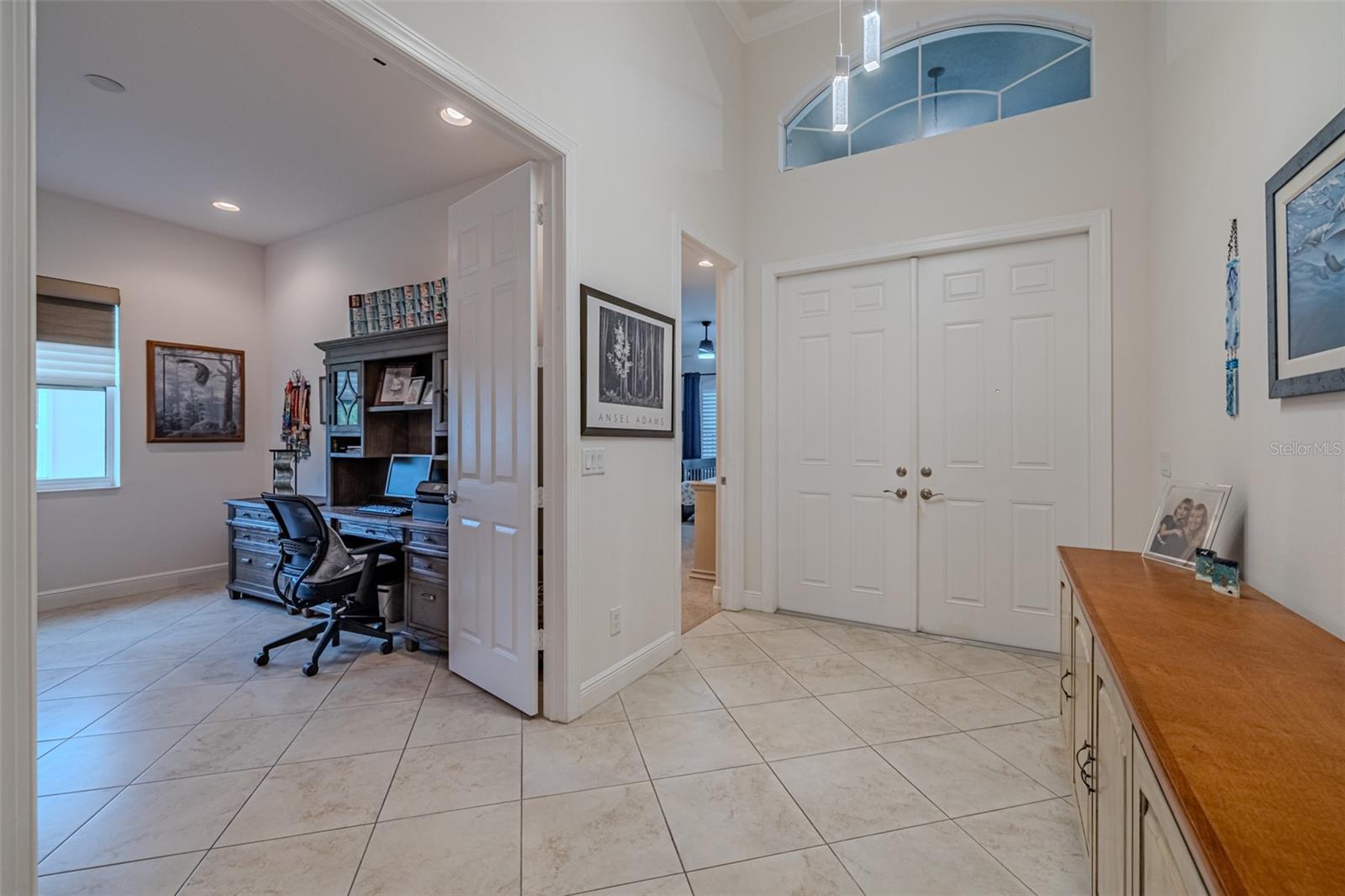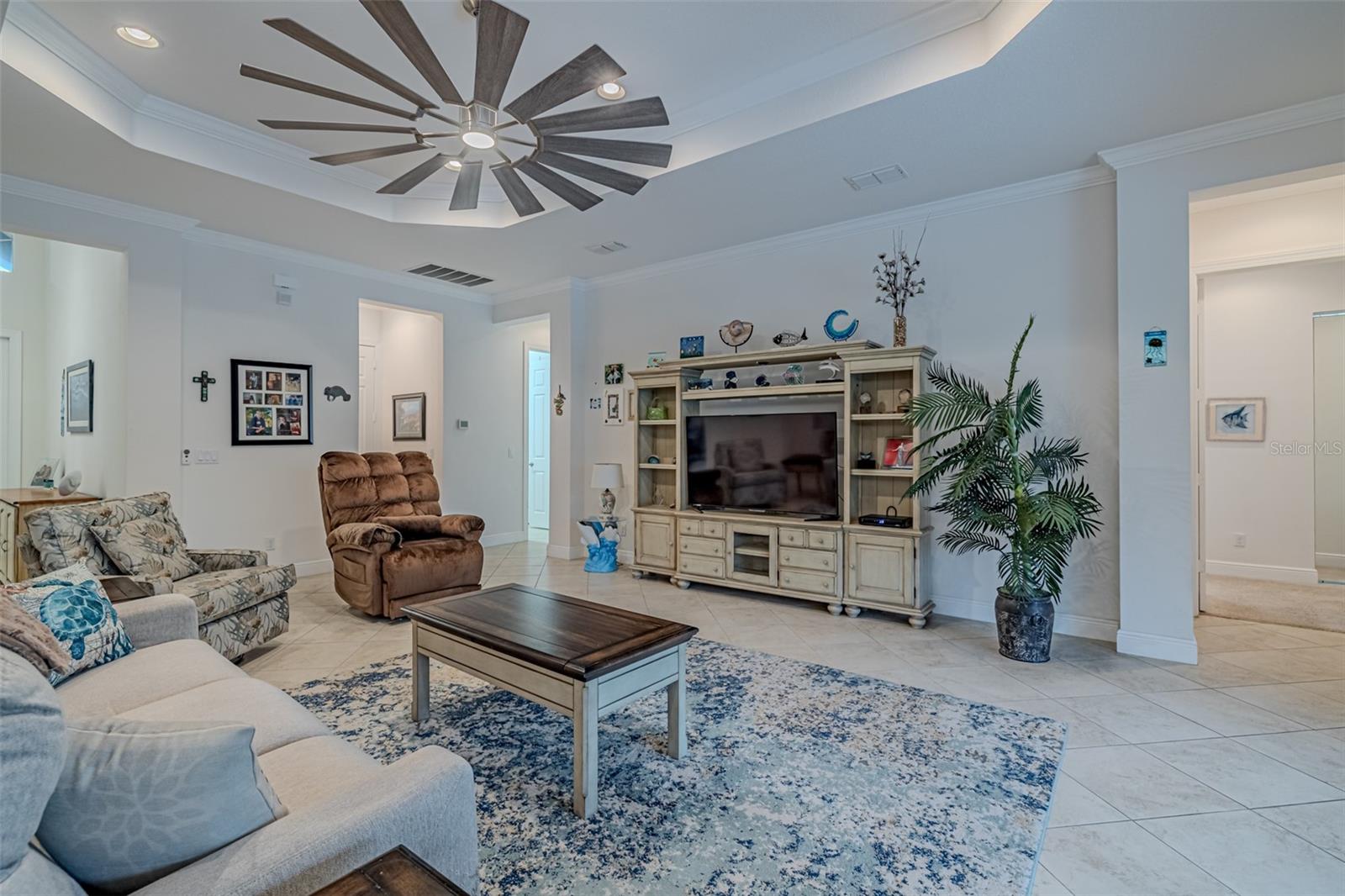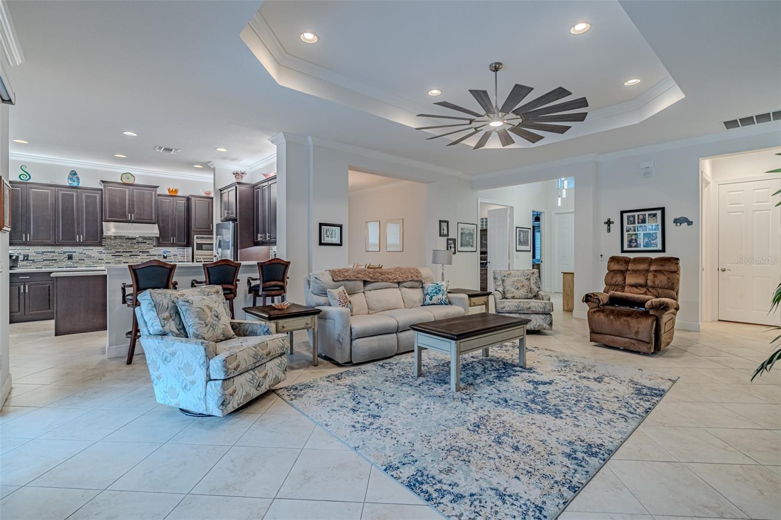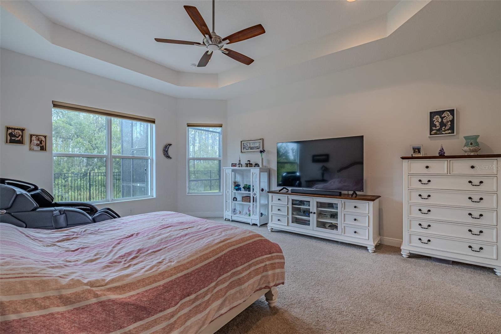 Esta casa de 2.720SF GL construiu Vizcaya tem três quartos com banheiros privativos, um escritório e uma planta baixa com uma grande sala, cozinha, jantar, sala de jantar e um salão de pó. Enter through the screened-in portico with its 48” door that affords wide access and leads to the bold French double front doors. Inside the expansive foyer, take note of the towering 14’-15’ tray ceiling with its dazzling 7 pendant chandelier that will fashionably welcome family and friends. 18”x18” porcelain tile on the diagonal finished with large 5 1/4” baseboards grace the floors, and the walls meet the Tetos com moldagem personalizada da coroa. A direita da porta da frente está o terceiro quarto que possui um closet, grandes janelas com persianas de plantações sob medida, um ventilador de teto e um banheiro seguro destacado por um chuveiro com paredes de mármore. O quarto 2 tem um lindo banheiro privativo e um closet. O espaçoso quarto primário é de 19'x16 'com um teto de bandeja de 10'-11' e possui uma janela de sacada de três paredes voltada para uma reserva natural da árvore de cipreste. Dois armários de tamanho generoso com portas espelhadas de dobra flanqueiam o corredor que leva ao privilégio. Esse privilégio apresenta duas vaidades separadas com balcões de quartzo, uma banheira de jardim, um chuveiro de água, um armário de água para o vaso sanitário e um armário de linho. Uma grande sala grande ancora a planta baixa aberta da Vizcaya. A grand 10’-11’ tray ceiling with an extraordinary 14 blade 72” Monte Carlo ceiling fan and six recessed lights crowns the expansive 26’x20’ great room that also has a three-panel 12’ wide sliding glass door leading to the backyard oasis. The gourmet Chef’s kitchen features a breakfast bar, a center island, a double-basin sink with a reverse-osmosis faucet, espresso colored solid wood Cabines com gavetas suaves, armários inferiores com prateleiras deslizantes e gavetas de panela cobertas com balcões de quartzo que, por sua vez, são acentuados por um deslumbrante backsplash de vidro em mosaico, aparelhos de aço inoxidável, um alojamento de bloqueio de alcance com alcance de alcance de alcance e alojamento em torno de cozinha, a cozinha é a cozinha. Oásis que será o espaço perfeito para desfrutar de refeições diárias ou íntimas. Os visitantes. Armários montados, um ventilador montado na parede e uma saída adicional em um circuito dedicado de 20 amp.