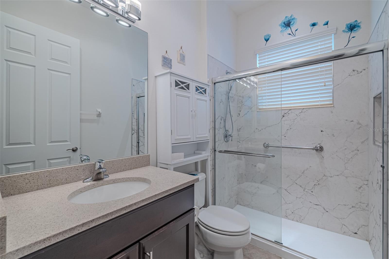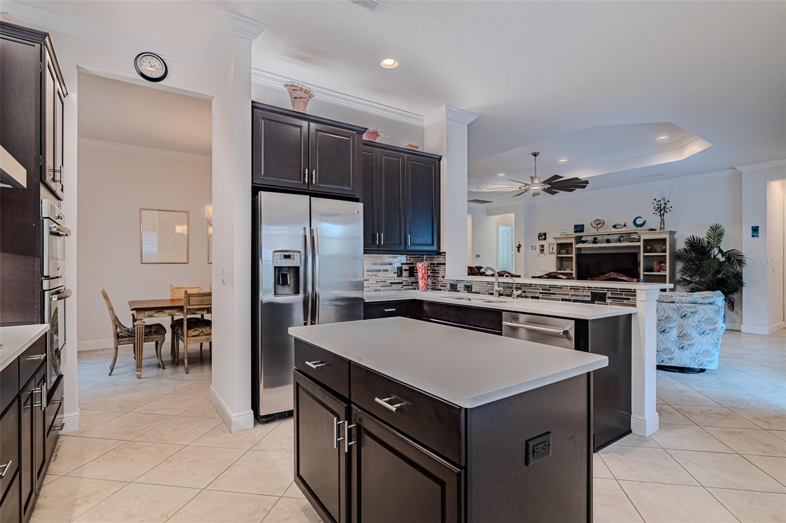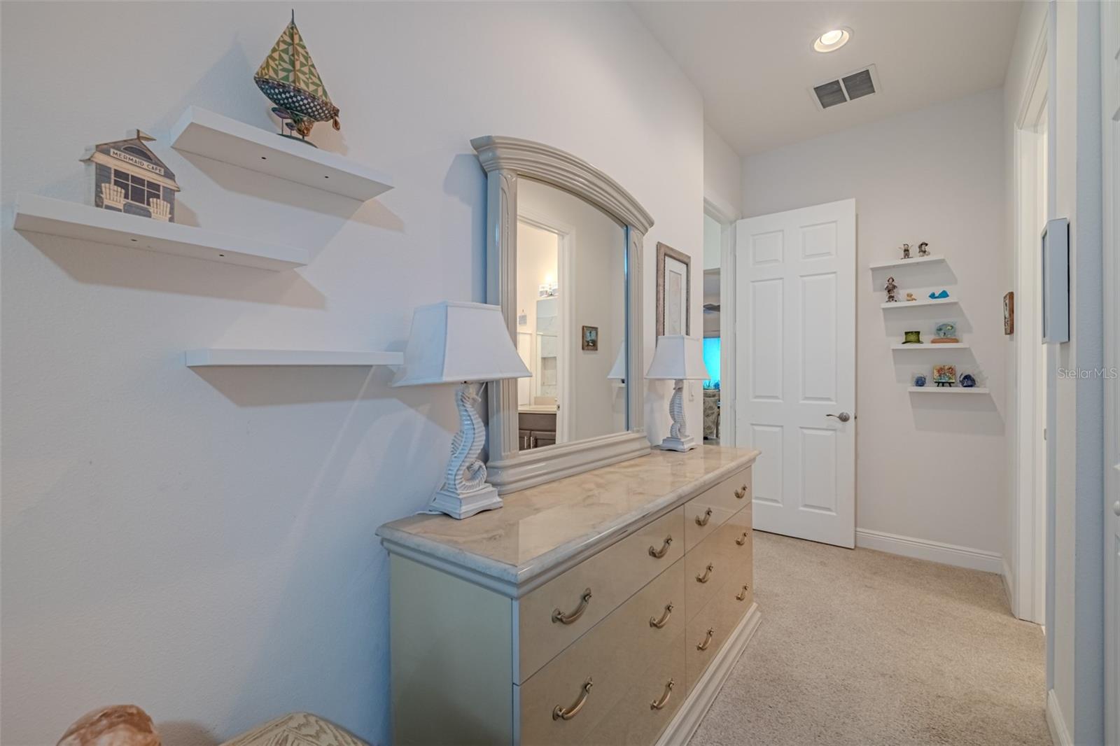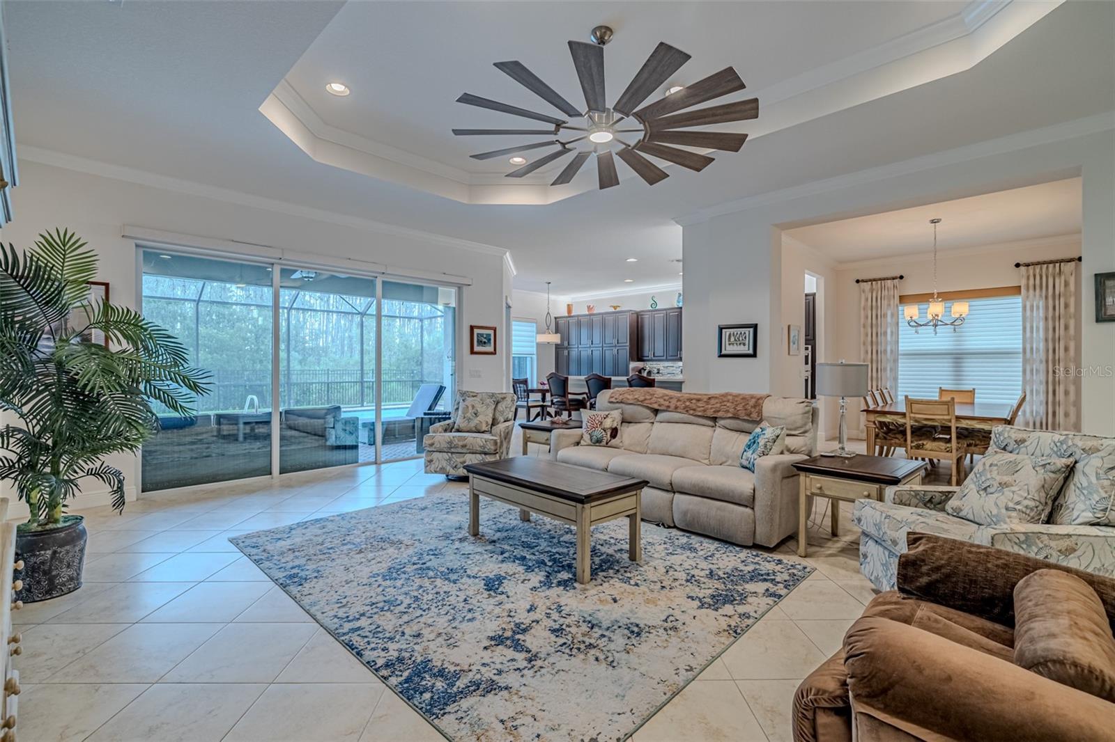 Esta casa de 2.720SF GL construiu Vizcaya tem três quartos com banheiros privativos, um escritório e uma planta baixa com uma grande sala, cozinha, jantar, sala de jantar e um salão de pó. Enter through the screened-in portico with its 48” door that affords wide access and leads to the bold French double front doors. Inside the expansive foyer, take note of the towering 14’-15’ tray ceiling with its dazzling 7 pendant chandelier that will fashionably welcome family and friends. 18”x18” porcelain tile on the diagonal finished with large 5 1/4” baseboards grace the floors, and the walls meet the Tetos com moldagem personalizada da coroa. A direita da porta da frente está o terceiro quarto que possui um closet, grandes janelas com persianas de plantações sob medida, um ventilador de teto e um banheiro seguro destacado por um chuveiro com paredes de mármore. O quarto 2 tem um lindo banheiro privativo e um closet. O espaçoso quarto primário é de 19'x16 'com um teto de bandeja de 10'-11' e possui uma janela de sacada de três paredes voltada para uma reserva natural da árvore de cipreste. Dois armários de tamanho generoso com portas espelhadas de dobra flanqueiam o corredor que leva ao privilégio. Esse privilégio apresenta duas vaidades separadas com balcões de quartzo, uma banheira de jardim, um chuveiro de água, um armário de água para o vaso sanitário e um armário de linho. Uma grande sala grande ancora a planta baixa aberta da Vizcaya. A grand 10’-11’ tray ceiling with an extraordinary 14 blade 72” Monte Carlo ceiling fan and six recessed lights crowns the expansive 26’x20’ great room that also has a three-panel 12’ wide sliding glass door leading to the backyard oasis. The gourmet Chef’s kitchen features a breakfast bar, a center island, a double-basin sink with a reverse-osmosis faucet, espresso colored solid wood Cabines com gavetas suaves, armários inferiores com prateleiras deslizantes e gavetas de panela cobertas com balcões de quartzo que, por sua vez, são acentuados por um deslumbrante backsplash de vidro em mosaico, aparelhos de aço inoxidável, um alojamento de bloqueio de alcance com alcance de alcance de alcance e alojamento em torno de cozinha, a cozinha é a cozinha. Oásis que será o espaço perfeito para desfrutar de refeições diárias ou íntimas. Os visitantes. Armários montados, um ventilador montado na parede e uma saída adicional em um circuito dedicado de 20 amp.