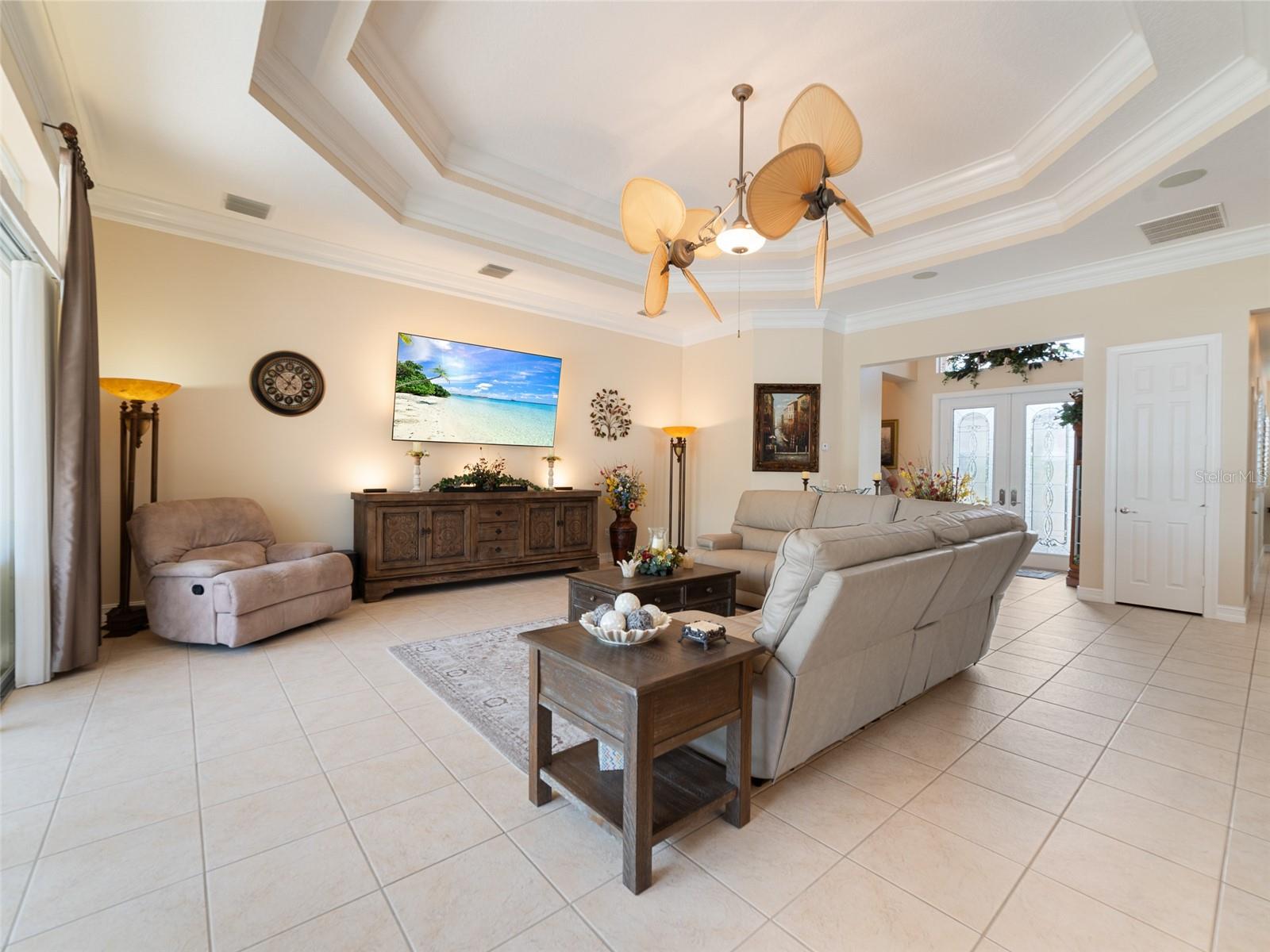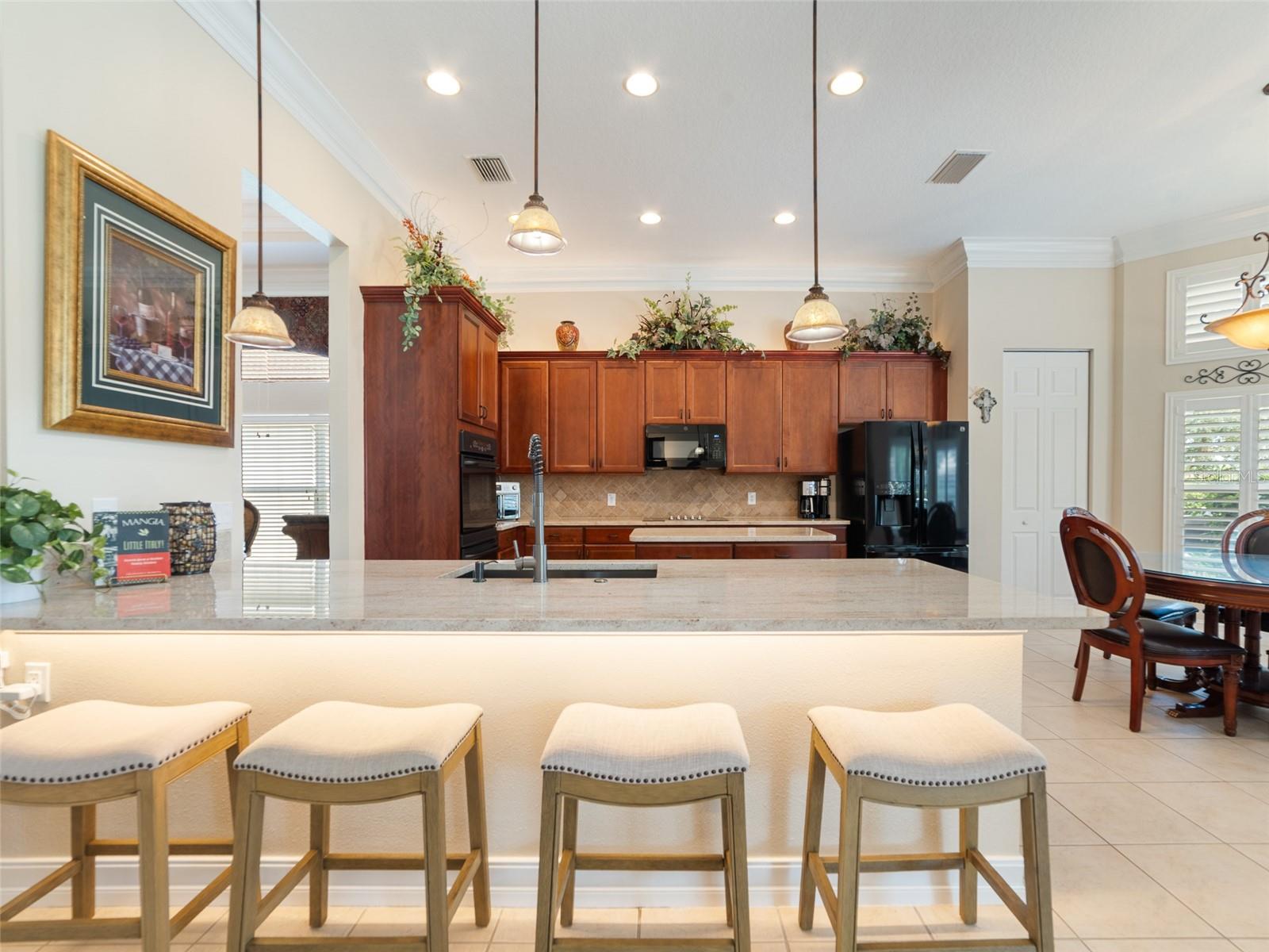 Luxo com o melhor! Este modelo Tivoli 2770 sq.ft. 2 quartos, 2,5 banheiros, canhões e garagem de 2 carros é única. Um dos melhores sites domésticos em Valência Lakes, a principal comunidade de Tampa Bay 55 Plus. Passe algum tempo em seu próprio oásis de quintal, enquanto relaxa na grande lanchonete estendida com pavimentadoras de tijolos, cozinha ao ar livre, fonte de água de pedra, TV e alto -falantes. Esta casa é um quarto dividido/plano de piso aberto com "tetos altos" por toda parte, com janelas de popa, o que permite uma luz mais natural por toda parte. Existem muitos recursos de designer nesta casa extraordinária. Dentro, você notará os pisos de cerâmica em todas as principais áreas de estar e banheiros. A sala de reuniões tem um teto de bandeja dupla, com moldagem por coroa, alto -falantes de som surround. Luminária de designers e ventiladores com preenchedores de plantações fabulosas nas janelas! A cozinha gourmet é o sonho de um chef, com armários de bordo de 42 "com iluminação sub/over de gabinetes, moldagem por coroa, backsplash de marmore de pedra, porta de marmore dupla, fornos de parede dupla, pia de cozinha de altura de balcão, vasos e gavetas de maio. Celling de bandeja com moldagem de coroa, janela de sacada grande, moldagem de coroa em torno da sala inteira, piso de madeira e é grande o suficiente para móveis de tamanho king. Suite, com um chuveiro grande, os armários brancos com o balcão de granito e a pia moderna. Andção da entrada, puxa as escadas do sótão, prateleiras de armazenamento na garagem, interior pintado de garagem, piso de epóxi, estrutura de tela recém -pintada e novos parafusos e telas, sistema de amaciador de água e muito mais. Comunidade fechada. De férias todos os dias nesta luxuosa casa em Valência lagos!