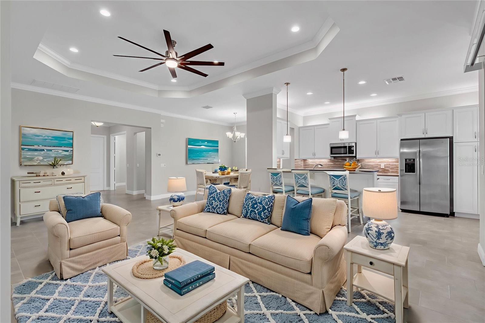 Uma ou mais fotos foram praticamente encenadas. Bem-vindo ao luxo que vive o seu melhor neste requintado modelo de Palazzo pronto para movimentos da GL Homes, aninhado em Valência Lakes, a principal comunidade de 55 resorts de Tampa Bay. Esta casa imaculada oferece uma espetacular cenário à beira -mar, aproveitando o melhor do lanai com tela prolongada - um espaço tranquilo perfeito para café da manhã ou pôr do sol à noite. Desde o momento em que você chega, a garagem da pavimentadora de tijolos e a passarela, o telhado de ladrilhos e o paisagismo exuberante com iluminação criam apelo impressionante e uma casa calorosa e de boas -vindas. Passe pelas portas de entrada de 8 pés de 8 pés em um grande hall de entrada com tetos de 11 pés e moldagem de coroa, definindo o tom para o estilo refinado por toda parte. Com 3 quartos espaçosos, um grande covil que pode servir como quarto quarto, 2,5 banheiros e uma garagem de 2,5 carros, esta casa fornece luxo e funcionalidade. A planta do conceito aberto inclui uma grande sala com um teto em alerta e um toque de porcelana de 12x24 de 12x24 colocado em um padrão de cascata, conectando -se perfeitamente à cozinha gourmet, área de jantar casual e espaço formal para refeições. The chef's kitchen is a true showstopper, featuring quartz countertops, undermount stainless steel sink, 42” soft-close white maple cabinetry, designer glass backsplash, under and over-cabinet lighting, and premium stainless steel appliances. There’s also a triple cabinet pantry with roll-out shelves, pull-out trash system, and cabinet paneling package for a clean, custom look. For more formal gatherings, the dedicated dining O quarto é convenientemente localizado na cozinha. da casa para a privacidade ideal. e lavadora e secadora atualizada com acesso direto à garagem de tamanho grande. Comunidade vibrante com um clube de 40.000 pés quadrados, Centro de Fitness de 24 horas, piscinas ao estilo de resort, bistrô no local, pickleball e quadras de tênis, bola de bocha, trilhas para caminhada, clubes, entretenimento ao vivo, o Sonst Sonsts, aulas mais altas, e a maior parte do Sostores, e a Sosamentos de Caso, e a Sostagem Maior. Comece a viver sua melhor vida nos lagos de Valência.
