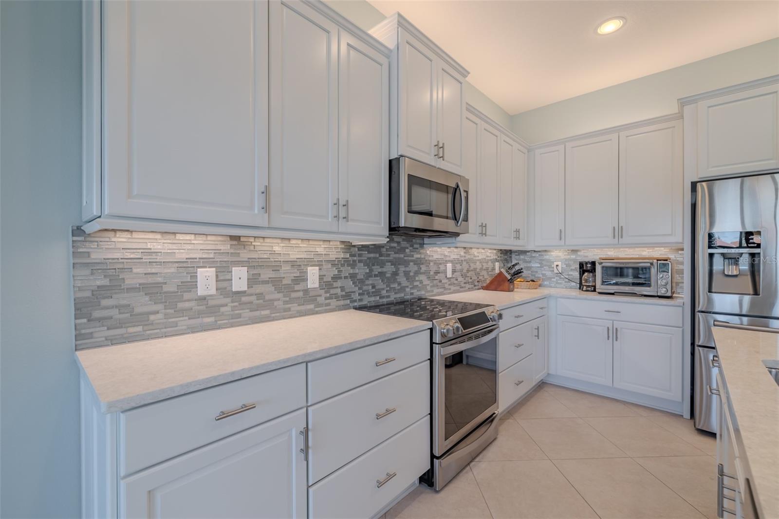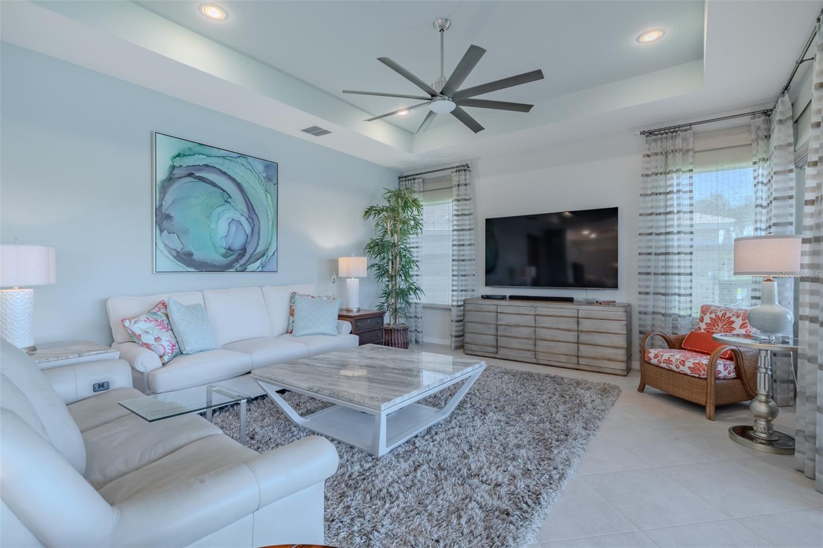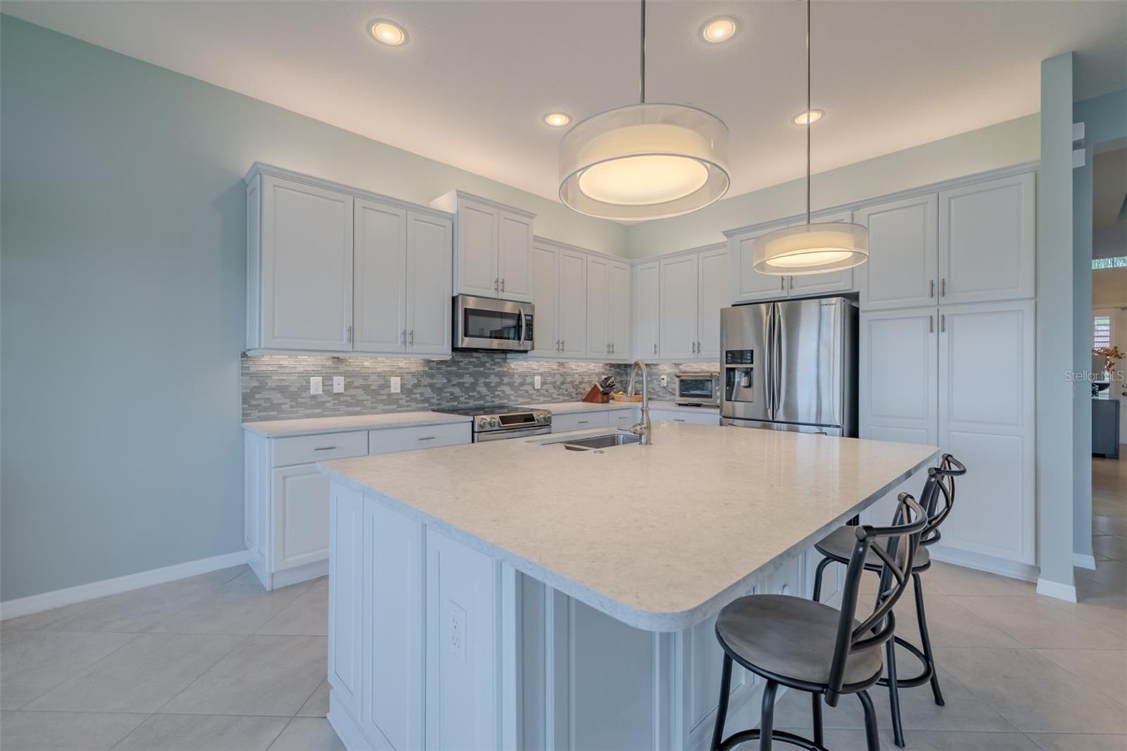 SUA OPORTUNIDADE DE MORAR EM LAGOS DE VALENÇA ACABA DE MELHOR - ESTA CASA TEM PREÇO DE VENDA! Este modelo ARUBA é apenas um dos nove em todos os Lagos de Valência, a principal comunidade de adultos ativos com mais de 55 anos de Tampa Bay. Este ARUBA tem 2.362 SF sob ar e fica em um terreno excepcional com uma linda vista para o mar do noroeste, proporcionando vistas excepcionais do pôr do sol. Janelas de vidro de impacto resistentes a furacões por toda parte, incluindo as portas de vidro deslizantes de canto zero de 24' de largura e 8' de altura, aquecem este ARUBA na luz solar natural, melhoram a eficiência de HVAC e ruído e fornecem proteção sem preocupações durante todo o ano. Uma calçada e passarela pavimentada em toda a largura, complementada por um paisagismo bem cuidado da Flórida enfeita a entrada. Um imponente teto de bandeja de 13'-14' coroa um foyer amplo e acolhedor. Imediatamente à esquerda do Foyer está uma maravilhosa lavanderia repleta de armários superiores e inferiores, uma pia de gabinete e uma lavadora e secadora GE de carregamento frontal. O quarto 2 fica na frente da casa e possui uma janela tipo bay window com venezianas com vista para os jardins da frente, um ventilador de teto iluminado e um generoso closet. Diretamente acessível a partir do corredor há um escritório amplo e luminoso com luzes embutidas e um ventilador de teto iluminado. Como você usará esse espaço? O quarto principal tem 14'x18' com teto de bandeja de 10'-11' com ventilador de teto iluminado e dois grandes closets, e seu diferencial é que tem dois banheiros separados: um para você e outro para mim… “Eu te amo, mas fique fora do meu banheiro.” Os azulejos do chão ao teto em todos os chuveiros, torneiras MOEN com chuveiros duplos e iluminação sob medida e espelhos de design no banheiro maior tornam o quarto principal e seus dois banheiros privativos um retiro encantador. Na parte traseira da casa há uma espetacular planta aberta com uma parede de janelas que captura uma incrível vista para o mar. A cozinha gourmet possui armários de madeira maciça de bordo, armários superiores com iluminação superior e inferior do armário, gavetas com fechamento suave, armários inferiores com controles deslizantes, gavetas para panelas, uma despensa com prateleiras deslizantes, extensos balcões de quartzo encimados por um elegante backsplash de vidro óptico, eletrodomésticos SAMSUNG SS incluindo uma faixa de indução com forno de convecção e uma grande ilha central com revestimento de gabinete que acomodará confortavelmente 4 pessoas. Com uma vista imponente da planta aberta, esta Cozinha Gourmet é uma delícia para o Chef. A Sala de Jantar acomoda confortavelmente 8 pessoas e tem vistas deslumbrantes sobre o mar. A Grande Sala tem 27'x17' com teto de bandeja de 10' a 11'; uma parede tem 21 pés de vidro com vista para a água. Uma serenidade incrível se tornará sua norma. ANN LUBNER DESIGNS projetou habilmente os tratamentos das janelas e o interior com tratamentos Hunter-Douglass e cores de parede encantadoras. Ladrilhos cerâmicos de 20'x20' na diagonal percorrem as áreas comuns e úmidas e carpetes adornam os quartos. A garagem de 20'x20' possui piso de epóxi luxuoso e armazenamento superior. Esta ARUBA é uma pedra preciosa rara que certamente deixará você confortável e orgulhoso. Valencia Lakes é uma comunidade altamente desejada com mais de 55 anos que oferece comodidades excepcionais e fica perto do centro de Tampa, Sarasota, TPA e SRQ, excelentes lojas e serviços médicos excepcionais e algumas das melhores praias da Flórida. Aproveite este dia e comece a viver sua vida idílica hoje. A TAXA HOA inclui: manutenção de gramado, jardim e árvores, incluindo uso de água paisagística, televisão a cabo SPECTRUM com canais premium, internet de alta velocidade, segurança monitorada ADT e uso de todas as comodidades.