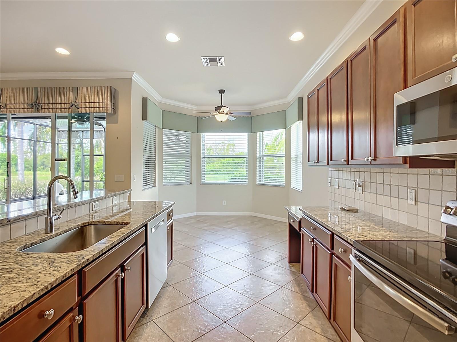 Bem-vindo a esta incrível casa unifamiliar modelo Roma de 3 quartos e 3 banheiros, com muitas atualizações e vistas encantadoras e serenas da água e da preservação da natureza! A partir daqui, há apenas uma curta caminhada até todas as comodidades de classe mundial dos Lagos de Valência, voltadas especificamente para um estilo de vida adulto ativo. A casa foi construída em um terreno enorme cercado por um paisagismo tropical colorido e bordas de pedra branca contribuindo para uma impressão inesquecível de beleza e tranquilidade. A entrada frontal com gabinete blindado possui uma porta frontal de 2,5 metros que leva ao interior de um saguão espaçoso de 4,2 metros de altura que flui para uma planta aberta - ideal para entretenimento e vida diária. As telhas cerâmicas são colocadas diagonalmente nas áreas principais. Sancas elegantes e tetos em caixotões no hall de entrada e no quarto principal acrescentam sofisticação adicional. A cozinha gourmet projetada para entretenimento possui armários de bordo de alta qualidade com gavetas com fechamento suave e uma despensa personalizada com prateleiras deslizantes. Os eletrodomésticos de aço inoxidável atualizados incluem fogão, geladeira com porta tipo francesa, lava-louças e micro-ondas. As bancadas de granito com backsplash neutro cuidadosamente selecionado apresentam uma ilha central elevada que se expande para se tornar uma área de bar com espaço generoso para sentar. Um confortável café da manhã/jantar com uma janela saliente voltada para a vista deslumbrante da água e da preservação está convenientemente localizado ao lado da cozinha. Uma sala de jantar formal localizada fora da sala de estar pode acomodar confortavelmente grandes reuniões. O espaçoso quarto principal oferece dois closets de tamanho generoso com prateleiras e gavetas personalizadas. O banheiro privativo possui duas pias separadas com bancada em granito, box amplo com listelo decorativo e banco de canto embutido para relaxamento. A porta de vidro deslizante de 2,5 metros da Grande Sala leva a uma bela e ampla varanda estendida. Atualizações adicionais incluem sistema de amaciante de água, aspirador de garagem para montagem em parede úmida / seca, venezianas sanfonadas e calhas ao redor de toda a estrutura da casa. Valencia Lakes é uma comunidade de carrinhos de golfe para adultos ativos de 55 ou mais com área de recreação ao ar livre à beira-mar de 40 acres com piscina aquecida em estilo resort, piscina de volta e resistência, clube de 40.000 pés quadrados, bistrô de luxo chegará em breve, quadras de tênis har-tru, academia, meia quadra de basquete, quadras de pickleball e bocha, parque para cães, parque de beisebol, horta comunitária, centenas de clubes e atividades, área de armazenamento para trailers/barcos. Mais de 100 acres reservados como reservas naturais; desfrute da tranquilidade e da solidão de vistas tranquilas, pássaros e vida selvagem à beira da água. Grande senso de comunidade com ótimos vizinhos amigáveis. Por favor, ligue para uma exibição privada e experimente você mesmo esta maravilhosa comunidade. Tampa, St. Pete e Sarasota a 30-45 minutos de distância. Perto do aeroporto, instalações médicas, lojas e golfe.