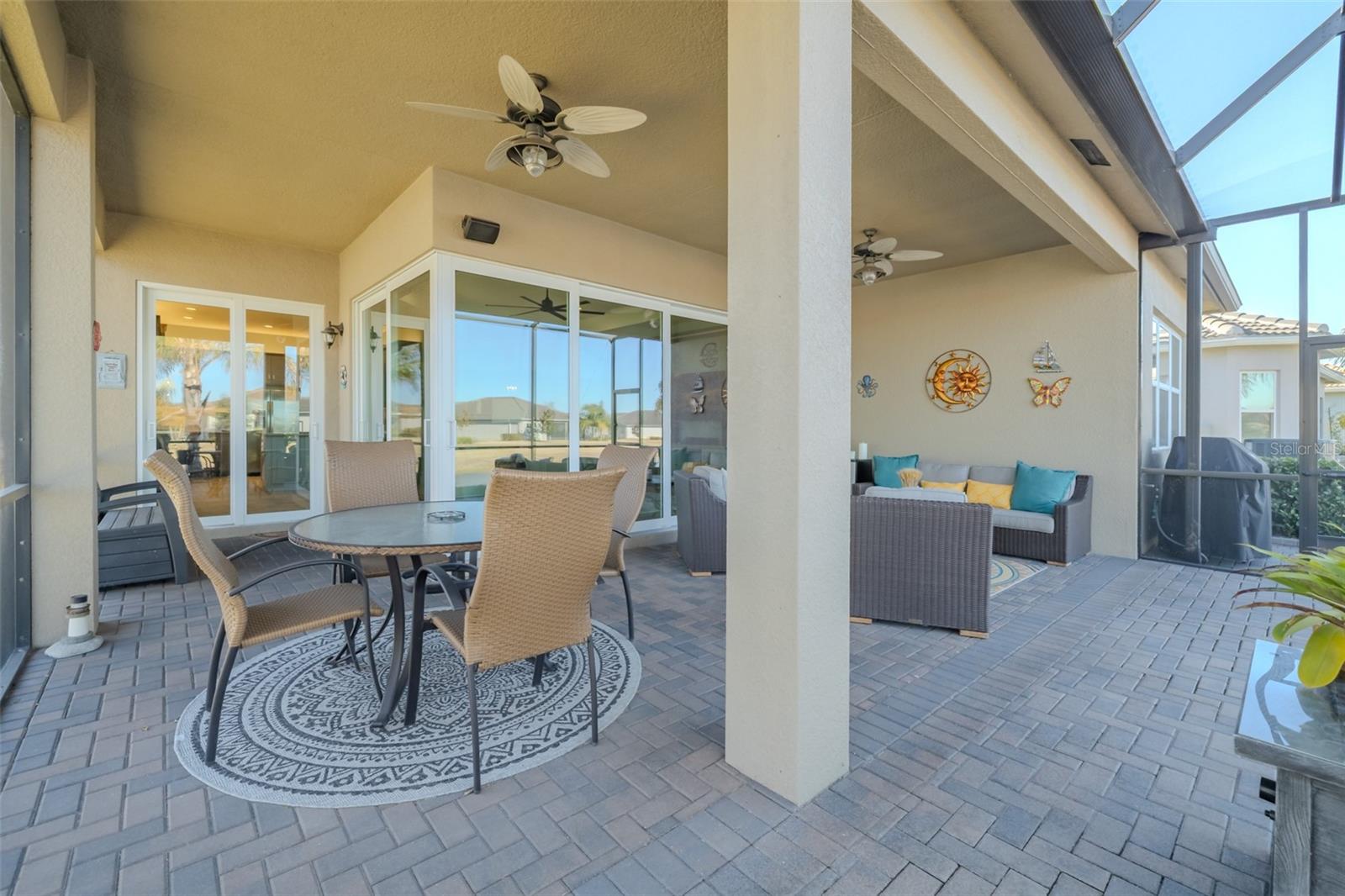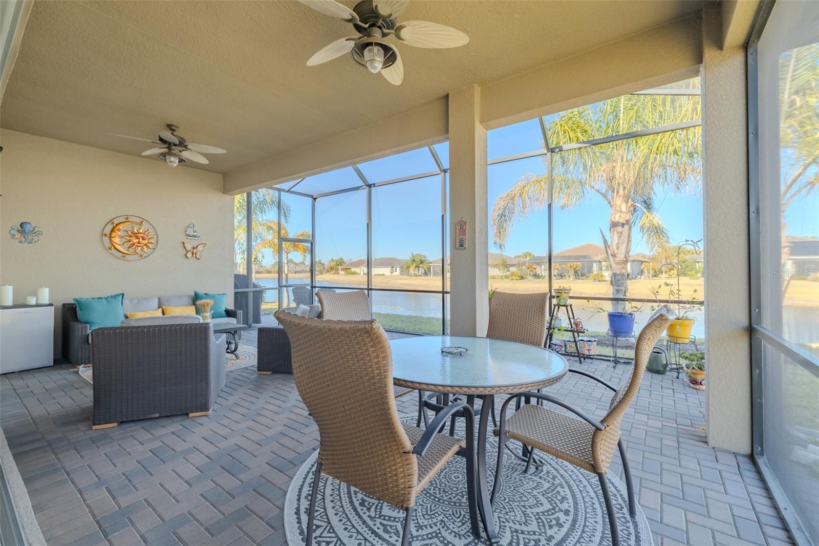 Localizado em Valencia del Sol, este BARBADOS com uma bela vista para o mar é requintado. Possui 2.268SF com 3 quartos, 2,5 banheiros, uma grande sala, sala de jantar, cozinha, sala de jantar e garagem tandem para 3 carros. Um paisagismo imaculado enfeita o exterior, e a largura total da garagem é longa o suficiente para acomodar uma grande caminhonete. O conforto ambiental é garantido por um TRANE HVAC de 3,5 toneladas, um painel principal de 200 AMP com EATON Complete Home Surge Protection, serviço de gás natural, um aquecedor de água AO Smith de 50 galões com tanque de expansão e bomba de recirculação, vidro resistente a impactos por toda parte e um gerador DuroMax XP13000HXT que pode alimentar toda a casa. Você com certeza estará seguro em casa durante a temporada de tempestades. As calhas da frente da casa protegem você ao se aproximar do pórtico que leva à porta frontal de ¾ vidro. Ao entrar, o foyer de 20 pés de comprimento com um imponente teto de bandeja de 13 a 14 pés com 2 lustres pendentes oferece uma recepção sutil, porém dramática, à casa. O porcelanato de 20”x20” colocado em um padrão de cascata deslocado percorre as áreas comuns e o Quarto 3. O Quarto Principal e o Quarto 2 são acarpetados. À direita e à frente do Foyer está o Quarto 2, que recebe luz natural do sol através de uma janela saliente de três painéis, e um ventilador de teto de 52" ajuda a mantê-lo fresco. O banheiro completo adjacente de três peças garantirá a privacidade e o conforto do seu hóspede. No meio e à direita do Foyer está o quarto que possui portas francesas duplas, um ventilador de teto de 3 peças e um closet. Atualmente é projetado como um Music Den, como você escolherá utilizar este espaço? À esquerda do Foyer está a lavanderia, um lavabo para hóspedes diurnos e um armário de armazenamento de tamanho generoso de 6'x4 '. A lavanderia tem uma lavadora e secadora GE de carga superior, uma pia e uma mesa embutida. Além do foyer, a sala de jantar acomoda confortavelmente 10 pessoas sob o brilho de um lustre geométrico de estrutura aberta Hinkly ASTRID. dobradiças, uma ilha na altura do balcão, uma abundância de balcões de quartzo emoldurados por um backsplash de azulejos Geoscape, uma despensa com prateleiras deslizantes e eletrodomésticos GE S/S para incluir um fogão a gás deslizante com forno de convecção e um micro-ondas com ventilação externa. É brilhante, espaçoso e maravilhosamente funcional. Portas de vidro deslizantes de canto zero com persianas motorizadas LUTRON emolduram dois lados da Grande Sala e proporcionam uma excelente vista da Lanai e da água além. O quarto principal e o banheiro privativo serão o seu grande oásis noturno. O banheiro privativo tem um box amplo com moldura de vidro, dois separados. vaidades e um W/C para o banheiro Valencia Del Sol é uma impressionante comunidade de adultos ativos com mais de 55 anos com comodidades incríveis. Um Club House de 25.000 SF abriga o incrível Bistro del Sol, Social Hall, Fitness Center e Club Rooms, e as instalações ao ar livre incluem quadras de tênis Har-Tru Clay, quadras de pickleball e uma requintada piscina em estilo resort. e algumas das melhores praias do estado Você mereceu, então comece a aproveitar sua vida idílica aqui hoje mesmo!