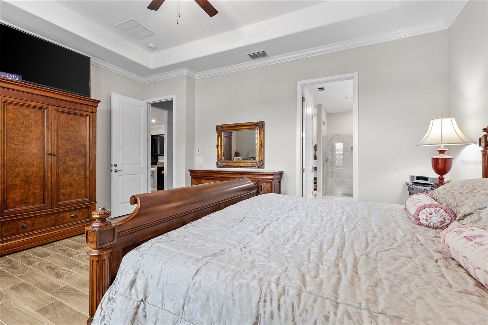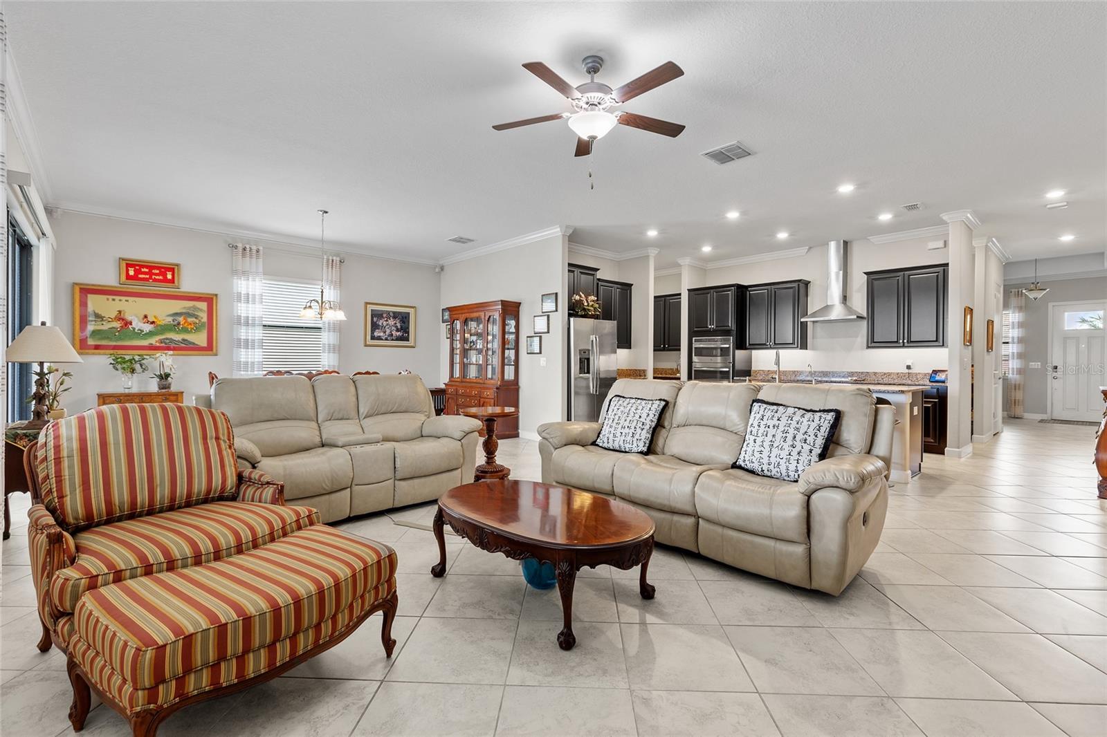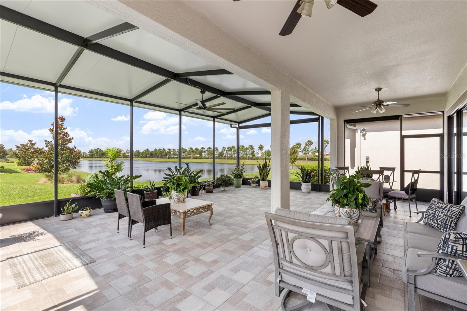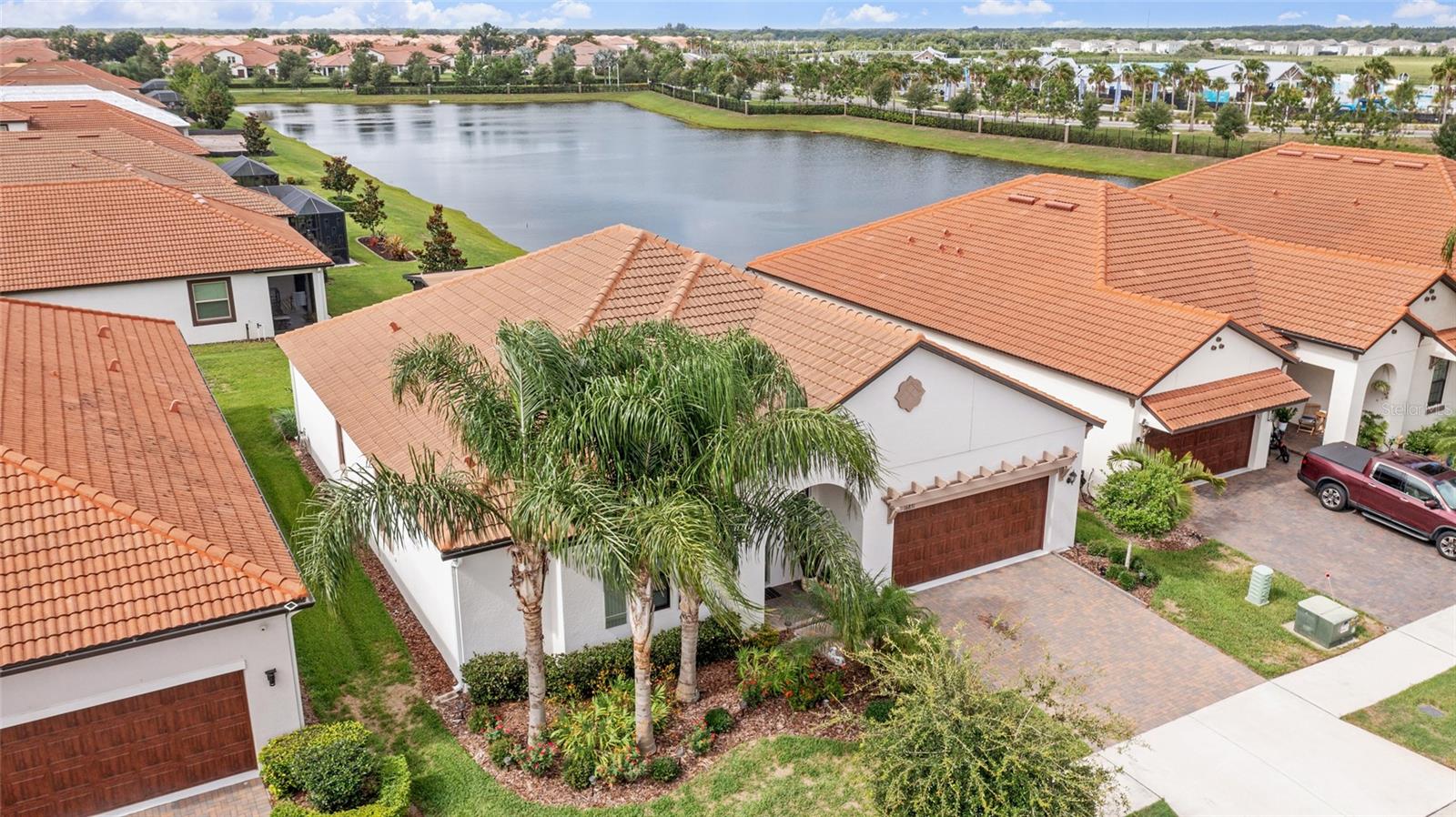 Bem-vindo à comunidade com mais de 55 anos de The Estates at Medley em Southshore Bay! Sua linda casa de 2.216 pés quadrados com dois quartos, dois banheiros e meio e vista para o lago o aguarda. Aproveite a planta aberta e cozinhe em sua cozinha, completa com uma ilha e assentos de bar, além de uma despensa ampla. Fora da cozinha fica a lavanderia interna e uma geladeira extra. Receba a família e os convidados na ampla sala de estar e jantar, com portas de vidro deslizantes que se abrem para a varanda, com vista para o lago e para os fogos de artifício comunitários duas vezes por ano. A varanda original, coberta e protegida foi mais que duplicada em tamanho pelos proprietários e oferece muito espaço para entreter e relaxar. O quarto principal tem closet e banheiro privativo com pias duplas e espelhos, além de box amplo com bancada. O segundo quarto também possui banheiro privativo. Acima da garagem encontra-se uma divisão que pode ser utilizada para arrumos, hobby, sala de jogos, etc. As comodidades de Southshore Bay incluem uma piscina aquecida; quadras de pickleball e bocha; um bar tiki; parque para cães; e um clubhouse com academia e um restaurante com bar completo que serve almoço e jantar. Caminhe ou dirija seu carrinho de golfe até a lagoa de mais de 5 acres e sua piscina, com bar aquático; pista de obstáculos aquáticos; paddleboarding; caiaque; uma praia artificial para os netos brincarem; e que realiza inúmeros eventos sociais, como noites de curiosidades, festas de eventos esportivos, karaokê, música ao vivo e com DJ, noites de cinema e muito mais. Southshore Bay também oferece passeios comunitários e celebrações de feriados.