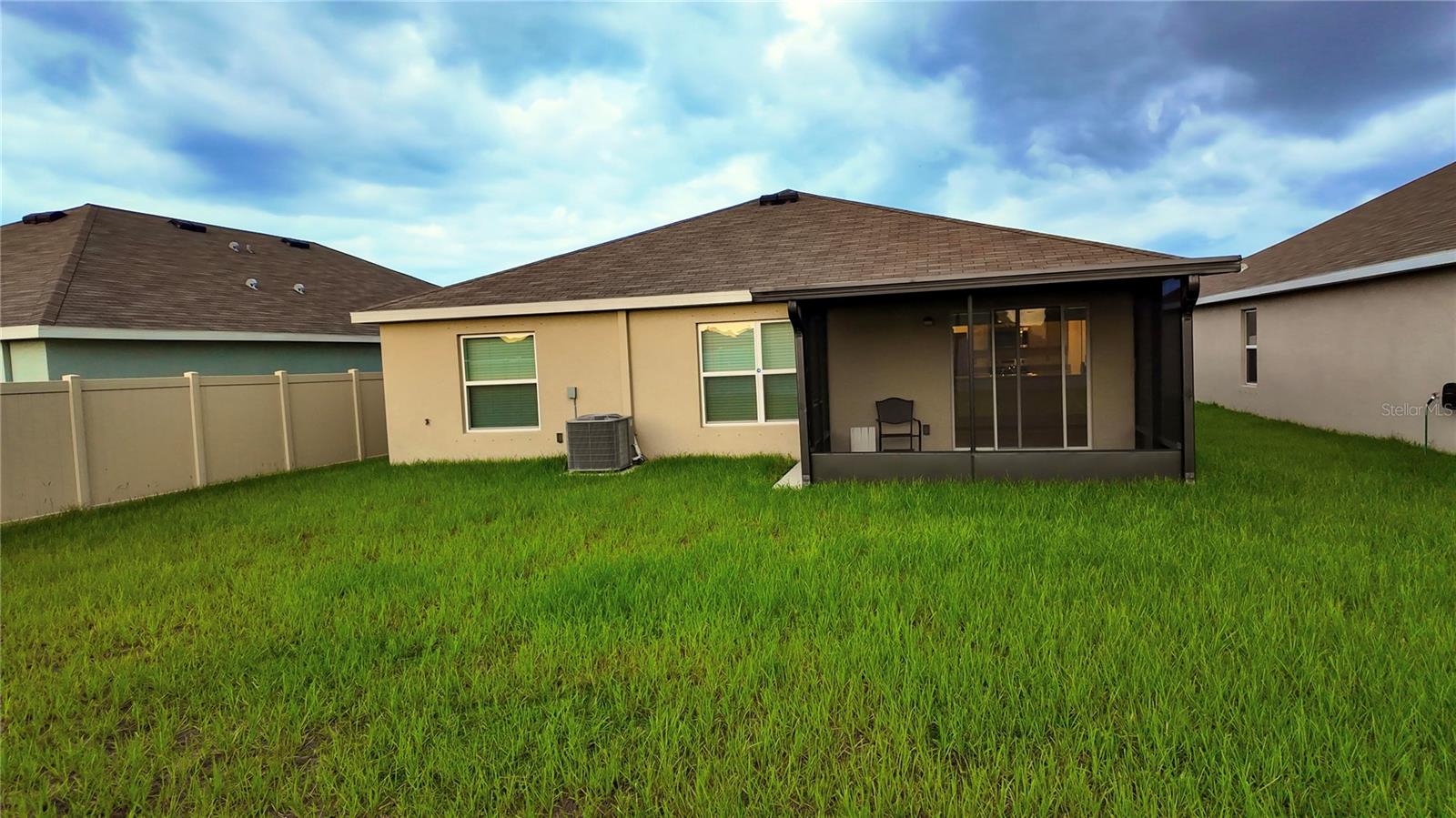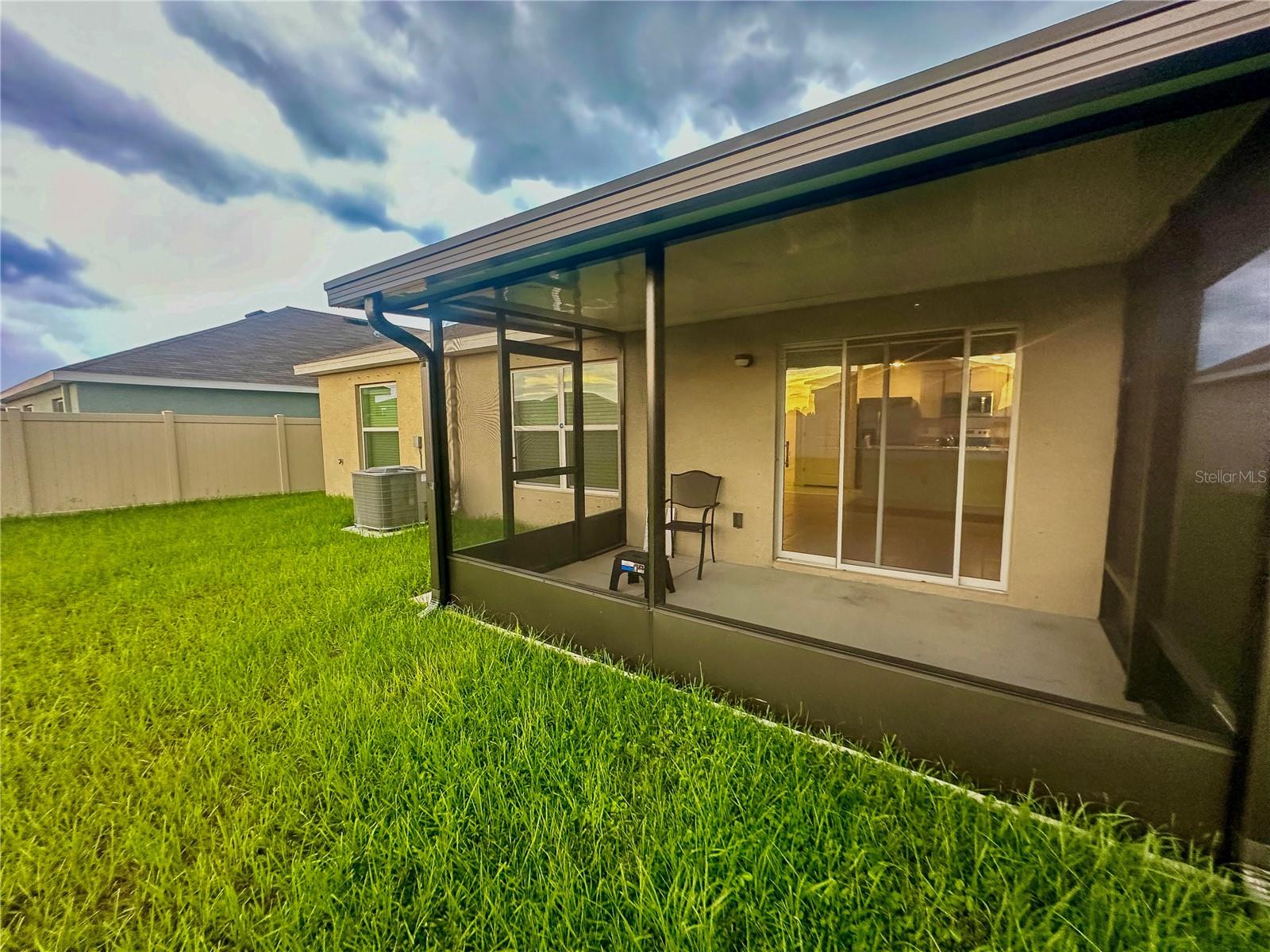 Persianas contra furacões, iluminação, calçada, portas deslizantes