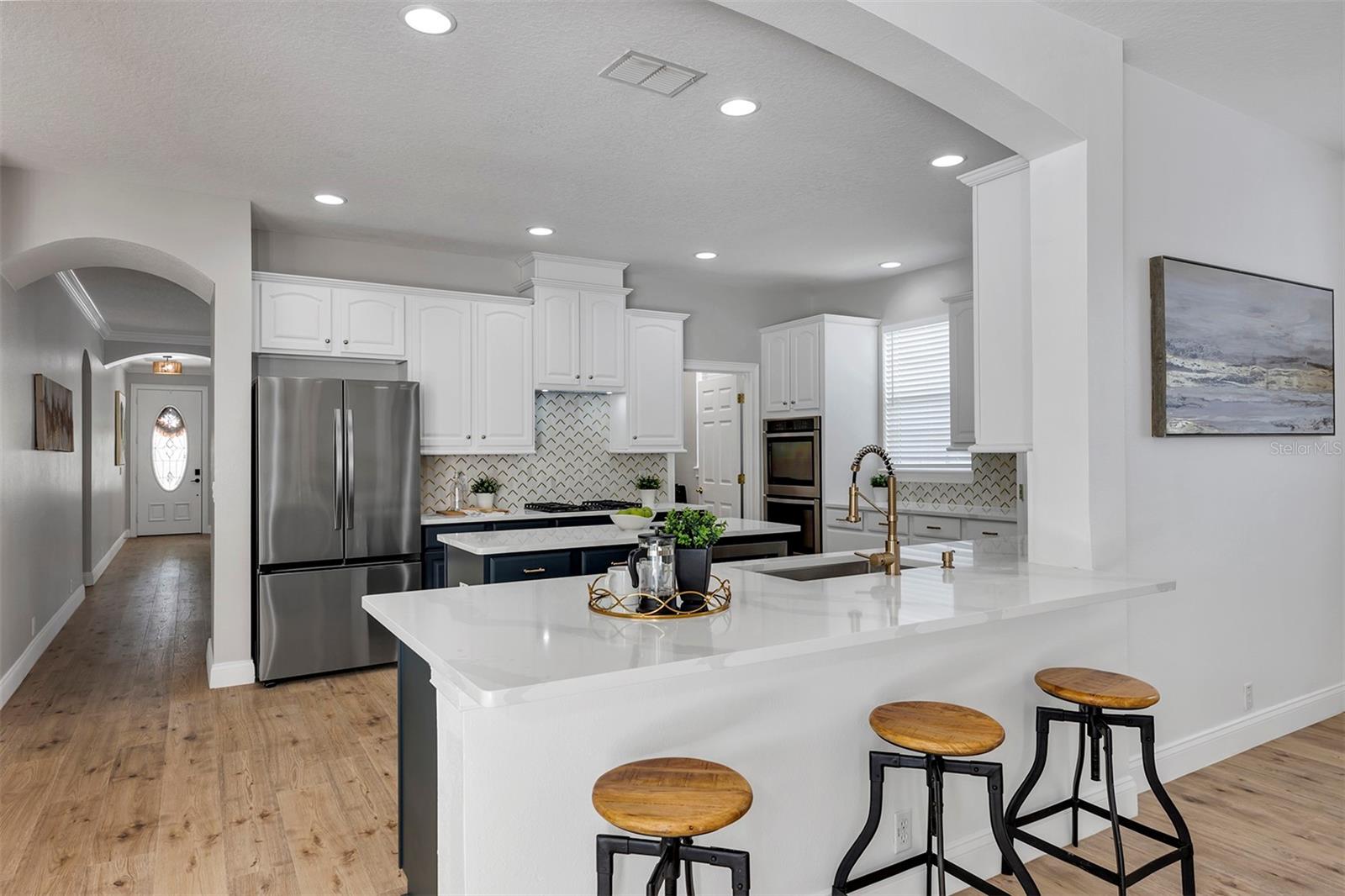 Preço reduzido! Bem-vindo a esta bela casa de 2 andares, 5 quartos e 3,5 banheiros com suíte de sogros no condomínio fechado de Keene's Pointe, com um campo de golfe exclusivo de design de Jack Nicklaus!! Camden é uma casa de conceito aberto situada em um espaçoso terreno de esquina, em frente a um dos muitos parques/áreas de lazer de Keene's Pointe. A suíte do proprietário está localizada no primeiro andar com um novo e luxuoso banheiro privativo com um elegante chuveiro sem moldura, uma luxuosa banheira de imersão independente e um novo armário personalizado. No andar de cima você encontrará um loft espaçoso, 3 quartos adicionais com armários personalizados e um banheiro completo com pias duplas. As características marcantes desta casa elegantemente remodelada incluem uma cozinha gourmet atualizada com fogão a gás, eletrodomésticos de aço inoxidável, novas bancadas de quartzo, novo backsplash, novo piso com rodapés altos, tetos de bandeja, sancas, lareira a lenha e muito mais! Acima da garagem você encontrará um apartamento de 1 quarto/1 banheiro suíte/garagem com lavanderia própria, recanto, sala de estar e cozinha atualizada com bancadas de quartzo e eletrodomésticos de aço inoxidável. Este espaço pode ser utilizado como renda de aluguel, alojamento separado para hóspedes ou espaço para jovens adultos. Aproveite as noites no novo pátio externo com uma nova cozinha externa e um grande quintal cercado para ser apreciado o ano todo! Além de tudo isso, você tem a opção de ingressar no Golden Bear Club: um campo de golfe projetado por Jack Nicklaus e um clube de campo privado com quadras de tênis, academia de ginástica, restaurante do clube e piscina! Localizado na procurada Windermere, Keene's Pointe fica perto da Disney, Universal, lojas, restaurantes, hospitais e das melhores escolas públicas e privadas de Windermere! Agende hoje mesmo uma consulta para ver sua futura casa! O vendedor considerará algumas concessões com um contrato aceito. Menor LP/SqFt em Keene’s Pointe! *O telhado é 2023 e todos os 3 HVAC 2016.