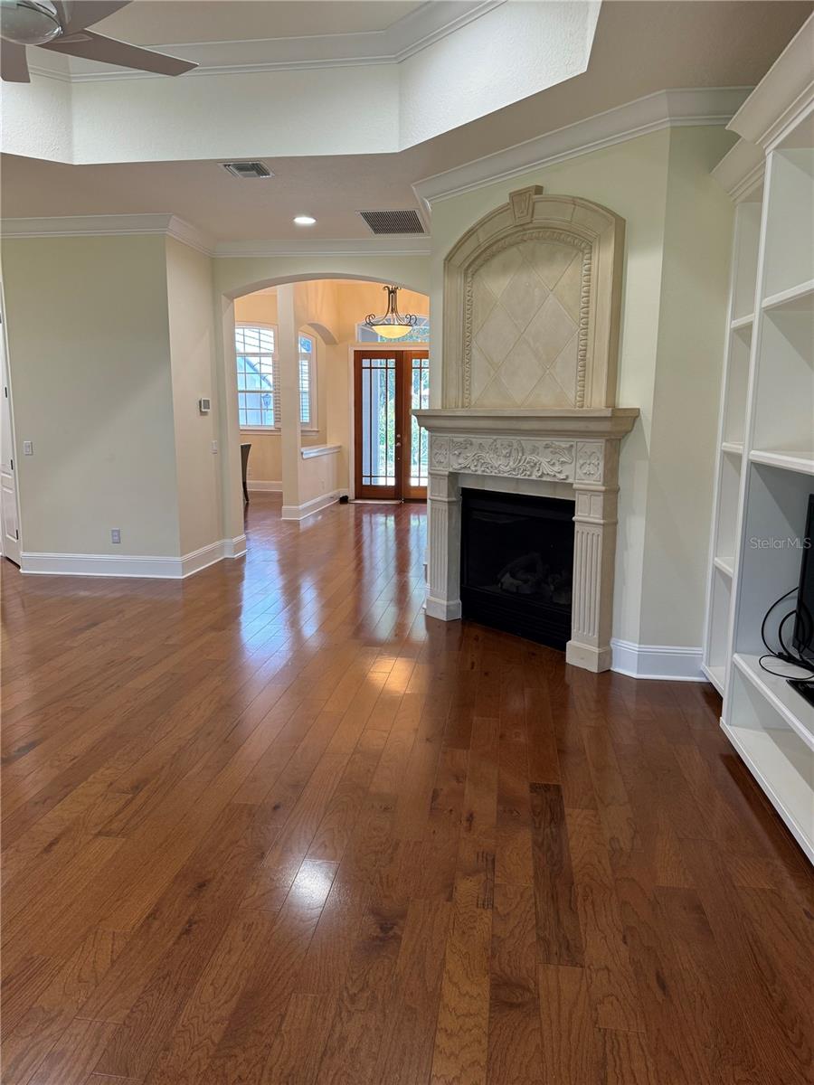 Bem-vindo a esta encantadora vila de golfe 3BR/3Bath localizada na 14ª caixa do campo de golfe Jack Nicklaus Signature em Keene's Pointe. Meticulosamente mantida pelos proprietários originais, esta casa apresenta uma popular planta aberta "Great Room", juntamente com um escritório doméstico, uma sala de jantar formal e uma garagem para 2 carros com baía adicional para carrinhos de golfe. Aproveite o estilo de vida do golfe nesta desejável casa térrea projetada para facilitar a sua vida na Flórida! Ao passar pelas portas de entrada frontais de vidro duplo, seus olhos são atraídos para os belos pisos de madeira de carvalho enquanto você entra na surpreendentemente espaçosa rotunda da Grande Sala, com impressionante teto de catedral e vastas vistas verdes do espaçoso quintal e do campo de golfe além. Tornada ainda mais aconchegante com a linda lareira de pedra fundida que ancora este coração da casa, ela se conecta facilmente à Cozinha com uma grande área de reunião ideal para entretenimento. Grande espaço de armazenamento é oferecido nesta cozinha bem equipada com eletrodomésticos de aço inoxidável e uma enorme despensa. A enorme suíte principal e a área de banheiro ocupam o lado norte da casa com as outras suítes de dois quartos e o escritório no lado sul - o conceito ideal de quarto dividido feito na perfeição! Esta vila de golfe personalizada construída pela Osprey Custom Homes está situada em um lote de 0,41 acres, o que é um achado raro no campo de golfe.