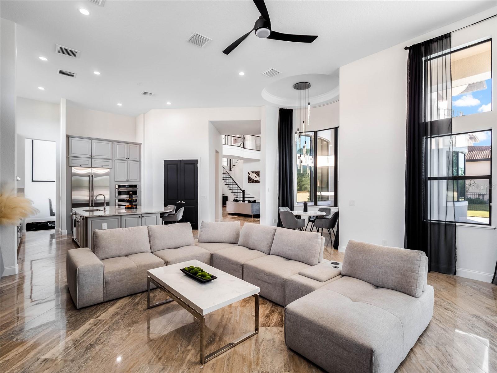 Esta bela casa, construída pela Toll Brothers em 2019, está localizada em CASABELLA, uma das comunidades mais procuradas da Flórida Central. Localizada em Windermere, esta comunidade oferece privacidade, casas amplas em lotes espaçosos e estilo de vida luxuoso. Ao entrar neste condomínio fechado, você reconhece imediatamente a privacidade e as paisagens lindamente cuidadas. Esta casa recebe você instantaneamente com uma ampla entrada de automóveis e mais de 5.400 pés quadrados de área interna. O conforto é sentido imediatamente após a entrada com os sistemas de filtragem APCO Fresh Air UV instalados em cada uma das TRÊS unidades de ar condicionado. Ao entrar, você é recebido por uma grande sala formal com piso de mármore, tetos de 25 pés e janelas do chão ao teto que criam uma cena panorâmica com vista para a grande piscina e spa inundada por muita luz natural! Diretamente ao lado, você encontrará um lindo bar molhado com parede de adega, perfeito para confraternizações ou entretenimento! Seu quarto principal no primeiro andar é uma das DUAS suítes do proprietário e possui grandes janelas com vista para o quintal e piscina, dois grandes closets e espaço flexível que pode ser usado como academia ou retiro privado! Um elegante spa de banho é separado do chuveiro, assim como TRÊS penteadeiras! Esta planta baixa oferece um quarto adicional com banheiro privativo, uma lavanderia espaçosa e um escritório/sala de artesanato no primeiro nível! Você ficará animado ao encontrar uma COZINHA GOURMET, totalmente equipada com eletrodomésticos JENNAIR e grande ilha. Desfrute de um jantar aqui, em uma espaçosa sala de jantar ou em uma sala de jantar formal surpreendentemente atraente! O segundo nível oferece a segunda das duas suítes do proprietário e três quartos adicionais que oferecem banheiro privativo. Para o seu prazer de viver ao ar livre, você encontrará uma cozinha ao ar livre, completa com uma superfície plana nunca usada em estilo hibachi, ampla churrasqueira a gás, espeto rotativo e duas geladeiras! Desfrute de assentos no bar ao ar livre, equipado com som surround, ou crie seu próprio design com uma abundante quantidade de hardscape. Esta bela casa fica a poucos minutos de lojas e restaurantes de classe mundial, perto de parques temáticos e pode ser facilmente acessível às principais rodovias. Agende seu passeio hoje mesmo!