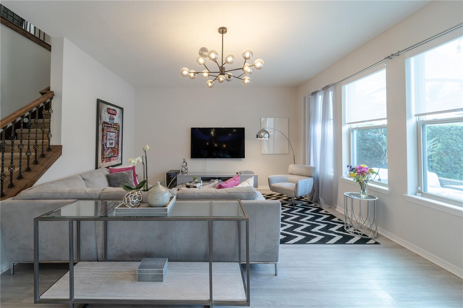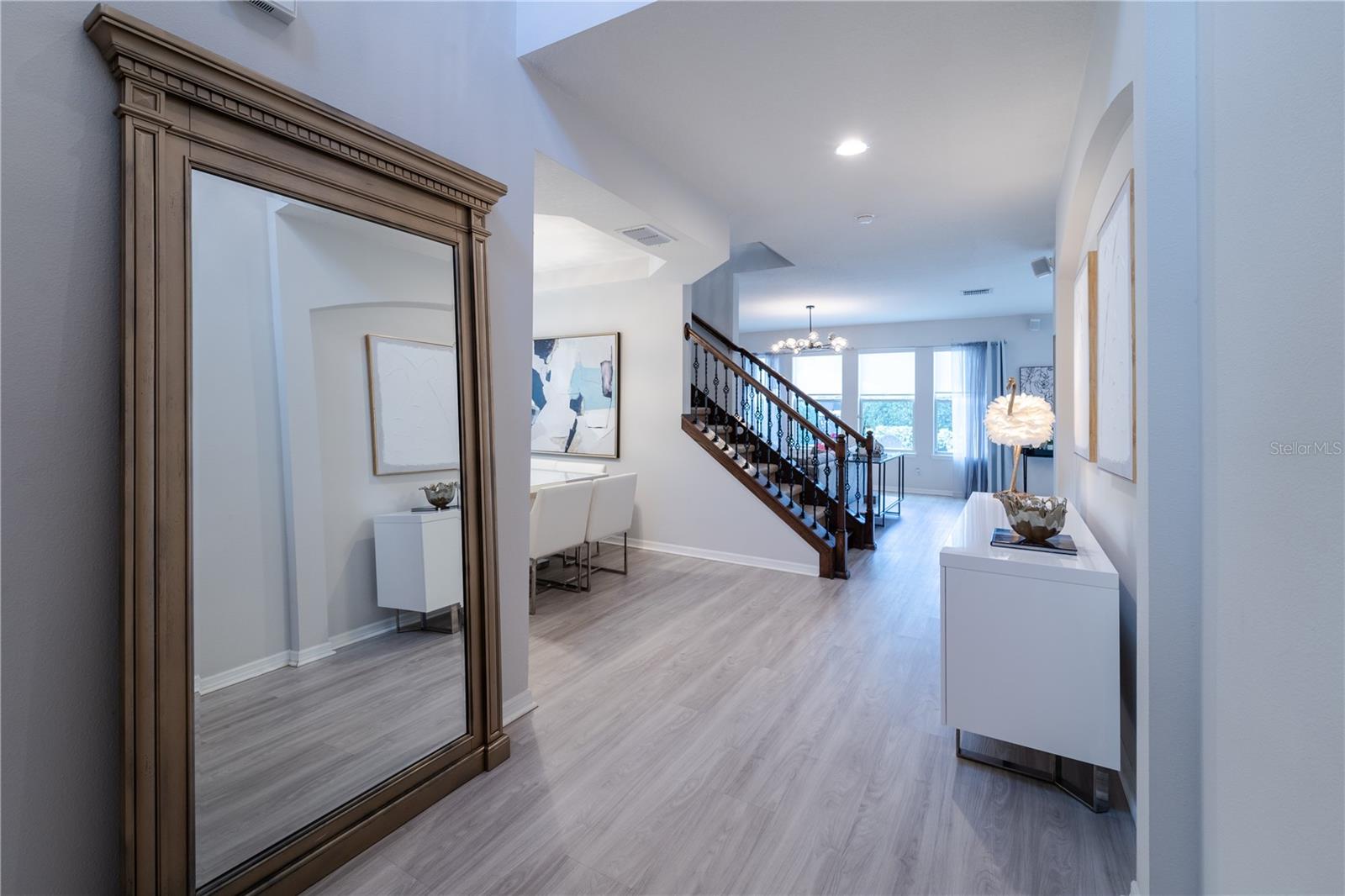Localizada em Windermere e a 3,2 km das atrações da Disney, esta convidativa casa com certificação ENERGY STAR possui 4 quartos, 3 banheiros, LOFT, varanda coberta e garagem para 2 carros. Quarto no primeiro andar perfeito para visitas ou como escritório. JANTAR FORMAL com Bandeja de Teto. Cozinha aberta para a sala familiar e possui armários de design de 42" em noz-moscada com sanca, balcões de granito em Uba Tuba, eletrodomésticos de aço inoxidável e despensa. Lindos TRILHOS DE ESCADA DE FERRO que levam ao segundo andar com grande loft. SUÍTE MASTER tem teto de bandeja , Closet grande, pia dupla com balcões de granito, banheiro de jardim com banheira de imersão e chuveiro com box de vidro, armário de linho e lavatório de tijolos privativos. Paver Driveway & Walkway. Recursos ENERGY STAR com isolamento R-38, 15 SEER HVAC e aquecedor de água híbrido proporcionam economia com contas de serviços públicos baixas. Windermere Trails oferece aos residentes uma piscina comunitária, cabana, parques para cães com estação de lavagem, playground e área de exercícios.