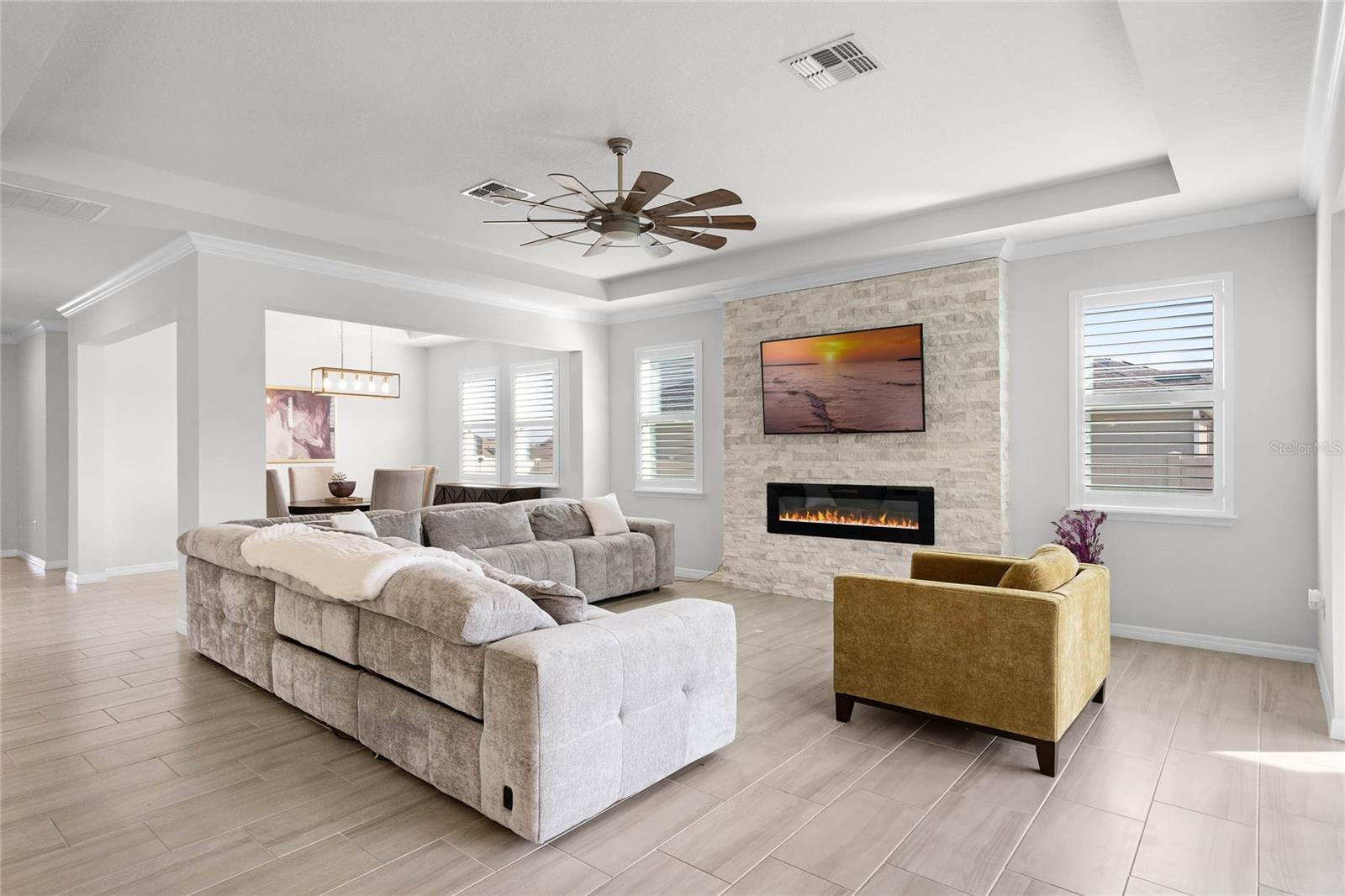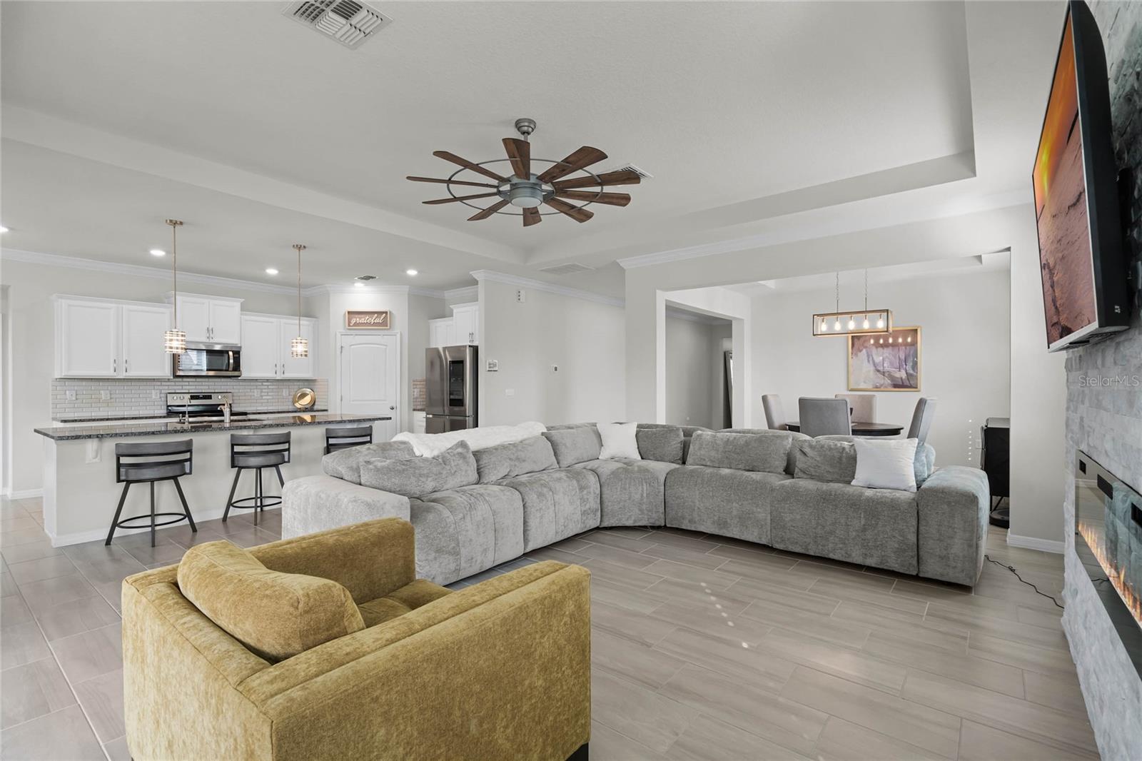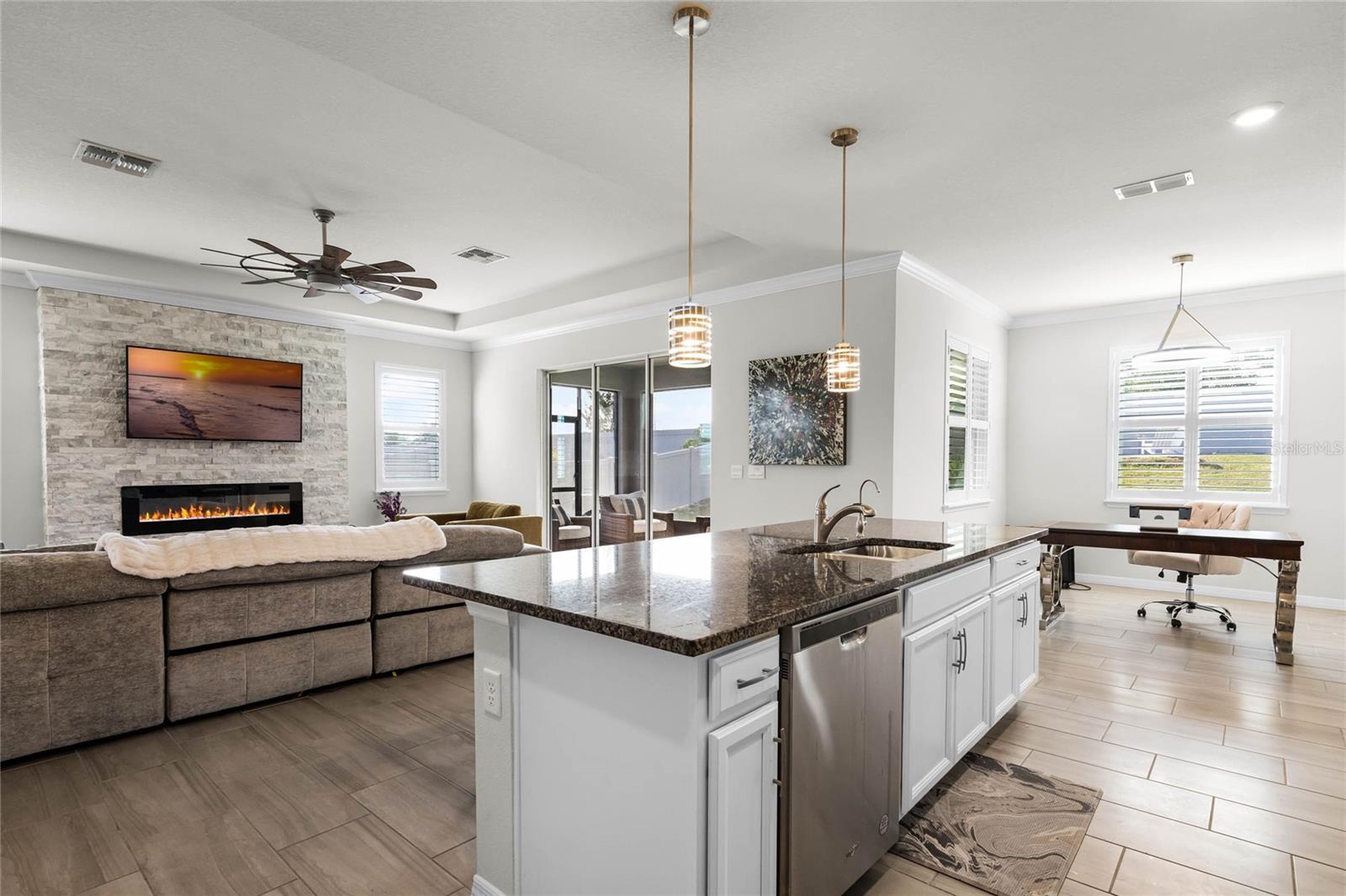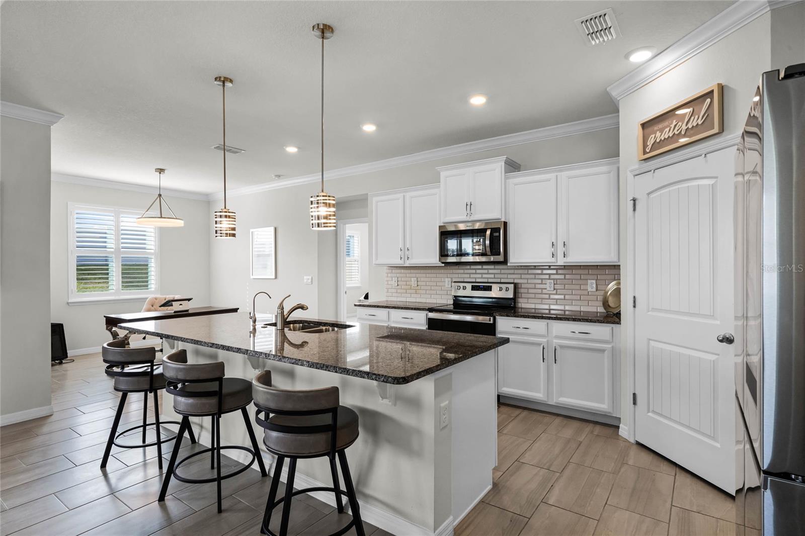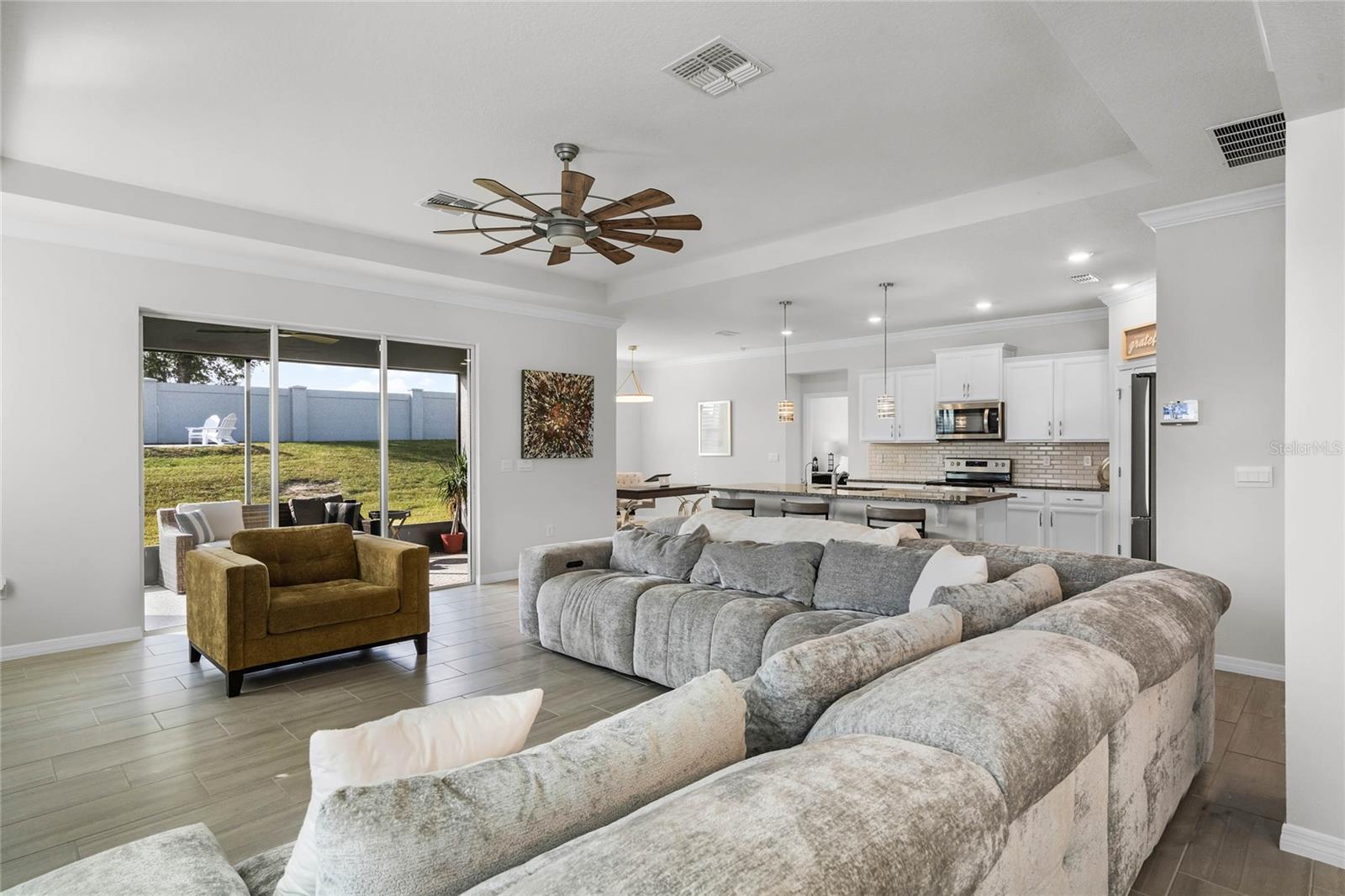 Prepare-se para ficar impressionado com esta IMPRESSIONANTE casa de 4 quartos e 3,5 banheiros com 2.795 pés quadrados e uma garagem para 3 carros na altamente desejada comunidade de Lake Apopka Sound! Este D.R. O modelo Horton Camden apresenta uma suíte anexa para sogros com entrada privativa própria, perfeita para uma vida multigeracional! Passando pela porta de vidro e entrando no hall de entrada, você será recebido por um interior bem equipado com uma sala familiar que se abre para a área de jantar formal e para a cozinha. Todos vão adorar se reunir na sala de estar ao redor da lareira, que é acentuada por uma linda parede de pedra. A cozinha é o sonho de um chef com bancadas de granito, eletrodomésticos de aço inoxidável, uma ilha grande, backsplash de azulejos e uma despensa. Uma copa adjacente à cozinha oferece espaço adicional para refeições. A suíte principal é um retiro privado com um quarto espaçoso e banheiro privativo com pia dupla, banheira de jardim, box amplo e closet Closets by Design. A planta dividida apresenta dois quartos adicionais perto da frente da casa com banheira Jack e Jill. Família e convidados se sentirão em casa na suíte dos sogros, que oferece sala de estar, cozinha compacta e quarto com banheiro privativo. Saia para a privacidade do quintal cercado e passe algum tempo relaxando no pátio coberto ou na área pavimentada que é perfeita para uma fogueira. Desfrute de atualizações em todas as áreas, incluindo venezianas, sancas, tetos de bandeja, luminárias e ventiladores atualizados, azulejos com aparência de madeira nas principais áreas de estar, um sistema de amaciante de água/filtração/osmose reversa e tecnologia de casa inteligente, incluindo controle de termostato e entrada sem chave. Lake Apopka Sound é uma ótima comunidade para caminhadas e está em uma localização privilegiada perto da Turnpike, do Downtown Winter Garden, da West Orange Trail, de lojas e restaurantes. Esta casa fica em um terreno de 0,31 acres, um dos maiores da comunidade, e está esperando que você a torne sua - agende sua exibição privada hoje mesmo! *Os limites das fotos aéreas são uma estimativa e devem ser verificados pelo comprador.
