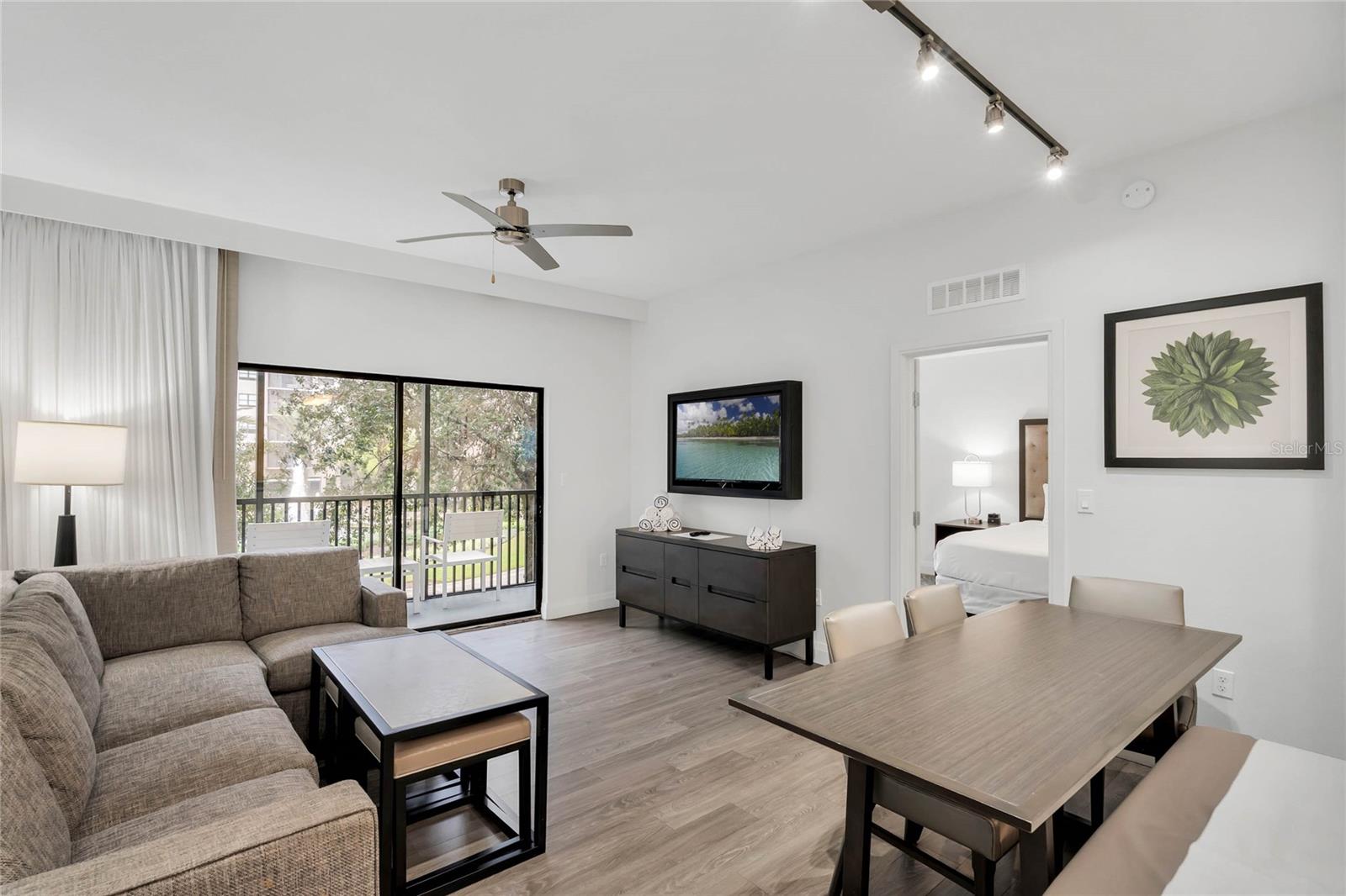 Aluguel de férias de luxo no The Grove Resort and Spa. Lindamente mobiliada com móveis e acessórios modernos que proporcionam uma propriedade de férias única, esta unidade totalmente mobiliada de 2 quartos e 2 banheiros pode acomodar até 8 pessoas (quarto com 1 cama king size, quarto com 2 camas de casal e sofá-cama queen) e possui cozinha gourmet com eletrodomésticos de aço inoxidável e balcões de quartzo. O Grove Resort and Spa oferece serviço de concierge e possui diversos bares, restaurantes, diversas piscinas e spas, rio lento, parque aquático, simulador de surf com instrutor, day spa, cais de pesca e pedalinhos no Lago Austin. O resort fica a poucos minutos da Disney World, com serviços de transporte para os parques. Este é um dos resorts de aluguel por temporada mais luxuosos de Orlando.