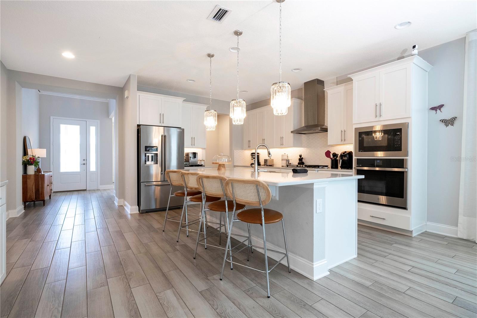 Uma ou mais fotos foram virtualmente encenadas. Entre na residência dos seus sonhos! Perfeita para quem aprecia um amplo espaço ao ar livre para entretenimento e futuros projetos de paisagismo, esta requintada propriedade possui um amplo quintal, completo com uma cozinha de verão ideal para churrascos. A casa apresenta um layout amplo com 5 quartos e 4 banheiros completos, garantindo amplo espaço para família e convidados. O coração da casa, uma cozinha espaçosa, é perfeita para reuniões. Um amplo loft no segundo andar aumenta o charme da casa. A elegância é fundamental, com cada quarto adornado com cortinas e o primeiro andar brilhando com impressionantes lustres de cristal. Desfrute de vistas serenas de conservação do seu quintal, adicionando um toque de tranquilidade à sua experiência de vida. A vida ecológica está ao seu alcance com um sistema de painel solar instalado de forma eficiente, reduzindo os custos de energia. A propriedade também inclui garagem para três carros com atraente piso em epóxi. Não perca a oportunidade de fazer desta a sua casa para sempre!