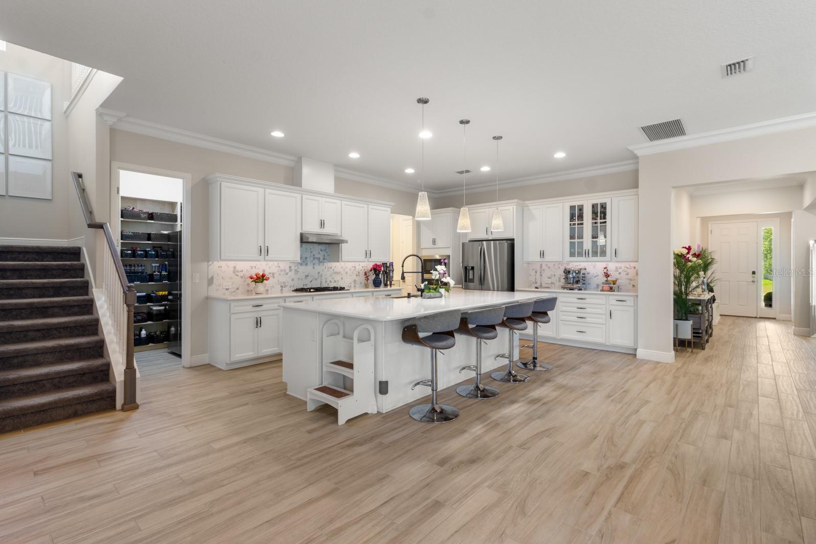 **Preço para vender. De volta à reserva! ** Bem-vindo à casa dos seus sonhos no coração de Hamlin, Winter Garden, a apenas 15 minutos da Disney! Esta propriedade oferece a combinação perfeita de luxo e conveniência, tornando-a um local ideal para viver. Construída em 2020, esta casa apresenta o que há de mais moderno em design e comodidades. O cenário único fica em uma reserva serena, proporcionando um ambiente tranquilo e privado, onde você pode relaxar e desfrutar da natureza no seu quintal. A deslumbrante piscina com spa, aquecimento a gás, sistema de automação e sistema de água salgada é perfeita para relaxamento e entretenimento. Desfrute das noites sob as estrelas com um ecrã embutido com luzes e uma cozinha de verão totalmente equipada, perfeita para receber família e amigos. Esta espaçosa casa possui 5 quartos, sendo 3 suítes, e 4,5 banheiros, proporcionando amplo espaço e conforto para sua família e convidados. No interior, a moderna cozinha apresenta melhorias, contando com um frigorífico principal e um frigorífico adicional na despensa, garantindo um amplo espaço de arrumação. O espaçoso escritório é perfeito para trabalhar em casa, enquanto os embutidos personalizados em toda a casa, incluindo o mudroom, os quartos e a despensa, oferecem soluções de armazenamento convenientes. A lavanderia acabada com bancada de quartzo acrescenta um toque de luxo às tarefas do dia a dia. O primeiro andar é adornado com lindo piso de cerâmica, realçando a elegância e facilidade de manutenção. Uma característica notável desta casa são os painéis solares de propriedade total - tamanho do sistema de 15,6 kW. A casa também está equipada com um sistema de automação completo, incluindo luzes e dimmers inteligentes, bem como um sistema abrangente de câmeras para maior segurança e comodidade. A garagem para 2 carros vem com duas tomadas de carregamento de veículos elétricos, atendendo ao seu estilo de vida moderno. Além disso, o abrangente sistema de filtragem de água garante água limpa e pura em toda a casa. Esta casa oferece uma mistura perfeita de luxo, conveniência e uma conexão única com a natureza. Agende uma visita hoje mesmo e experimente a magia de viver tão perto da Disney!