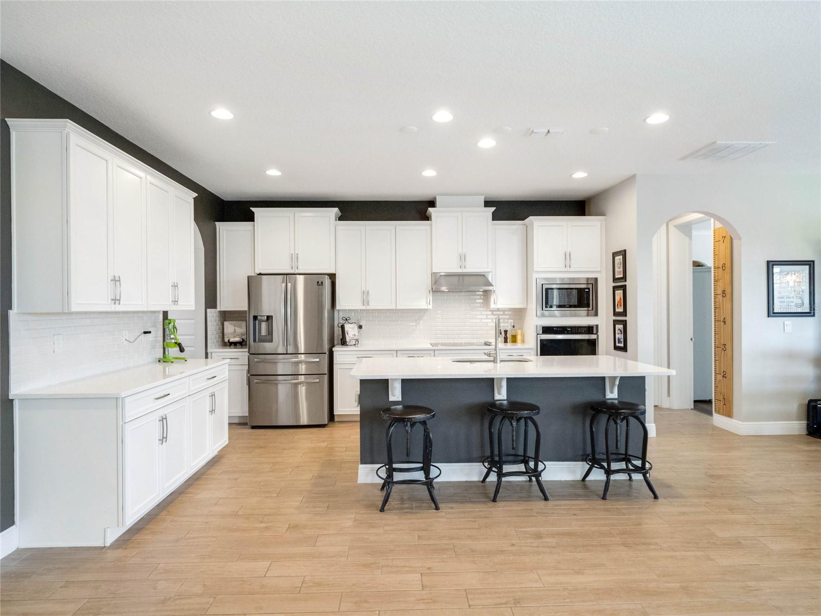 Descubra o epítome da vida luxuosa no coração da vibrante comunidade de Waterleigh em 9873 Lost Creek Drive, Winter Garden, FL 34787. Esta requintada casa de 5 quartos e 4 banheiros, construída em 2021, oferece 3.910 pés quadrados de área útil em um lote de 0,19 acres. A planta aberta conecta perfeitamente a espaçosa sala familiar com uma lareira aconchegante à cozinha gourmet, com armários brancos personalizados de 42 polegadas, bancadas de quartzo, forno embutido, micro-ondas e fogão elétrico. O quarto principal do primeiro andar é um retiro privado com vista para a piscina e para o lago, lareira, closet de designer, pia dupla, banheira de imersão grande e chuveiro espaçoso. No andar de cima, um loft enorme com três armários oferece espaço adicional, acompanhado por quatro quartos de tamanho generoso - dois compartilhando um banheiro completo e dois compartilhando um banheiro Jack e Jill. A piscina personalizada e a área de spa, com vistas deslumbrantes para o lago e fogos de artifício da Disney, ampliam seu espaço ao ar livre com uma área de entretenimento coberta. A comunidade de Waterleigh melhora seu estilo de vida com três centros de amenidades, piscinas, academias de ginástica cobertas, corte de grama, lagos e lagoas cênicos, uma horta comunitária, um parque para cães, trilhas para caminhada e natureza, vôlei de praia, praia com redes, uma mercearia Publix, local lojas, restaurantes e um cinema próximo. A casa também possui sistema solar próprio, agregando eficiência e sustentabilidade. Esta casa é perfeita para famílias, oferecendo acesso rápido às melhores escolas, sendo ideal para concluir a mudança antes do início do ano letivo. Não perca a oportunidade de experimentar a vida em estilo resort em um ambiente focado na comunidade. Agende seu tour privado hoje mesmo!