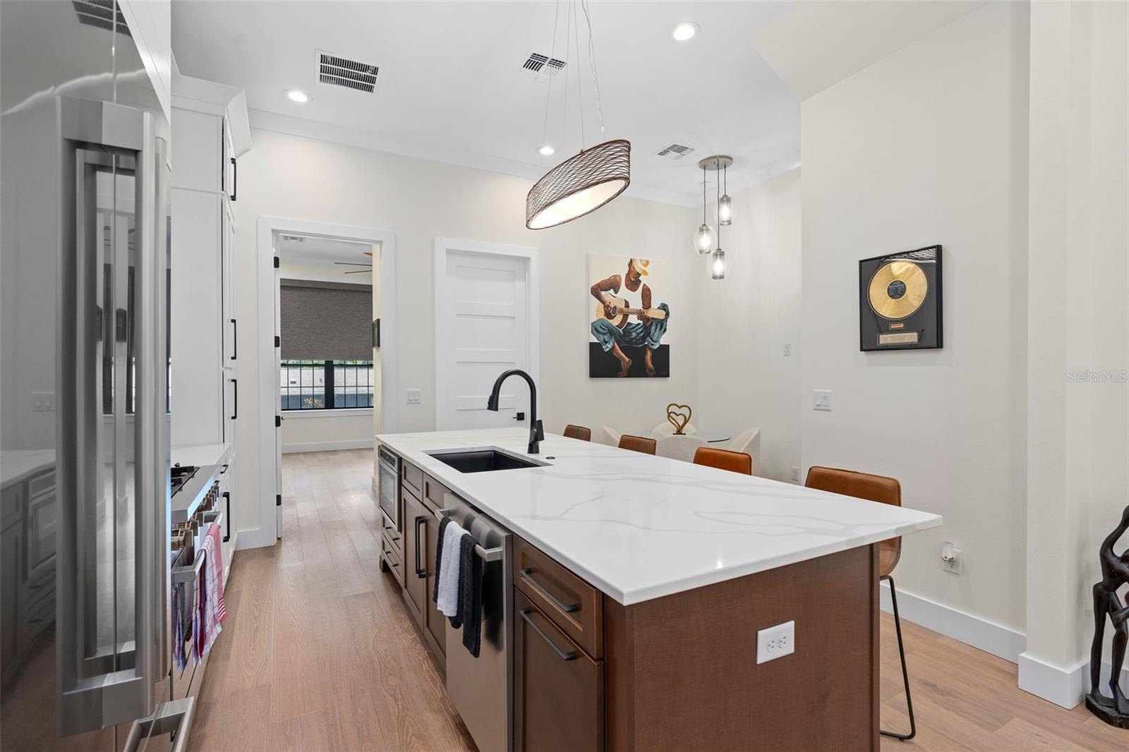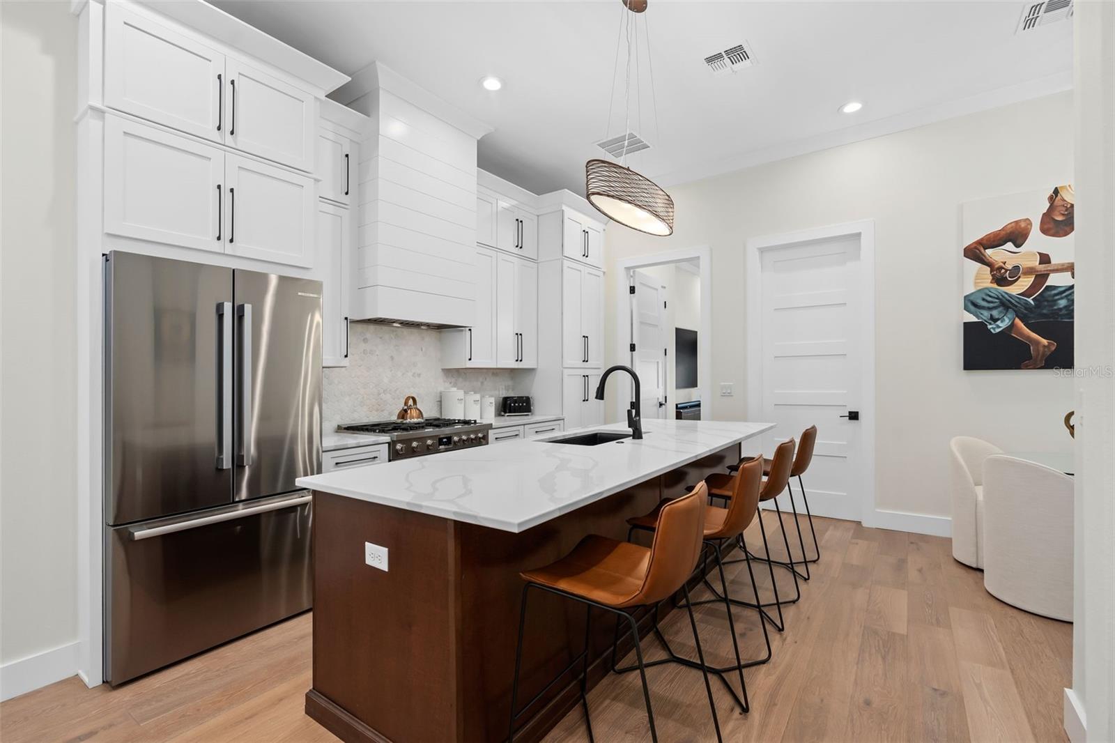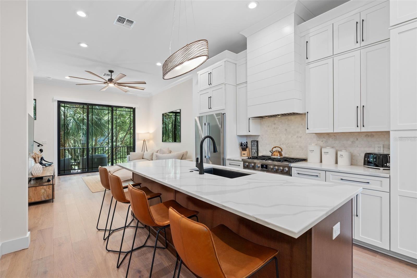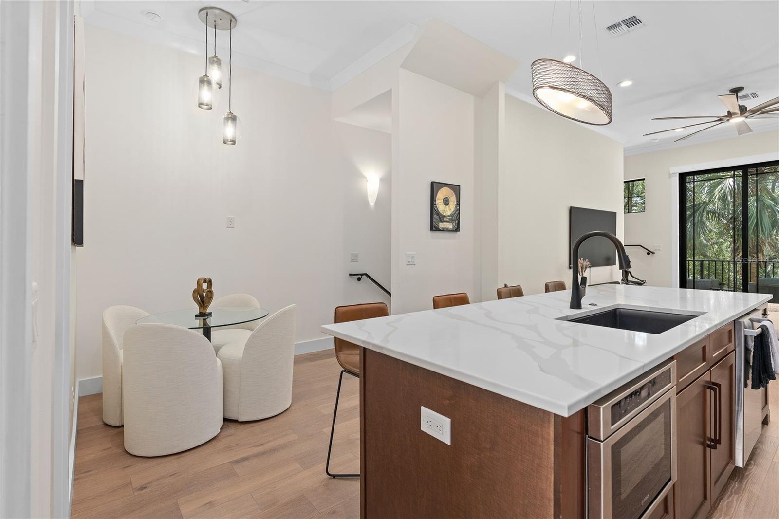 Bem-vindo ao 48 N Park Avenue, na estimada comunidade de residências urbanas 30 N Park, com apenas 9 residências exclusivas concluídas em 2023. Localizadas na West Orange Trail, no movimentado distrito comercial do centro histórico de Winter Garden. Esta unidade de luxo oferece 4 quartos - 4 banheiros e mais de 2.200 SF de vida com detalhes excepcionais por toda parte. O piso principal oferece um espaço flexível ou 4º quarto com banheiro completo, closet e garagem para dois carros. No interior, a casa é decorada com tetos altos de 11 pés no andar principal, pisos de tábuas largas de madeira clara, sancas, acabamentos de alta qualidade, tratamentos de janela personalizados e tecnologia de casa inteligente. A cozinha destaca-se por ser o espaço perfeito para reunir e criar delícias culinárias com uma ilha de quase 10' com poltronas generosas, fogão a gás de 6 bocas, eletrodomésticos BOSCH de última geração, elegantes balcões de quartzo e abundância de armários para arrumação. A planta aberta conecta perfeitamente a cozinha à área de estar principal e ao terraço externo coberto com vista para o topo das árvores. Também neste piso encontra-se um amplo quarto com casa de banho privativa, que actualmente funciona como arrumos. As comodidades práticas da casa incluem um aquecedor de água sem tanque, um gerador para toda a casa e uma garagem enorme para dois carros com revestimento de epóxi, MAIS uma vaga de estacionamento designada. O piso superior está equipado com lavandaria, um quarto de hóspedes com casa de banho privativa, incluindo lavatório duplo e dois armários personalizados, além de grandes janelas que permitem fluxos de luz. A suíte principal oferece um closet com embutidos personalizados e um segundo closet personalizado e um banheiro estilo resort de luxo que inclui pia dupla com balcões de quartzo, box amplo grande com azulejos do chão ao teto, gabinete de vidro transparente e mármore padrão chevron piso de cerâmica. Outras características notáveis desta propriedade incluem grandes quartos secundários. A planta baixa de design excepcional eleva esta residência, oferecendo uma vida luxuosa em uma localização privilegiada no centro da cidade, tornando-a uma escolha atraente para aqueles que procuram um estilo de vida urbano LOCK AND LEAVE sofisticado em Downtown Winter Garden.