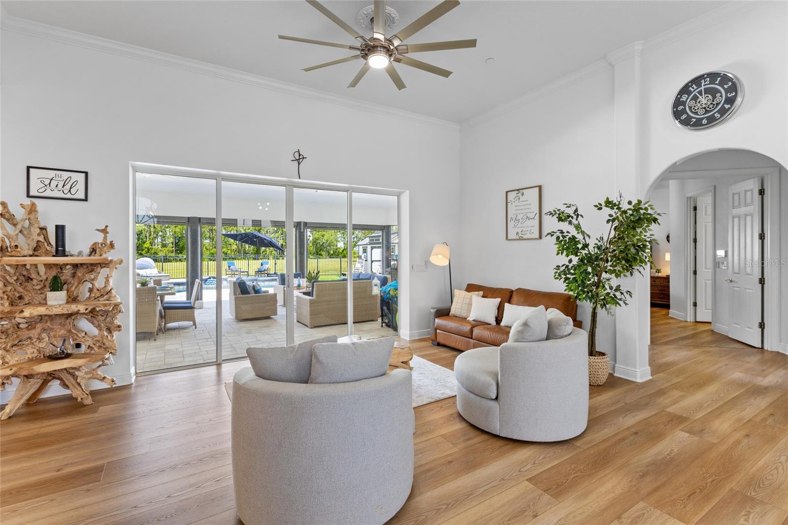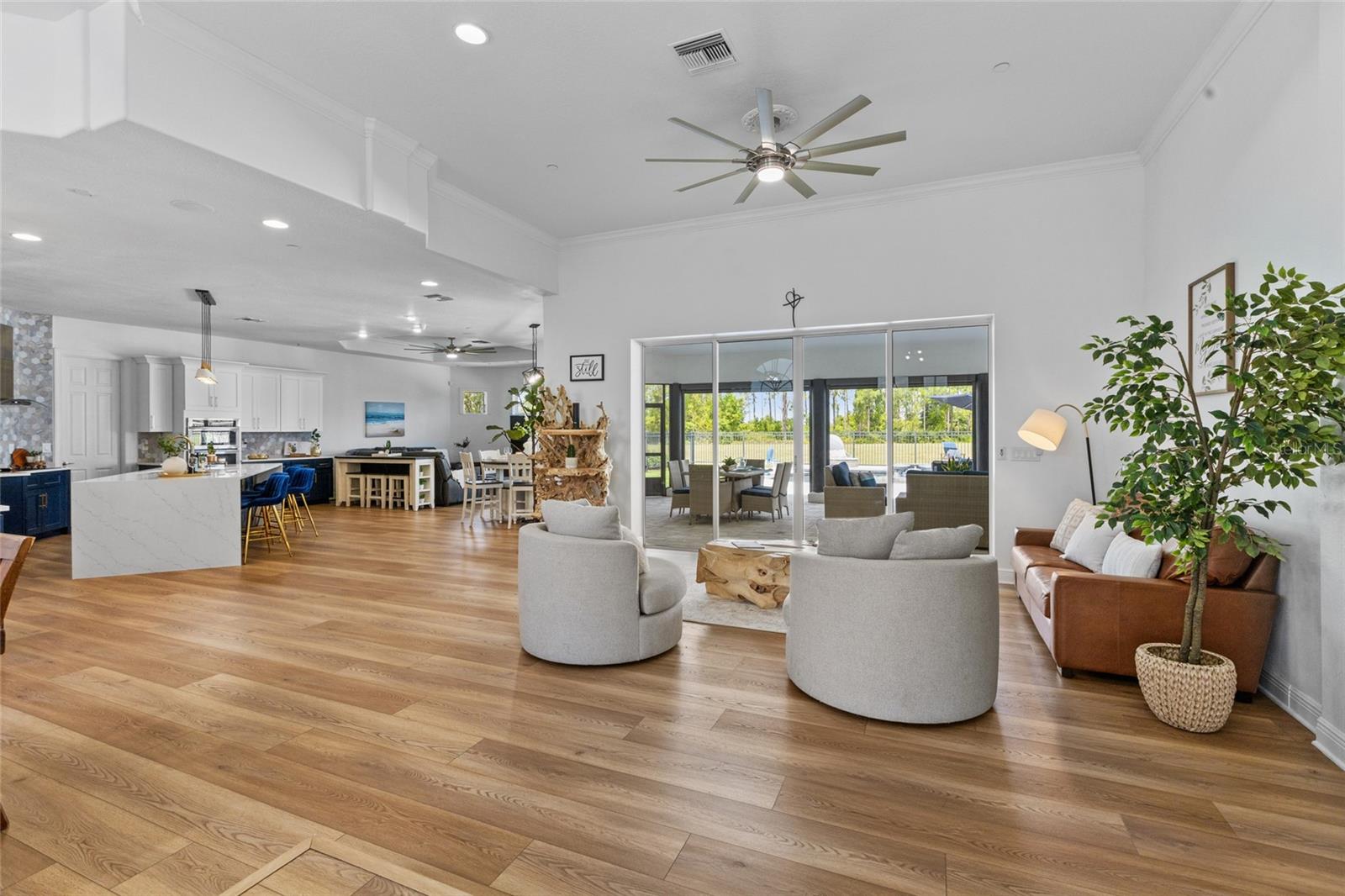 Bem-vindo a esta extraordinária propriedade de 5 quartos e 3,5 banheiros, perfeitamente situada em 5,3 acres em um dos códigos postais mais cobiçados da Flórida Central. Experimente a tranquilidade da vida no campo com a conveniência das comodidades urbanas, incluindo fácil acesso ao Downtown Winter Garden, ao centro de Clermont e ao Walt Disney World, todos a uma curta distância de carro. Entre para descobrir um interior lindamente remodelado com uma cozinha contemporânea com acabamentos elegantes, banheiros atualizados e piso LVP totalmente novo. Ventiladores de teto e luminárias modernos adicionam um toque de estilo e sofisticação. A ampla suíte master é um refúgio de conforto, oferecendo amplo espaço para uma aconchegante área de estar ou uma pequena academia doméstica. Este retiro luxuoso também oferece acesso direto à varanda coberta nos fundos, proporcionando uma vida interna e externa perfeita. No exterior, desfrute da sua área de piscina privada, que foi recentemente recapeada e apresenta um novo deck de pavimentação e relva exuberante, realçando a beleza e a funcionalidade. As persianas retráteis no pátio acrescentam conforto extra, tornando-o o local perfeito para relaxar ou se divertir. Os jardins paisagísticos também incluem uma pequena casa versátil, ideal como suíte para sogra, escritório separado, estúdio de gravação ou como você achar melhor. A vida sustentável é apoiada por painéis solares alugados que alimentam toda a casa, garantindo eficiência energética e benefícios ecológicos. A propriedade está totalmente vedada para privacidade e segurança, com portão manual na entrada do amplo acesso circular. O estacionamento é fácil com uma espaçosa garagem para dois carros e uma garagem adicional para um carro, proporcionando amplo espaço para todos os seus veículos. A lavagem recente do exterior garante que a casa permaneça em perfeitas condições. Esta propriedade excepcional combina perfeitamente luxo, sustentabilidade e espaço generoso em um ambiente lindamente atualizado. Não perca a chance de tornar sua propriedade notável em Winter Garden - uma verdadeira joia que oferece a combinação perfeita de serenidade e conveniência moderna.