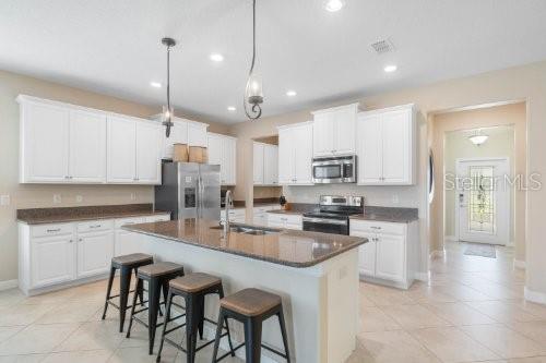 BEM-VINDO A esta IMPRESSIONANTE CASA COM PISCINA de 5 quartos e 3,5 banheiros, que oferece MAIS de 3.700 pés quadrados de espaço LUXUOSO. Ao se aproximar do quintal recém-paisagístico, você será RECEBIDO por uma charmosa calçada de tijolos que leva a uma varanda frontal convidativa, perfeita para aproveitar o sol da FLÓRIDA em uma confortável cadeira de balanço. Passe pela LINDA porta frontal de vidro gravado e entre em um espaçoso hall de entrada com uma sala de jantar BRILHANTE e arejada, ideal para todas aquelas refeições especiais. Grandes janelas inundam o espaço com LUZ NATURAL e proporcionam uma bela vista da varanda frontal. Ao lado da sala de jantar há uma conveniente despensa de mordomo com amplo ESPAÇO DE BALCÃO para todo o seu trabalho de preparação, bem como uma generosa despensa. O coração da casa é a COZINHA, com uma ABUNDÂNCIA de bancadas de granito, eletrodomésticos de aço inoxidável e armários de MADEIRA de 42 polegadas. Esta cozinha de fácil fluxo, com a sua ilha ESPAÇOSA e área de trabalho dedicada, oferece funcionalidade e estilo. A dinette é uma GRANDE ÁREA ABERTA que dá acesso à sala familiar, criando um ESPAÇO PERFEITO para entretenimento. Seus olhos serão atraídos para o lindo FLORIDA LIVING ao ar livre. Da varanda coberta que transita lindamente para a área da PISCINA, adornada com pavimentos encantadores e uma CACHOEIRA TRANQUILA, você nunca mais vai querer sair! O quintal TOTALMENTE cercado tem vista para uma área de retenção seca, oferecendo total PRIVACIDADE e uma atmosfera SERENE. Um maravilhoso espaço verde para jogar catch ou kickball. A SUÍTE PRIMÁRIA DE BAIXO é espaçosa com janelas com vista para a piscina e quintal. O banheiro privativo, com amplo closet, pias duplas, banheira de imersão e box amplo, certamente agradará após um longo dia, proporcionando um RETIRO RELAXANTE. No andar de cima, você encontrará MAIS 4 quartos enormes, CADA UM COM ARMÁRIOS WALK-IN, dois banheiros completos e uma enorme SALA DE BÔNUS. Esta casa tem espaço suficiente para toda a família se espalhar ou receber amigos e familiares. Alexander Ridge é uma COMUNIDADE ALTAMENTE DESEJADA, conhecida por sua localização, recursos e comodidades. Aproveite a piscina comunitária, o clube e o playground. Com fácil acesso à State Road 429, Winter Garden Village e Stoneybrook West Village, a conveniência está à sua porta. A Foundation Academy fica a poucos passos do bairro, e as lojas e restaurantes próximos fazem deste o LOCAL IDEAL para SUA NOVA CASA. Agende SUA exibição hoje, antes que seja tarde demais!