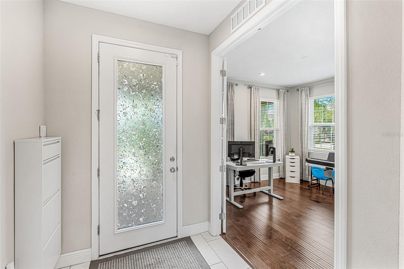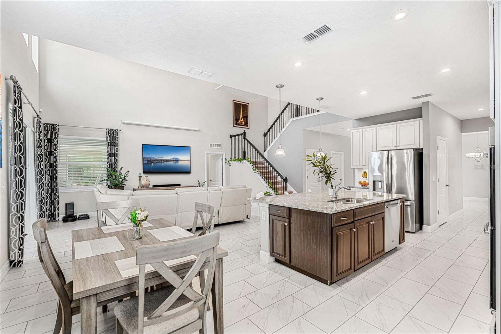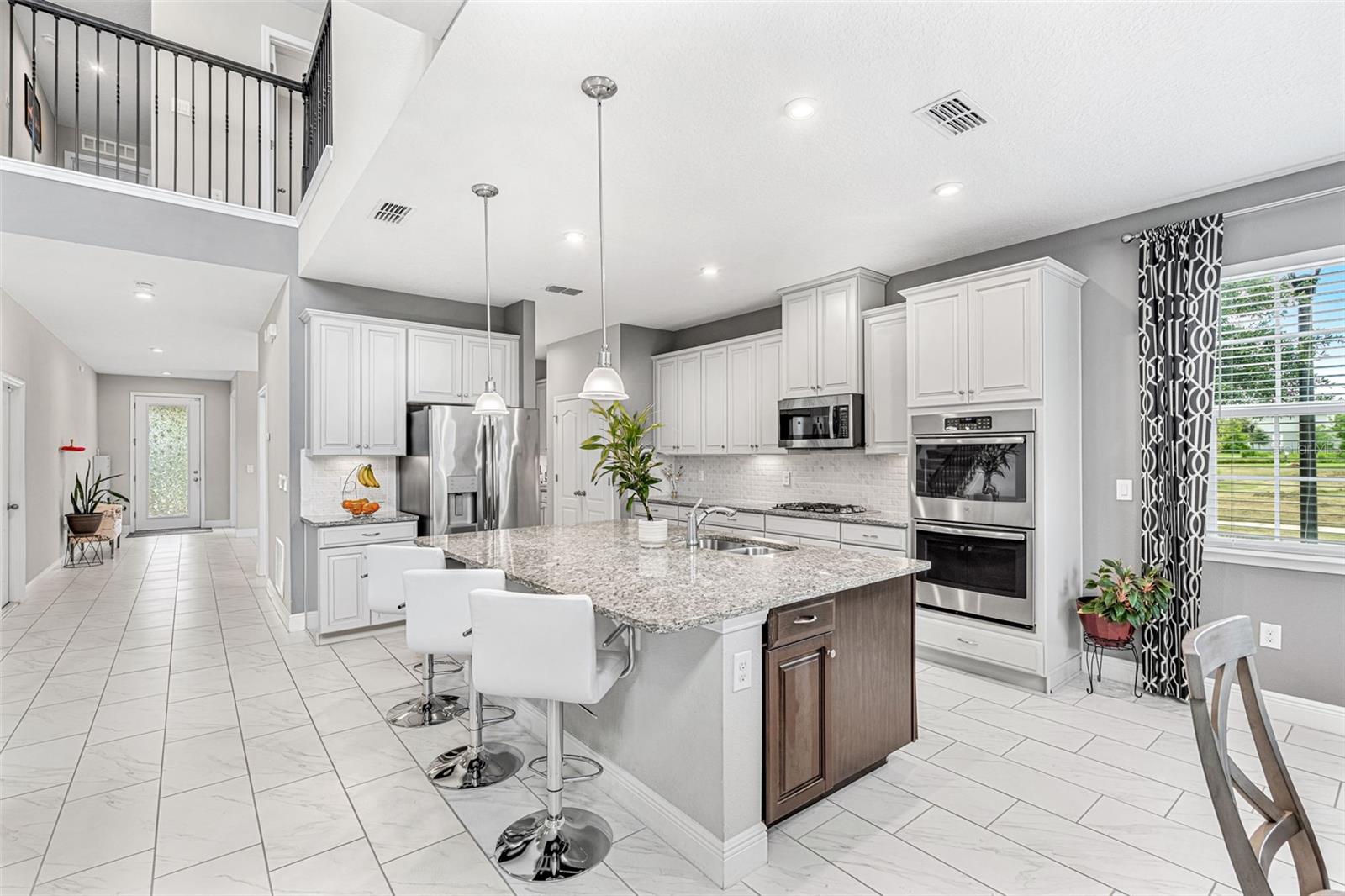 Entre nesta deslumbrante casa modelo antiga localizada em um terreno de esquina premium, com uma ampla suíte para sogra, escritório separado, área de jantar formal dedicada e recursos atualizados por toda parte. A enorme cozinha do chef é um empecilho, adornada com elegantes armários em dois tons com painel elevado em marfim, forno duplo, backsplash de azulejos, iluminação pendente, bar seco, uma grande ilha central e bancadas de granito perfeitas para suas aventuras culinárias. O recanto da cozinha, com suas janelas adicionais, oferece vistas pitorescas da piscina comunitária e do playground do bairro, a poucos passos de casa, criando um cenário sereno para refeições diárias e fácil acesso para um mergulho rápido na piscina. Suba o corrimão da escada lindamente trabalhado para descobrir a sala de estar, onde três grandes janelas e tetos altos banham o espaço com luz natural e criam uma sensação de opulência. Cada quarto excede as dimensões médias, proporcionando amplo espaço para móveis com espaço de sobra. A suíte principal é um verdadeiro retiro, com dois closets - um tão espaçoso que parece um quarto próprio, teto embutido e iluminação embutida. Acabamentos de alta qualidade enfeitam os banheiros e todas as demais comodidades da casa. A elevação exterior da casa é igualmente impressionante, com um design personalizado que realça a sua atratividade. O amplo lote oferece privacidade e uma bela fogueira no quintal, cercada por assentos perfeitos para encontros aconchegantes, seja para churrascos ou manhãs tranquilas com uma xícara de café. A casa está localizada a poucos minutos das lojas locais da área de Hamlin, restaurantes, escolas com classificação "A", parques temáticos da Disney World, principais rodovias e muito mais. Descubra por que Hamlin é o melhor lugar para se chamar de lar! Ligue hoje para agendar sua exibição.