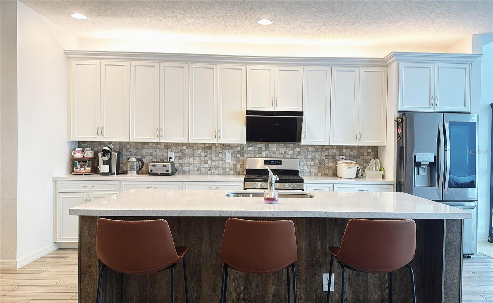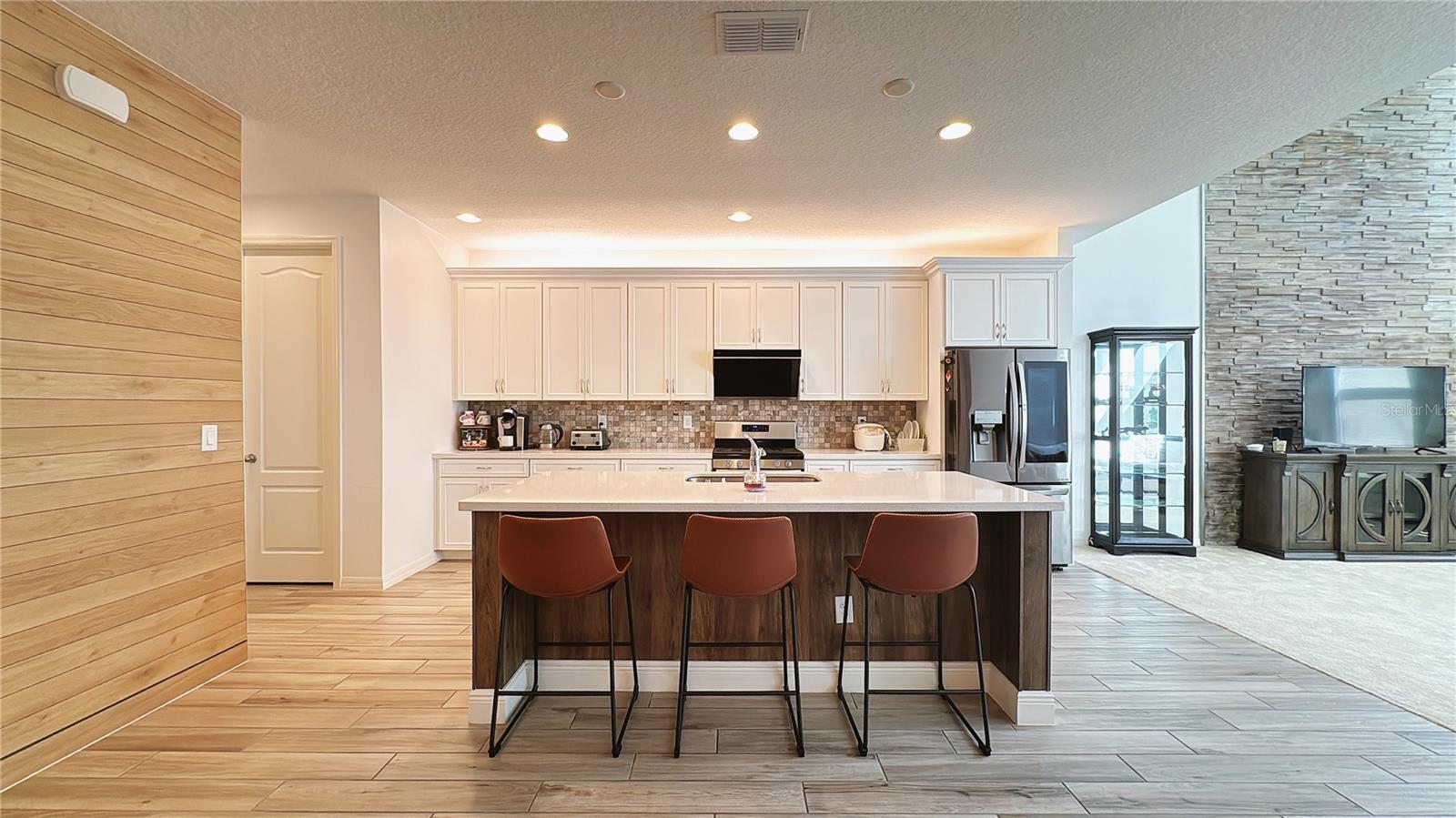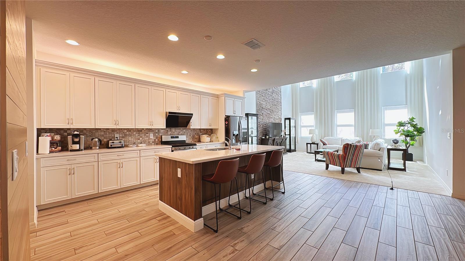 ** Impressionante casa de artesão personalizada em Latham Park ** Bem-vindo a este modelo Ashton Woods Duval meticulosamente elaborado, uma verdadeira obra-prima com 5 quartos espaçosos e 4,5 banheiros, espalhados por mais de 3.500 pés quadrados de espaço elegante. Situada em um pitoresco terreno de conservação na muito procurada comunidade de Latham Park, em Horizon West, esta casa é uma mistura perfeita de luxo e funcionalidade. **Planta baixa aberta e convidativa** Ao entrar, você será recebido por um layout cuidadosamente projetado que enfatiza conforto e estilo. O coração da casa apresenta. A enorme ilha personalizada serve como um ponto de encontro perfeito. Equipada com fogão a gás de 36", micro-ondas de convecção embutido e forno, esta cozinha é o paraíso dos entusiastas da culinária. Os armários atualizados incluem uma conveniente despensa para manobrista e mordomo para maior armazenamento e facilidade. O primeiro andar também possui uma acolhedora suíte de hóspedes, uma elegante sala de jantar e uma grande sala de dois andares inundada de luz natural. O espaço convidativo pode ser uma lareira, criando um ambiente aconchegante para confraternizações. **Suíte Master Luxuosa e Quartos Adicionais** Suba as escadas para a serena suíte master, onde você encontrará um teto falso e um banheiro privativo tipo spa com pia dupla. O amplo closet oferece amplo espaço para todas as suas necessidades de guarda-roupa. A sala/loft bônus foi cuidadosamente ampliada, tornando-se um espaço ideal para entretenimento ou relaxamento. Três quartos adicionais bem equipados e dois banheiros (um deles privativo) oferecem muito espaço para a família e convidados. O banheiro principal possui revestimentos de azulejos e a casa é adornada com acessórios elegantes, garantindo um ambiente acolhedor e convidativo. A impressionante cantaria na fachada e o piso luxuoso nas áreas públicas e na suíte master contribuem para o fascínio da casa. A garagem dispõe ainda de um terceiro vão (tandem) de 15x9, proporcionando arrumação ou espaço de trabalho adicional. Não perca a oportunidade de fazer deste excepcional imóvel a sua nova casa! Agende sua exibição hoje e experimente a combinação perfeita de luxo, conforto e vida serena em Latham Park.