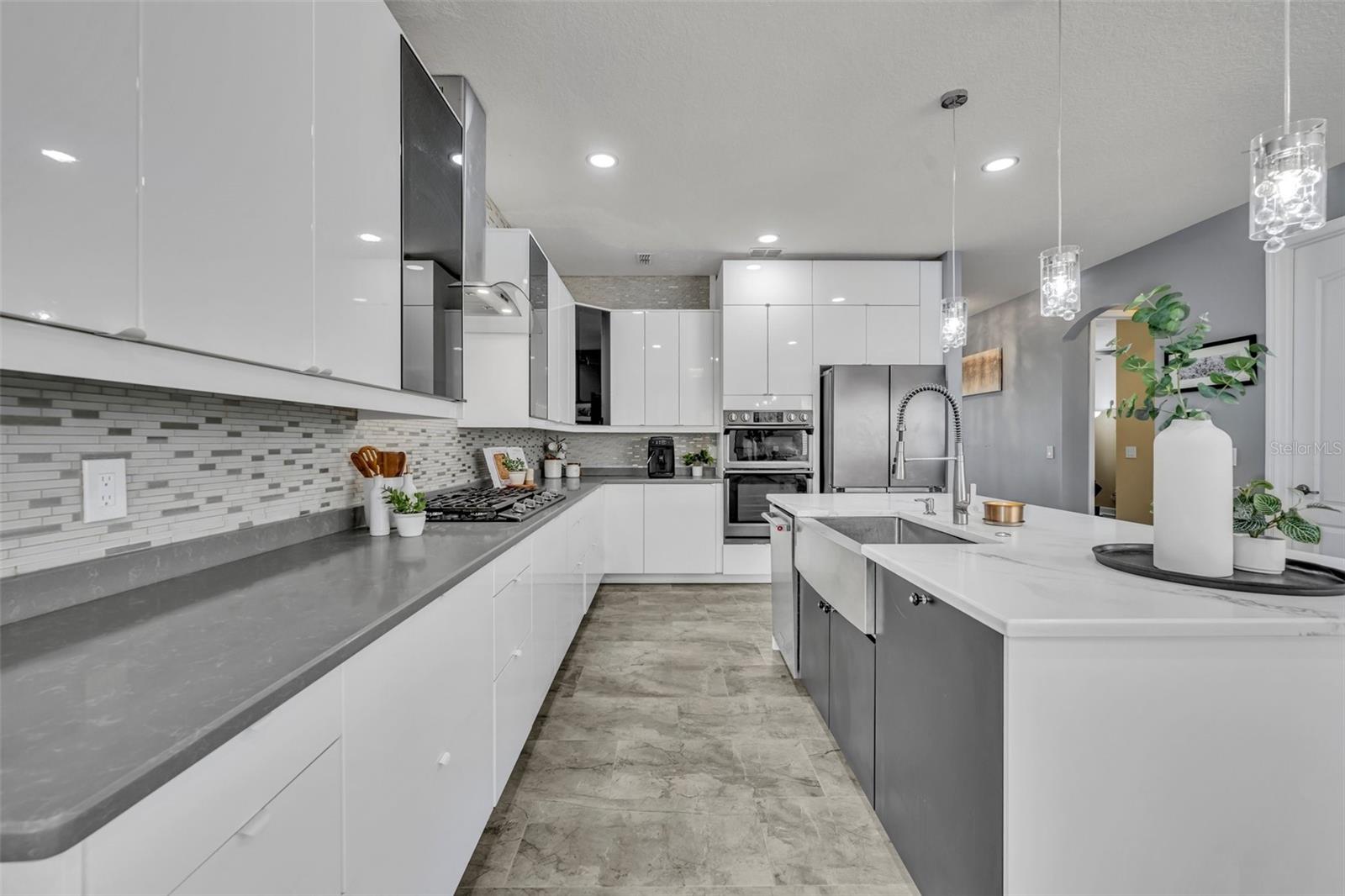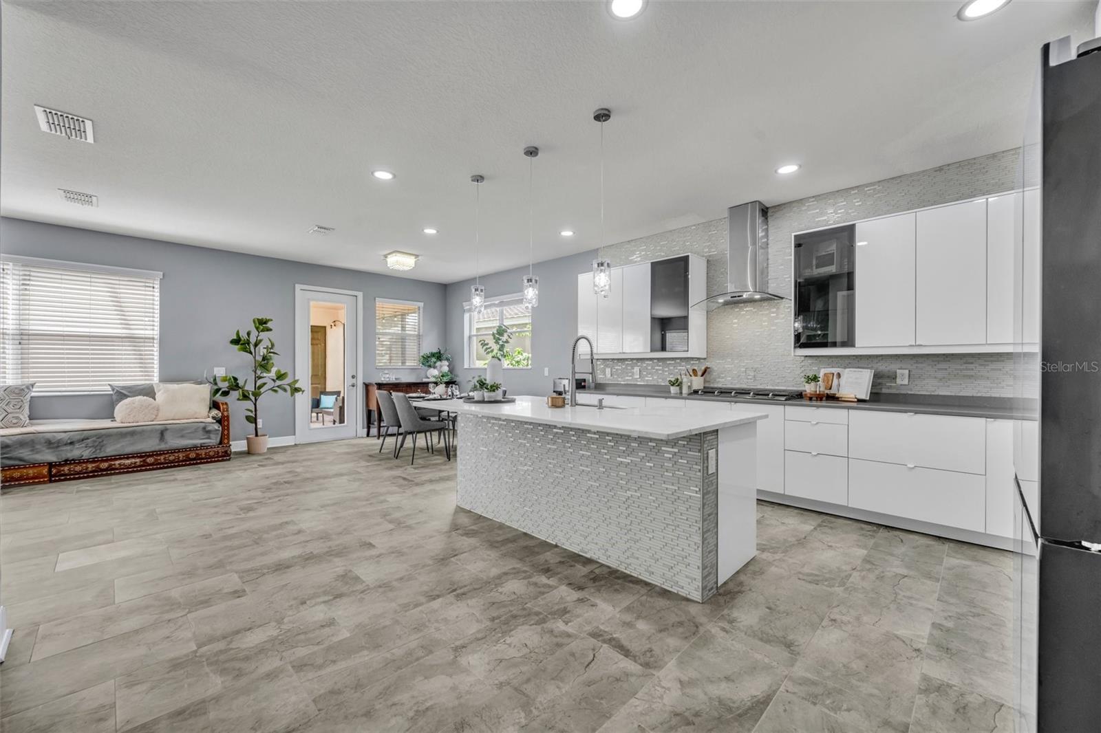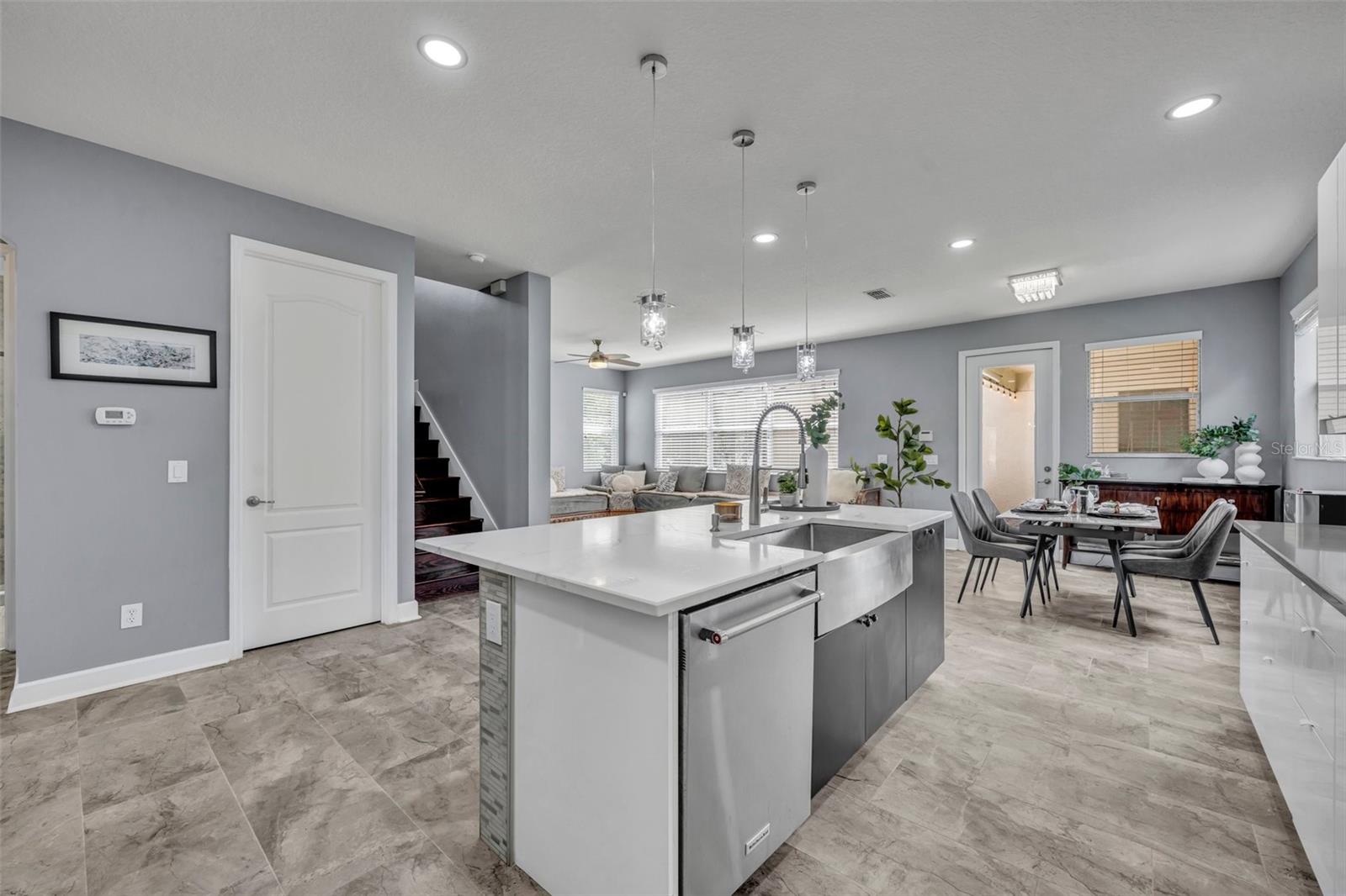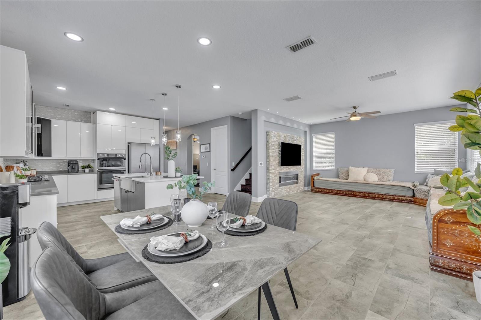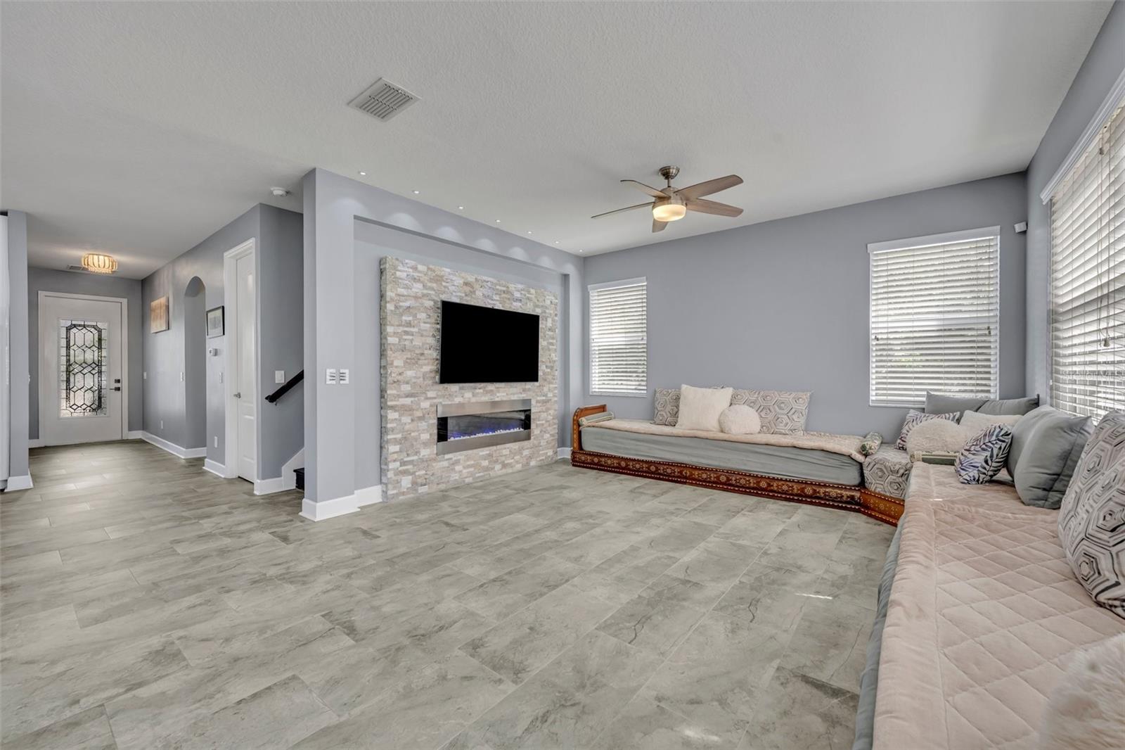 Bem-vindo à casa dos seus sonhos na tão procurada comunidade da Independência em Winter Garden! Esta impressionante propriedade de dois andares fica em um terreno de esquina com belo paisagismo, oferecendo uma experiência de vida moderna e luxuosa com inúmeras atualizações por toda parte. Ao entrar, você é recebido por uma versátil sala frontal flexível, perfeita como um escritório doméstico ou uma área de estar formal. Continue até o coração da casa, onde a cozinha gourmet totalmente renovada brilha com armários brancos, elegantes eletrodomésticos de aço inoxidável preto Samsung, fogão a gás natural e uma ilha espaçosa que é perfeita tanto para preparar refeições quanto para entretenimento. A cozinha flui perfeitamente para a sala de jantar e família de conceito aberto, onde uma parede personalizada com detalhes em pedra e uma lareira elétrica embutida cria um espaço convidativo para relaxar ou receber convidados. Um quarto espaçoso e um banheiro totalmente reformado estão localizados no primeiro andar, oferecendo comodidade e privacidade para hóspedes ou residências multigeracionais. Aventure-se no andar de cima para encontrar um amplo loft, ideal para home office ou centro de entretenimento, atualmente usado como cinema. O segundo andar também inclui três quartos de hóspedes bem equipados - um dos quais com closet. O banheiro de hóspedes oferece pias duplas para maior comodidade. A suíte principal é um verdadeiro retiro, banhada por luz natural e com dois grandes closets. O banheiro privativo dispõe de banheira de imersão, box amplo e pia dupla, criando o espaço perfeito para relaxar. Saia para desfrutar do pátio totalmente protegido, perfeito para refeições ao ar livre ou relaxamento. O exterior da casa é ainda realçado por um belo quintal ajardinado e uma garagem individual para três carros com entrada pavimentada, oferecendo amplo estacionamento e arrecadação. Toda a casa, por dentro e por fora, foi pintada de fresco, realçando o seu apelo contemporâneo. Localizada a poucos minutos do Hamlin Town Center, Winter Garden Village e Walt Disney World, esta casa está em uma área conhecida por suas escolas com classificação A e comodidades comunitárias excepcionais. Como residente de Independence, você terá acesso a um clube, playgrounds, academia, piscinas comunitárias e muito mais. Não perca a oportunidade de fazer desta casa incrível o seu lar para sempre. O comprador receberá 1% de crédito do credor para custos de fechamento e pré-pagos de e ao usar o credor preferencial. Não espere, agende sua exibição privada hoje mesmo!