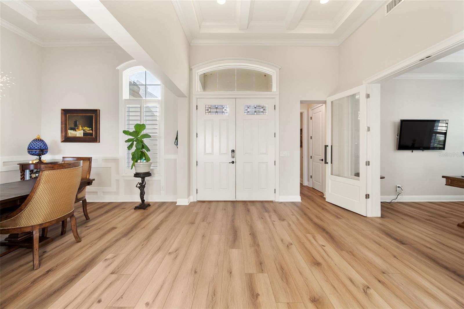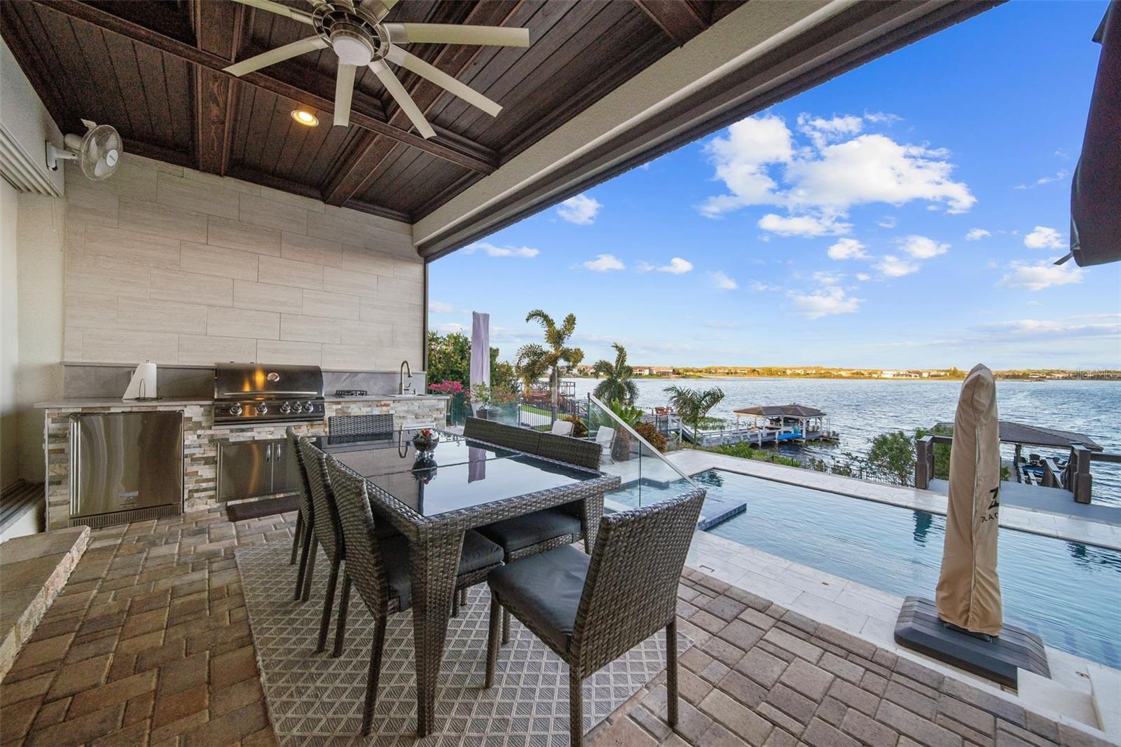 Bem-vindo a um paraíso à beira do lago nas margens do Lago Hancock! Esta casa deslumbrante oferece vistas deslumbrantes sobre águas serenas e cintilantes sob um infinito céu azul da Flórida. Projetada com uma planta de conceito aberto e quartos divididos para maior privacidade, esta casa combina facilmente estilo, conforto e funcionalidade, com atualizações cuidadosas por toda parte. Entre em um quintal elegante, onde uma piscina convidativa com banheira de hidromassagem embutida é cercada por um elegante deck de pedra. Amplas áreas de estar permitem que você aproveite o sol ou desfrute de uma noite com seus entes queridos, enquanto a bela paisagem tropical – incluindo palmeiras, vegetação exuberante e árvores frutíferas – aumenta a sensação de oásis. A poucos passos de distância, seu ancoradouro particular no Lago Hancock oferece fácil acesso à vida à beira-mar, combinando luxo com conexão com a natureza. O pátio coberto é perfeito para refeições ao ar livre, completo com ventilador de teto, TV embutida e tela motorizada que pode ser abaixada para maior conforto e proteção contra as intempéries. Uma cozinha externa e uma área de churrasqueira facilitam a organização de reuniões, enquanto as amplas portas de vidro se abrem totalmente para criar um fluxo contínuo entre os espaços internos e externos. No interior, a casa foi lindamente atualizada com sancas, teto em caixotões e novo piso de vinil luxuoso. A luxuosa cozinha é o sonho de qualquer chef, apresentando uma longa ilha com tampo de quartzo e pia embutida, perfeita para refeições casuais ou para receber convidados. Ricos armários de madeira escura com ferragens de latão e backsplash texturizado acrescentam sofisticação, complementados por eletrodomésticos de aço inoxidável de alta qualidade, incluindo um fogão a gás. As vistas panorâmicas do Lago Hancock a partir das áreas de jantar e de estar melhoram o ambiente, combinando luxo, conforto e beleza cênica. A suíte principal, projetada para o máximo conforto e privacidade, tem vista para o lago, oferecendo vistas serenas diretamente da sua cama. O banheiro tipo spa possui pias duplas e amplo armazenamento, enquanto os closets para ele e para ela oferecem espaço generoso para itens essenciais do guarda-roupa. Persianas em toda a casa e cortinas blackout nos quartos permitem controle de luz e privacidade personalizados, garantindo um ambiente tranquilo. Esta casa também possui uma variedade de atualizações premium, incluindo um amaciante de água, painéis solares com eficiência energética, um sistema de iluminação permanente e um sistema de segurança de nível comercial com 8 câmeras para maior tranquilidade. O som surround na sala familiar eleva a experiência de entretenimento, enquanto um quintal totalmente cercado oferece privacidade e segurança. Esteja você nadando, tomando sol, cozinhando ou simplesmente apreciando a vista, o design cuidadoso e as atualizações de alta qualidade desta casa em Lake Hancock - incluindo persianas, persianas blackout, tela motorizada, recursos de segurança e acabamentos luxuosos - criam um ambiente pessoal requintado. retiro adaptado para relaxamento e luxo.