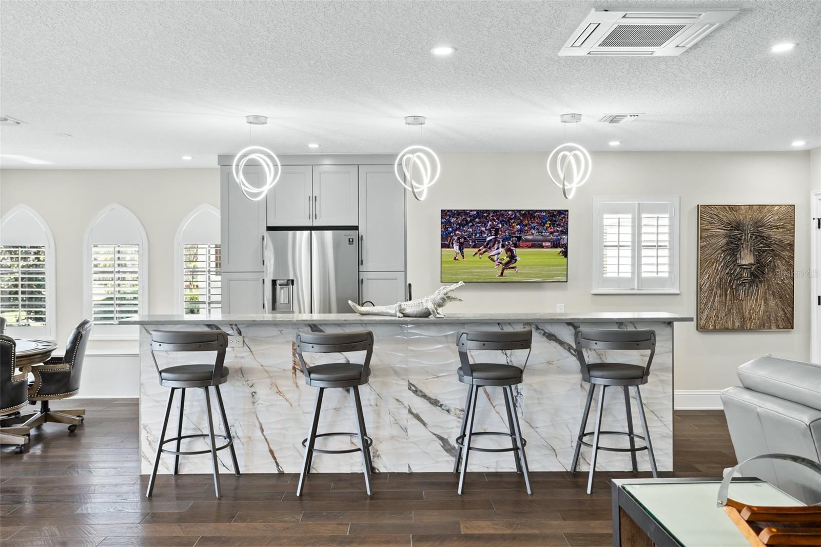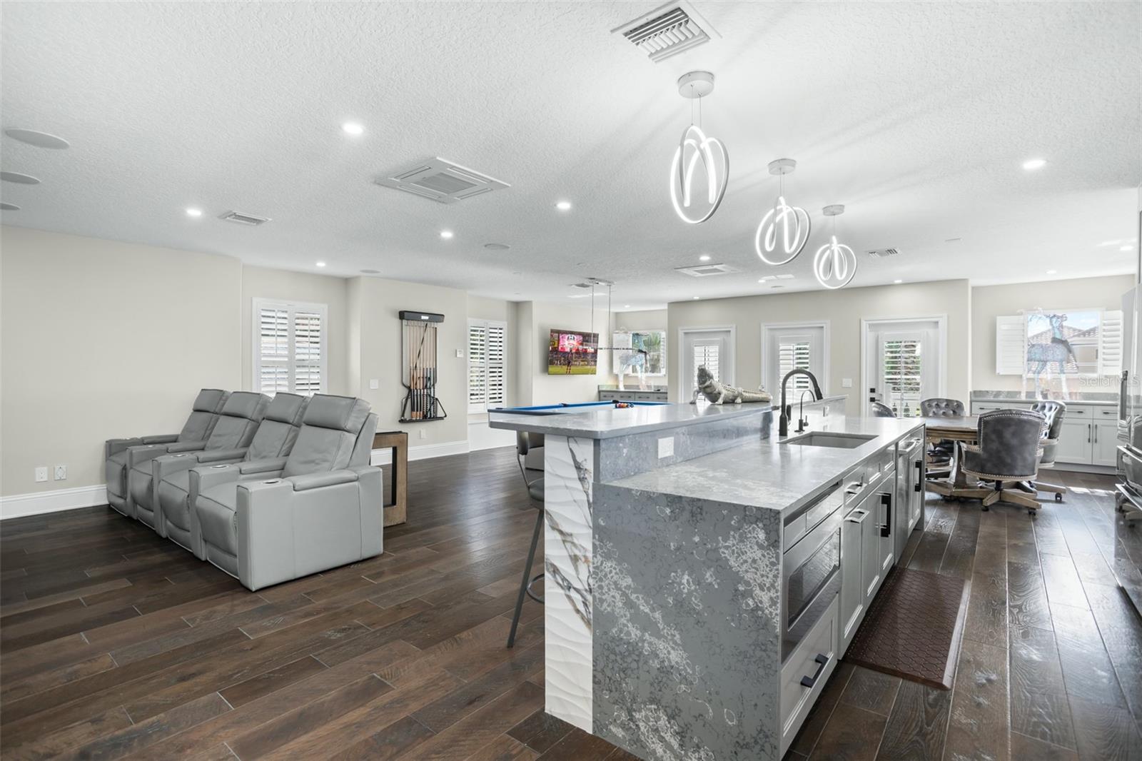 BEM-VINDO a Villatucci, no exclusivo condomínio fechado das Ilhas do Lago Hancock - uma vila moderna de inspiração mediterrânea, onde cada detalhe foi magistralmente reinventado para uma beleza atemporal e elegância contemporânea. Situado na muito procurada Cadeia de Lagos do Lago Hancock, um dos corredores mais desejáveis ao longo da costa sul em meio a um enclave de grandes propriedades à beira do lago construídas sob medida, Villatucci oferece os melhores materiais e artesanato, exalando luxo em cada detalhe. Em seu coração, 7.218 pés quadrados, 6 quartos e 6 banheiros completos, incluindo 2 suítes master completas, Villatucci está idealmente situado em 110 pés de cobiçada fachada costeira arenosa, Villatucci captura as vistas mais amplas do lago. As vistas dramáticas da piscina e do longo lago começam quando você vira a entrada de sua garagem, enquanto a espaçosa sala grande, a cozinha e a área de jantar abertas deslumbram enfaticamente. Estilo de bom gosto e elementos arrojados combinam detalhes mundanos e contemporâneos. A cozinha personalizada, iluminada e iluminada, inclui bancadas de pedra exótica Azul Mediterrâneo, ilhas duplas projetadas para acomodar refeições adicionais, uma despensa grande e dois de todos os eletrodomésticos de aço inoxidável de marca premium que um chef poderia desejar, incluindo geladeiras, fornos, micro-ondas, pias, triturador de lixo e lava-louças. . Os dois banheiros principais incluem piso aquecido, bidês Toto, pias duplas, armários de armazenamento de 96” e um design de sala úmida (o chuveiro e a banheira ficam atrás do vidro, aproveitando um único dreno linear para permitir que a banheira transborde), criando seu próprio spa pessoal. As duas suítes master apresentam algumas das melhores vistas do Lago Hancock em qualquer lugar. Todos os armários, incluindo as duas suítes master, são adornados do chão ao teto com armários personalizados de madeira maciça com portas de vidro. O andar principal tem sua própria lavadora/secadora, um dos 4 conjuntos da casa (2 na lavanderia do andar principal e um no andar de cima). Pisos ricos de madeira de nogueira personalizados estão em todos os quartos e em todo o nível superior. A casa possui 3 bares, incluindo o andar principal, o loft no andar de cima e a sala de jogos com 4 geladeiras adicionais de 24-32”. Existem dois lavabos personalizados, um no nível principal e outro no andar de cima. A grande varanda ao lado da piscina apresenta uma extraordinária cozinha ao ar livre completa com churrasqueira Bull, máquina de gelo e pia, uma generosa área de jantar, tudo exibido pela deslumbrante piscina luminescente. Todo o deck da piscina é revestido em mármore turco de corte natural. Uma bela banheira de piscina e dois armários completam o seu oásis no quintal. A casa e o quintal oferecem vistas deslumbrantes para o lago, incluindo fogos de artifício da Disney todas as noites na varanda da sua sala de jogos. O cais e a casa de barcos personalizados incluem elevadores elétricos para barcos e jet skis, proporcionando a você as melhores oportunidades para aproveitar ao máximo a vida nos lagos da Flórida. O Lago Hancock é uma cadeia de três lagos – um paraíso de águas calmas e cristalinas e quilômetros de costa, aguardando suas aventuras e exploração para passeios de barco, pesca e todos os esportes aquáticos. As conveniências de compras em Hamlin ficam a poucos minutos de distância, e os planos do centro da cidade de Hamlin incluem docas para acesso à água para restaurantes, lojas e um cinema. Tudo a poucos minutos da Disney, do centro de Winter Garden, de Windermere e de todas as atrações mundialmente famosas de Orlando.