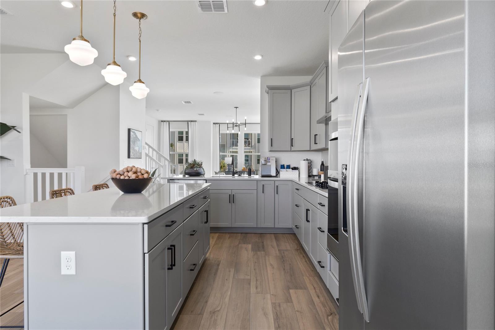 Localização, Localização, Localização - casa nova construída pelo DRB - Modern 3 Camas, 2,5 banheiros + uma sala flexível que pode ser um quarto ou escritório, esta moradia abrange três andares e apresenta uma garagem de 2 carros. A cozinha gourmet inclui uma ilha expansiva, bancadas de quartzo, um backsplash de cerâmica brilhante e utensílios de aço inoxidável. Os interiores acabam com o piso de tábua de madeira de vinil designer, adicionando um toque elegante e contemporâneo. Experimente um estilo de vida excepcional nesta localização privilegiada! A apenas 3 minutos do centro da cidade de Hamilin. Observação: as fotos apresentam móveis de estadiamento, que não estão incluídos na propriedade. (Fotos da casa do modelo)