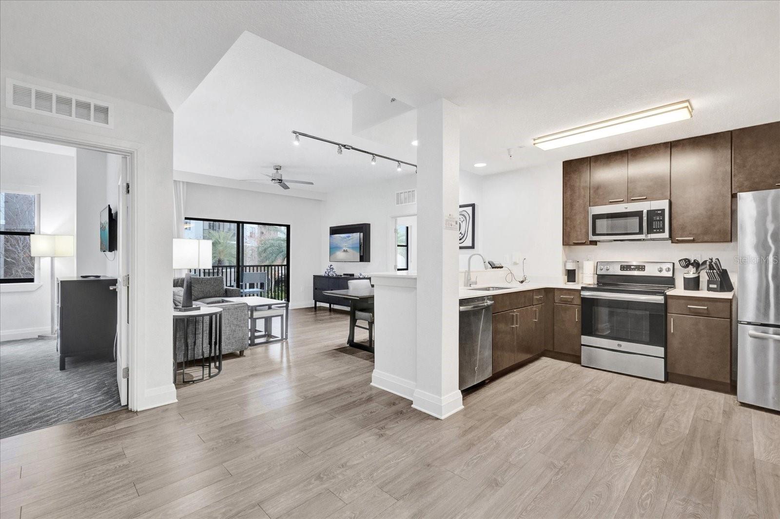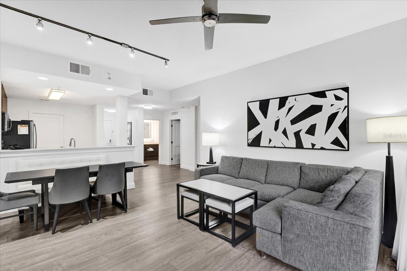 Experimente o melhor em conforto e conveniência no Grove Resort and Spa! Este condomínio de 3 quartos totalmente mobiliado, localizado a poucos minutos das principais atrações da Disney e Orlando, oferece a mistura perfeita de luxo e relaxamento. Situado no segundo andar, este condomínio apresenta uma varanda exibida com uma vista deslumbrante do pátio-uma vantagem rara não encontrada em todas as unidades. Seja assistindo a eventos ao vivo ou simplesmente desfrutando do ambiente tranquilo, essa visão certamente impressionará. A localização é imbatível, duas escadas convenientemente o levam diretamente às piscinas e aquáticas. Passe seus dias desfrutando de escorregadores de água emocionantes, um rio preguiçoso, uma almofada de respingos e um bar e restaurante à beira da piscina. Ou, aprecie o ambiente pacífico do lago Austin no píer de pesca coberto. Com algo para todos, o resort possui uma fliperama, mini-golfe brilho no escuro, um spa de serviço completo, academia, opções de refeições, loja de conveniência e bar à beira da piscina. O condomínio possui uma garagem para maior conveniência e, com o serviço de transporte da Disney, você pode pular facilmente o aborrecimento do estacionamento nos parques. O condomínio está totalmente equipado, basta embalar uma mala e você está pronto para desfrutar. O piso plano aberto com um quarto primário dividido é o favorito entre os visitantes. O piso de vinil, utensílios de aço inoxidável, balcões de granito e móveis neutros aumentam a beleza desta casa. Três das TVs eram novas em 2024. Quando você não consegue aproveitar o condomínio, uma empresa de gerenciamento no local lida com o aluguel do condomínio para você. Não perca a chance de possuir uma fatia do paraíso-livro da sua turnê hoje!