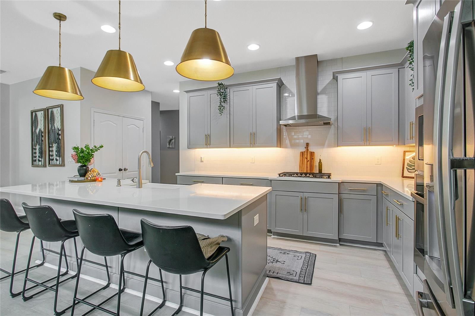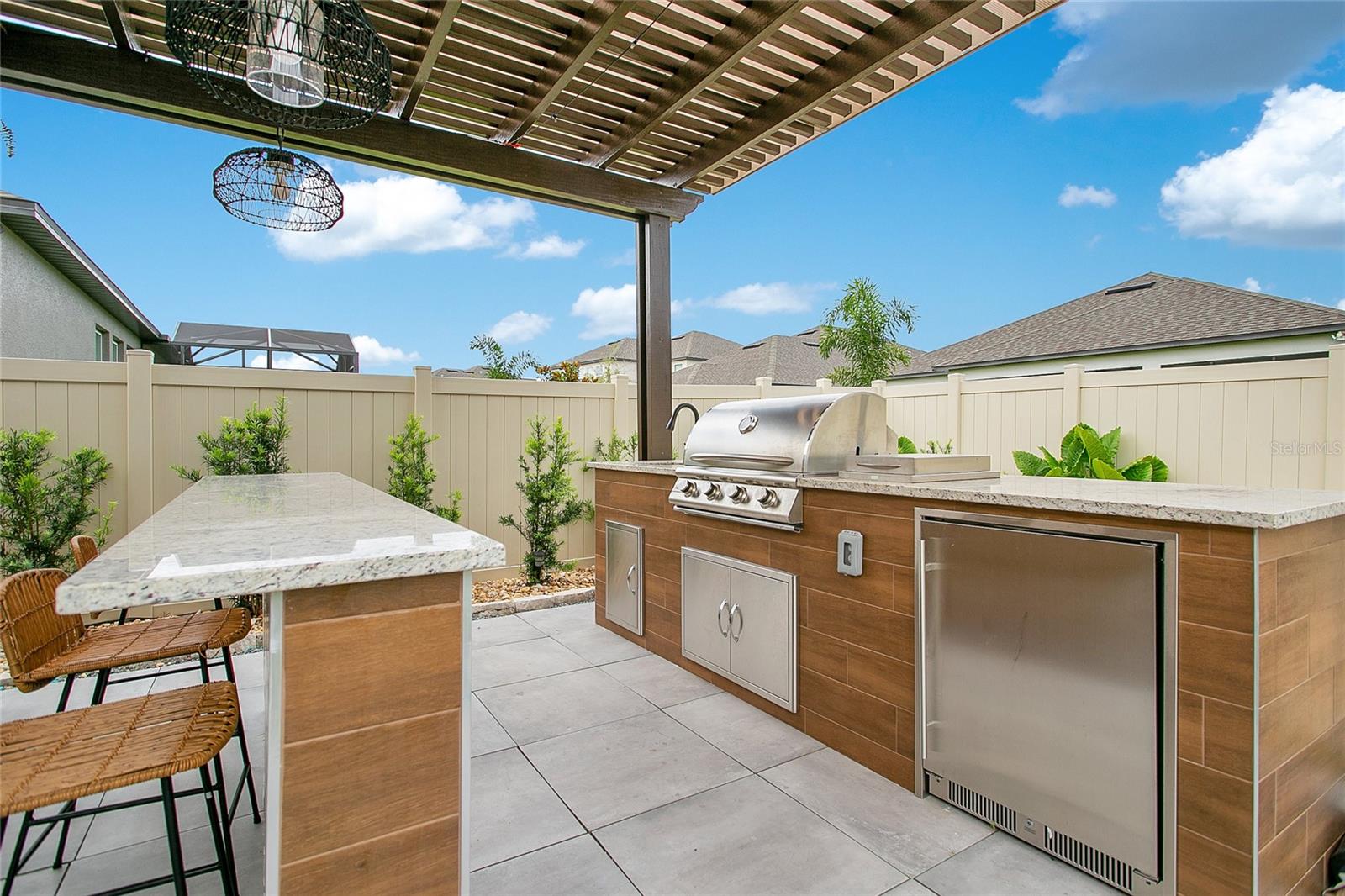 Esta casa de 4 quartos e 2 banheiros no bis, na Comunidade Ovatória, está localizada perto de lojas e restaurantes locais, Hamlin Town Center, Parks Theme, Orange County National Golf, SR429 e a Turnpike da Flórida. O piso plano aberto apresenta tábuas de vinil de luxo com uma grande sala familiar e cozinha com utensílios de aço inoxidável, contra-tops de quartzo, bar de café da manhã e despensa. A expansiva suíte primária tem uma grande caminhada no armário, pias duplas e um chuveiro. O quintal foi transformado em um oásis com uma banheira de jacuzzi, grama artificial, cozinha ao ar livre coberta com grelha, pia e geladeira. Os recursos adicionais incluem uma adorável varanda, garagem de 2 carros e piscina comunitária, playground e academia.