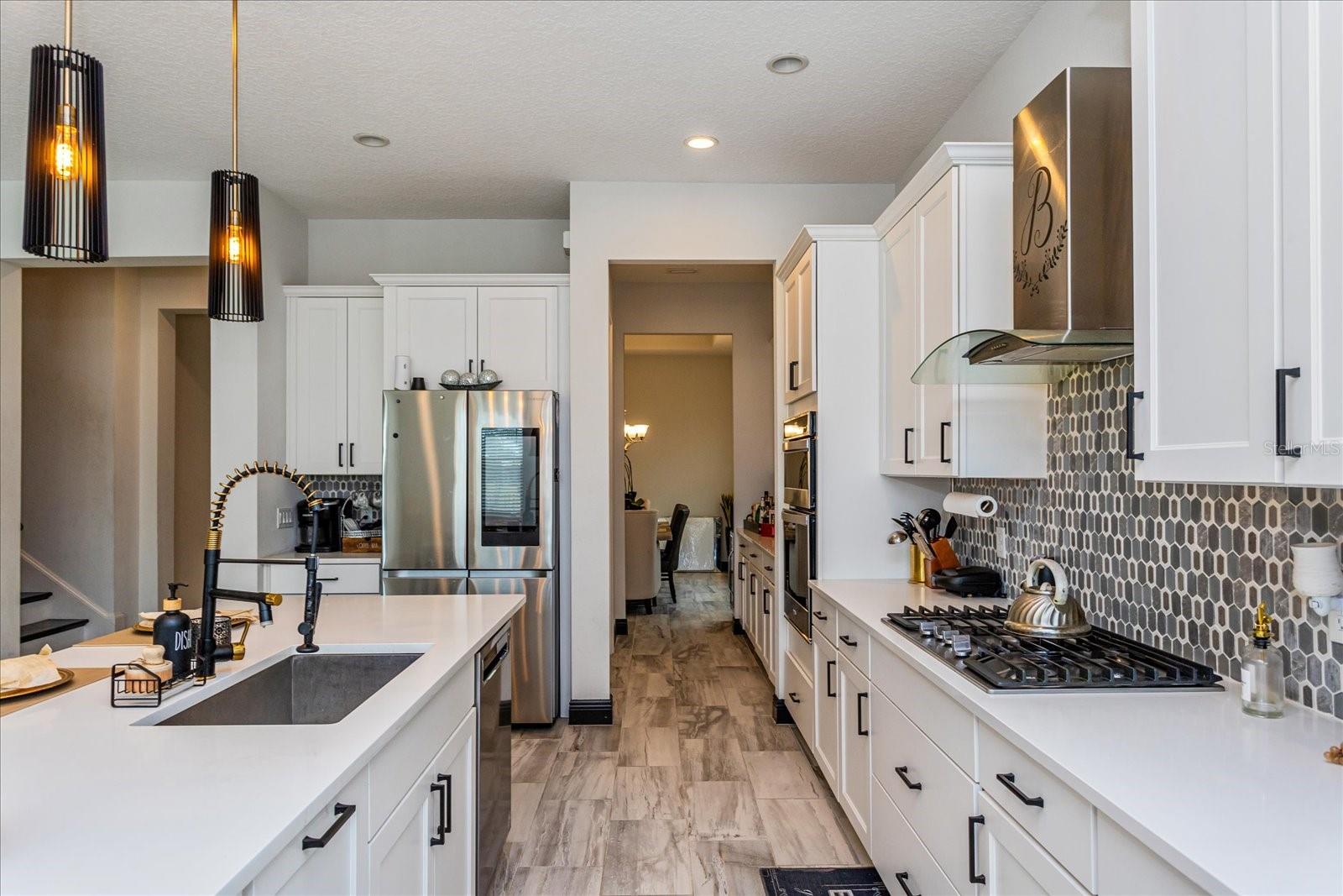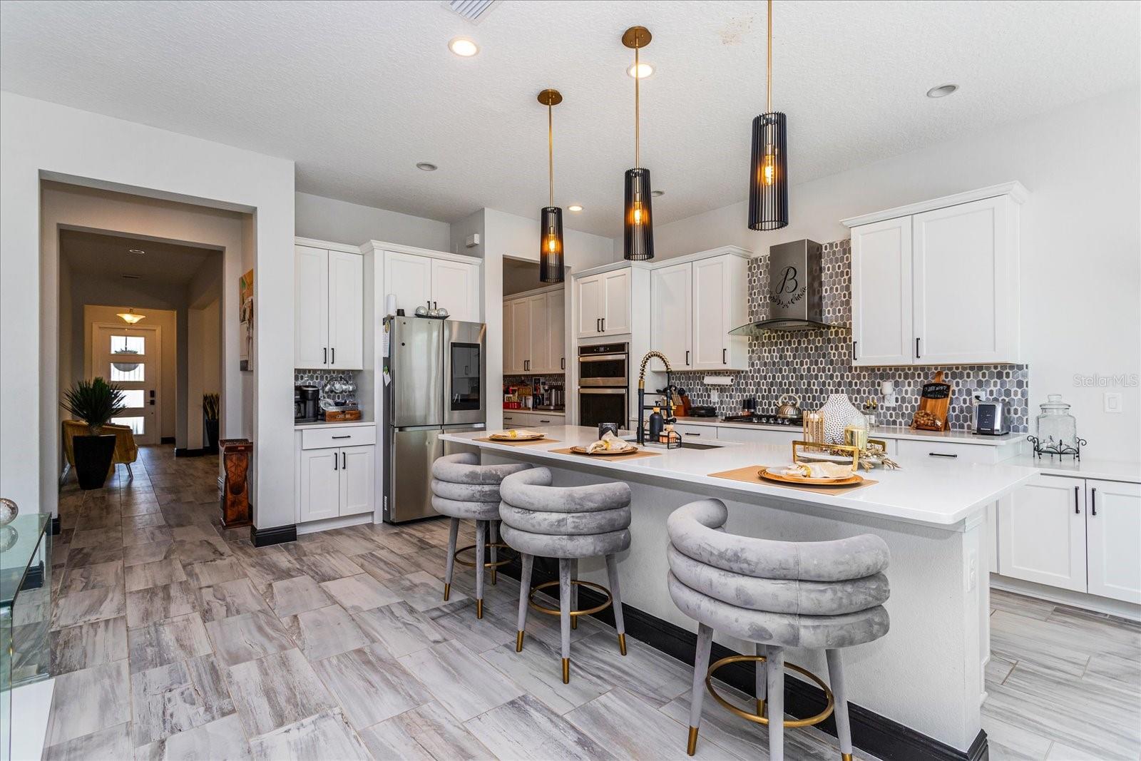 NOVO PREÇO MAIS BAIXO! A casa dos seus sonhos espera por você. Com apenas 3 anos, esta linda casa com piscina Toll Brothers Madeira em um lote premium tem uma ótima planta e uma rara garagem para 3 carros. Grande atratividade com seu elegante alçado de estilo italiano com pedra e estuque e acabamento em telhado de telha. O interior tem pintura nova por toda parte. Suas espaçosas áreas de estar/cozinha/jantar com tetos de 10' e janelas abundantes fazem com que pareça ainda maior do que é. A cozinha totalmente equipada é o sonho de qualquer chef, com ilha de quartzo enorme, fogão a gás e muitos armários atualizados com gavetas e gavetas com fechamento suave para fácil acesso. Uma área de café da manhã iluminada pelo sol fica ao lado da cozinha, com armários ampliados. Uma despensa de mordomo e uma despensa levam a uma área de jantar formal. As grandes portas deslizantes triplas levam a um pátio coberto com tela que dá para a piscina aquecida personalizada e o spa com um pátio expandido de tijolos e pérgula para um espaço de entretenimento definitivo. O som surround é integrado à sala familiar e ao pátio externo. Subindo a elegante escadaria de madeira, o segundo andar se abre para a espaçosa sala de bônus que também serve para separar a suíte principal dos quartos secundários. O quarto principal king-size possui portas francesas que levam a uma varanda com excelente vista para o amplo espaço verde. O elegante banheiro principal inclui 2 pias grandes, banheira de jardim, chuveiro com box de vidro e amplo closet com embutidos personalizados. Dois quartos adicionais compartilham um banheiro jack and jill, e o quarto quarto no andar de cima tem outro banheiro completo. A lavanderia está convenientemente localizada no andar de cima e possui armários, pia, mesa dobrável e tábua de passar roupa embutida. O quinto quarto fica no térreo com banheiro privativo. Esta casa tem muito espaço de armazenamento e foi construída para eficiência energética com seu aquecedor de água sem tanque e janelas de baixa emissividade. O gás natural é utilizado para aquecimento, cozinha e secadora de roupas. Lakeshore Preserve está em uma excelente localização perto da Hwy 429 em Horizon West. Muitas novas lojas, restaurantes e entretenimento, além de 15 minutos das atrações da Disney. A comunidade oferece comodidades em estilo resort com um clube de 4.000 pés quadrados à beira do lago, academia, piscina linda, playgrounds, parque para cães, vôlei de areia e canoas para desfrutar do Lago Panther. Venha aderir ao estilo de vida Lakeshore, que também inclui inúmeras atividades sociais mensais. A taxa HOA inclui manutenção de quintal, 1 giga de internet, TV a cabo.