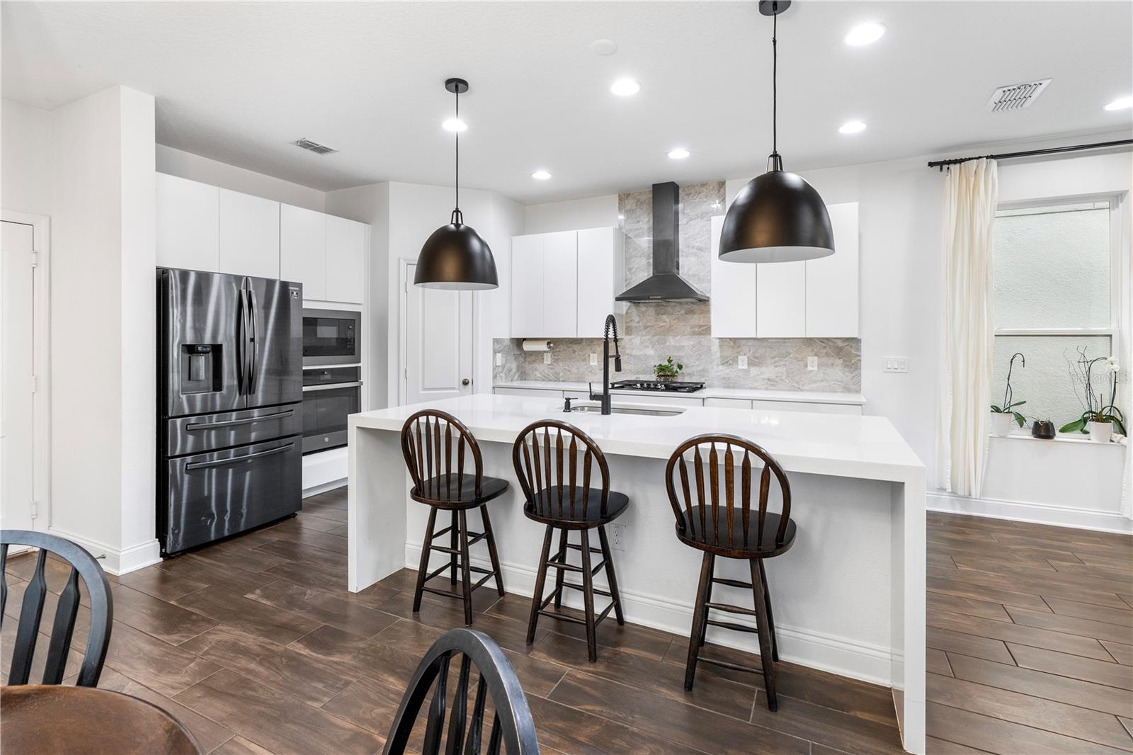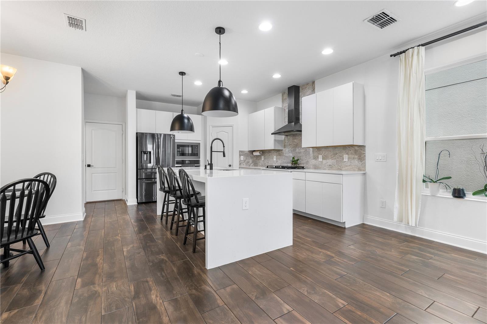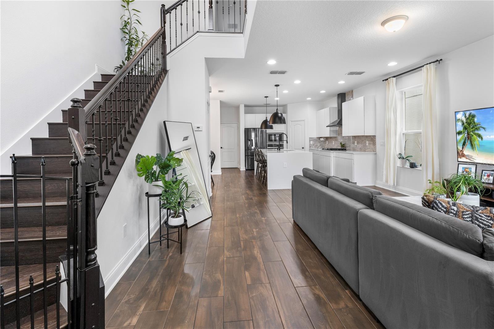 Este deslumbrante 1.774 pés quadrados foi projetado profissionalmente de cima a baixo, cada detalhe parece selecionado e intencional. Entre e você se apaixonará instantaneamente pelo layout de conceito aberto com tetos de altura dupla que tornam o espaço arejado e digno de Insta. A cozinha do chef é de outro nível - pense em uma ilha em cascata (2,5–3 cm), eletrodomésticos elegantes de aço inoxidável (forno, micro-ondas e fogão a gás com exaustor) e toques inteligentes como uma torneira com sensor, gavetas removíveis e uma gaveta de lixo escondida. A iluminação pendente e as luzes embutidas em lata mantêm tudo brilhando perfeitamente para o seu próximo vídeo de culinária TikTok. Sua suíte principal tem teto de luxo puro, iluminação embutida e um banheiro inspirado em spa com box de vidro sem moldura, nicho embutido e espelho de maquiagem glam station. Atualizações inteligentes e funcionais em todos os lugares, holofotes externos com sensor de movimento, perseguições ocultas de fios de TV na sala de estar e no quarto principal e escadas de madeira com uma vibração aberta e moderna. O nível principal todo em azulejo significa uma vida de alto estilo e baixa manutenção. Estacionamento? Você tem garagem coberta para dois carros e espaço para mais três na garagem. A comunidade traz toda a piscina energética do resort, academia de ginástica, parques e vizinhos amigáveis que organizam clubes de caminhada e eventos sazonais. E em termos de localização, fica a minutos imbatíveis da Disney, com vista para o pôr do sol no lago e super perto de Publix, Target, escolas de primeira linha e restaurantes locais. Se você está procurando a combinação perfeita de luxo, conveniência e comunidade, esta é a casa dos seus sonhos, pronta para morar e totalmente aprovada pelo TikTok.