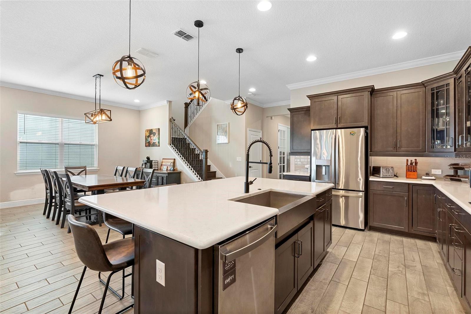 Espaçoso e pronto para morar - preço de venda! Bem-vindo à vida (en)suite! Recém-construído em 2020, este cativante oásis de 2 andares está situado em um bairro muito procurado de Horizon West com BAIXAS TAXAS DE HOA! Uma requintada casa com PISCINA que oferece vistas deslumbrantes do pôr do sol a partir de sua varanda com vista para um lago sereno; o ambiente perfeito para relaxamento e entretenimento. A planta baixa "Grayson" atenciosa e expansiva, com GARAGEM tandem para 3 CARROS, apresenta a suíte Owners principal no primeiro andar com vista para a piscina com teto de bandeja atualizado e um lindo banheiro para proprietários com chuveiro grande. Há um segundo quarto de banho adicional no primeiro andar, perfeito para receber hóspedes ou viver com várias gerações. Ainda no piso principal encontra-se um escritório privado que oferece um espaço tranquilo para trabalhar ou estudar. Suba as escadas, onde há 3 quartos adicionais (2 suítes), todos com closets espaçosos. A versátil área do loft é um ótimo espaço para jogos ou outras atividades. Pegue um pouco de pipoca e vá para a sala bônus de teatro/mídia para assistir seus filmes favoritos. Esta casa tem espaço para todos e tem preço de venda - agende hoje mesmo a sua visita privada!