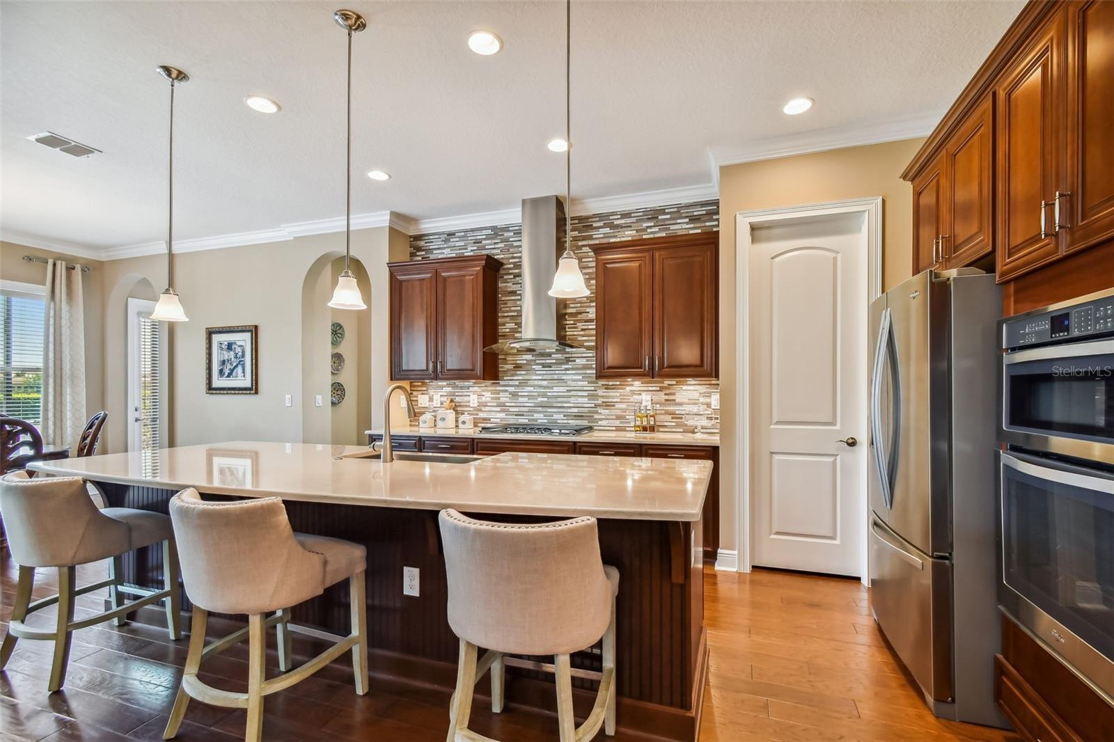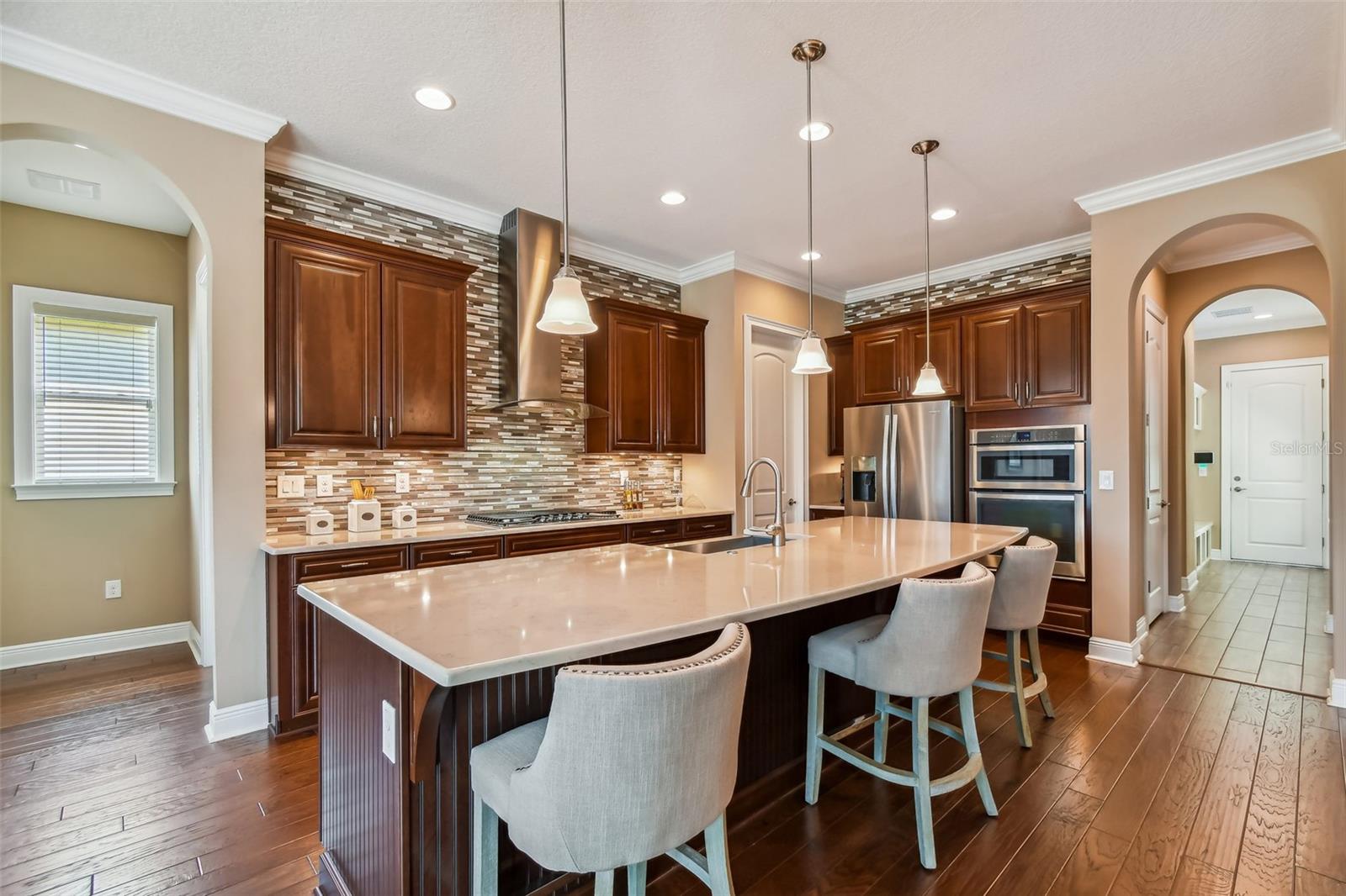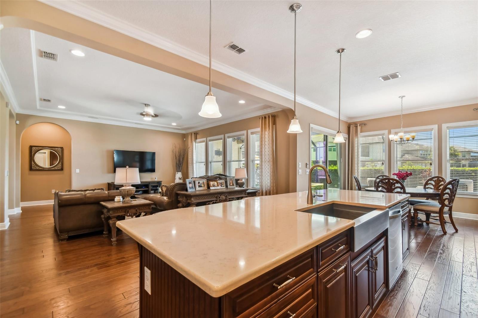 Uma ou mais fotos foram praticamente encenadas. AS NOW DREAM HOME em um lote premium. This spacious 4 bedroom, 4.5 bath home features upgrades galore: upgraded cabinetry throughout, upgraded wood flooring, a gourmet style kitchen boasts farmhouse sink, island with breakfast bar, gas cooktop range, stylish stone backsplash, built-in ovens, abundant raised panel cabinetry w/crown molding and walk-in pantry, quartz and granite countertops throughout, luxury lighting, pool bath with shower, epoxy garage floor, Isolamento de parede externa de espuma, som surround no teto, sistema de alarme com fio, 8 sistema de segurança externa da câmera, paisagismo/irrigação atualizada, aquecedor de água sem tanque de gás, uma garagem de 3 carros e muito mais! Um pátio privado leva à sua porta da frente. Ao entrar em casa, você é recebido por um conceito grande e aberto, completo com uma sala de jantar formal, área de estar principal, cozinha de comer e recanto do café da manhã. Esta casa possui mais de 30 janelas para inundar a casa com luz natural. A planta baixa tem quartos de plano dividido. A suíte master apresenta um banheiro principal amplo com vaidade dupla, bancada de chuveiro, banheira de imersão e um grande armário! Retire -se para a sua Lanai coberta e aprecie seu lindo oásis de quintal que é exibido com uma piscina e spa aquecidos. A casa não é esquecida e apoia para uma grande lagoa de retenção a seco, permitindo a paz e o silêncio. As comodidades da comunidade incluem um clube, piscina em estilo resort, academia, área de lounge e espaço de escritório, trilha e playground, todos ao lado de Johns Lake. Waterside está situado a menos de três quilômetros de distância do histórico distrito do centro de Winter Garden, vivo com estúdios de arte, teatro ao vivo e uma grande variedade de restaurantes que flanqueiam a trilha Orange Orange. As movimentadas lojas do Winter Garden Village também estão por perto, oferecendo uma variedade de opções de varejo, entretenimento e refeições. Ideal para todos, a Waterside está quase com as escolas altamente cotadas e no novo campus do Hospital da Flórida. O Daniel Webster Western Beltway (S.R. 429) e o Turnpike da Flórida se conectam às principais rodovias, a apenas 22 quilômetros do centro de Orlando, a uma curta distância de carro da Disneyworld, Golf, University, e atividades de classe mundial, tornando este o local ideal para os passageiros e horas intermináveis de entretenimento de fim de semana, esportes e atividades culturais.