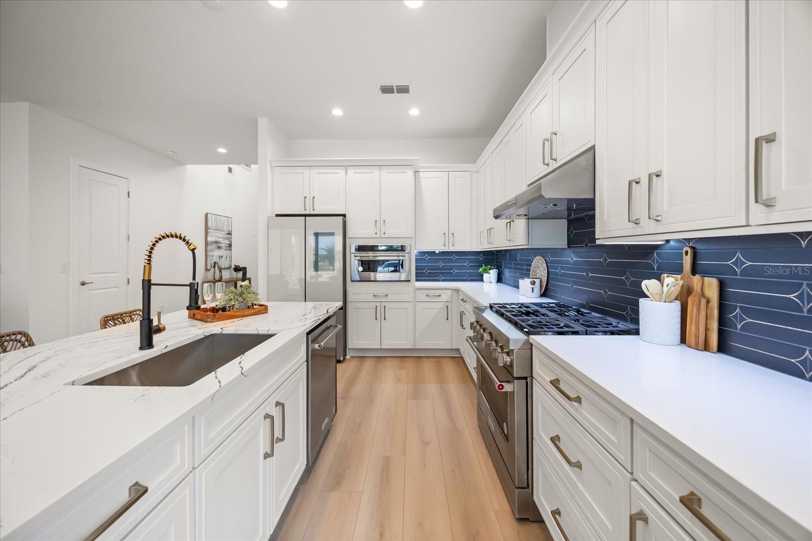 Uma ou mais fotos foram virtualmente encenadas. NOVO PREÇO nesta NOVA e luxuosa casa de 5 quartos/3,5 banheiros, pronta para morar, construída pela Toll Brothers, a construtora de casas de luxo da América. Localizada na bela comunidade de Westhaven em Ovation - parte da procurada área Horizon West de Winter Garden - a casa fica em um terreno de esquina de um quarto de acre adjacente ao futuro clube/centro de fitness com piscina em estilo resort. Abrangendo 3.256 SF, esta casa foi cuidadosamente projetada e atualizada com bom gosto para encantar todos na família, começando com um hall de entrada de 20 pés de dois andares. A deslumbrante cozinha gourmet é o sonho de qualquer chef, totalmente equipada com eletrodomésticos de última geração, ampla despensa, incrível acabamento em azulejos e madeira e muito espaço no balcão para entreter em um ambiente bem equipado. A grande sala possui uma luxuosa parede de azulejos do chão ao teto, uma bela lareira, conexões de som surround e se abre para uma enorme varanda coberta 527-SF através de uma porta deslizante de grandes dimensões com 3 painéis de vidro. Convenientemente localizada no primeiro andar, você encontrará a grande suíte do proprietário com um banheiro tipo spa com azulejos impressionantes, uma moderna banheira independente, pias duplas e um grande closet. Uma escada moderna e elegante leva você aos amplos quartos secundários e ao amplo loft, perfeito para filmes e/ou noites de jogos para diversão de toda a família. Não espere; venha ver esta casa nova e nunca habitada hoje, e você não ficará desapontado!