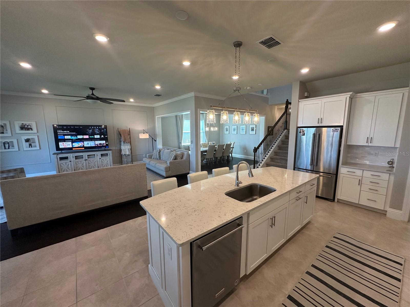 Esta maravilhosa casa da família de 6 quartos está localizada no condomínio fechado da Lakeview Reserve - uma das 14 propriedades diretas à beira do lago com acesso à água à cadeia de Johns Lake na comunidade. A casa se beneficia de inúmeras atualizações desde o novo, incluindo tetos divididos, painéis falsos e teto de bandeja com embutido, além de trilhos de cadeira e molduras de coroa adicionadas ao primeiro andar e pisos de madeira laminados adicionados ao escritório, área de estar e jantar. O Lanai é exibido e a casa possui painéis solares alugados transferíveis. As áreas de estar têm um piso plano aberto brilhante e arejado, com vista para o lago de quase todos os quartos da casa. No andar de cima, a propriedade possui duas áreas de bônus, um grande loft e uma área menor em zoneada como uma sala de mídia com 5 quartos e a lavanderia que lidera nesta área. Não atrase a visualização precoce para esta grande propriedade à beira -mar.