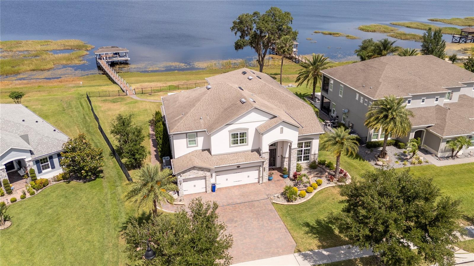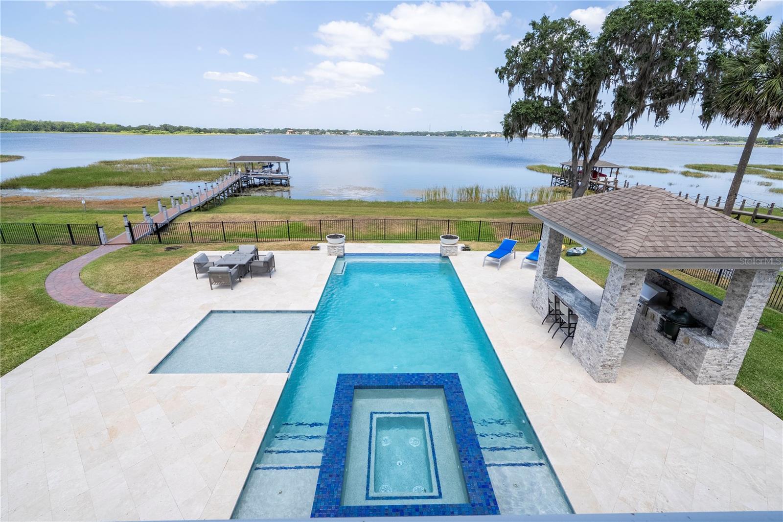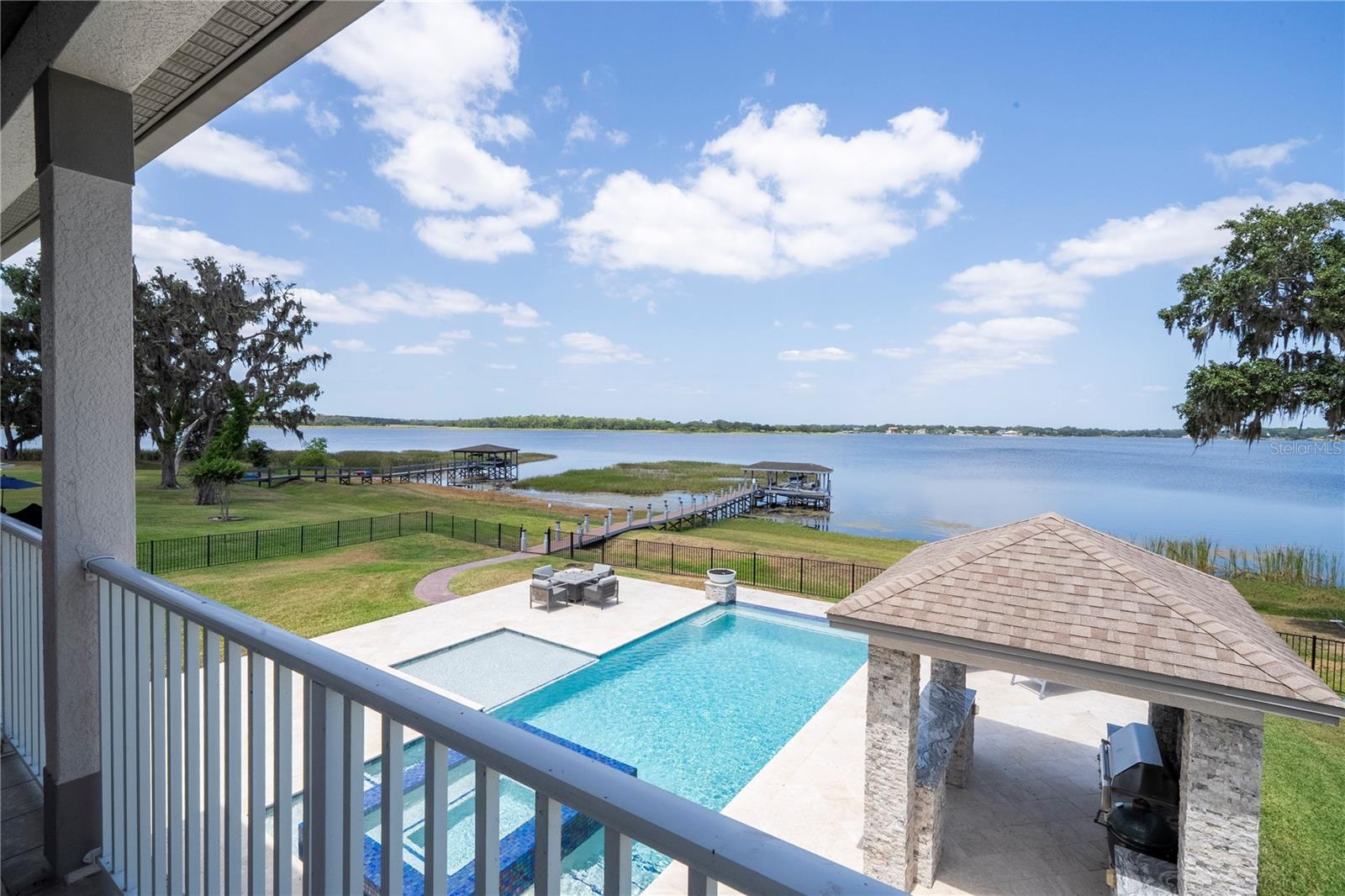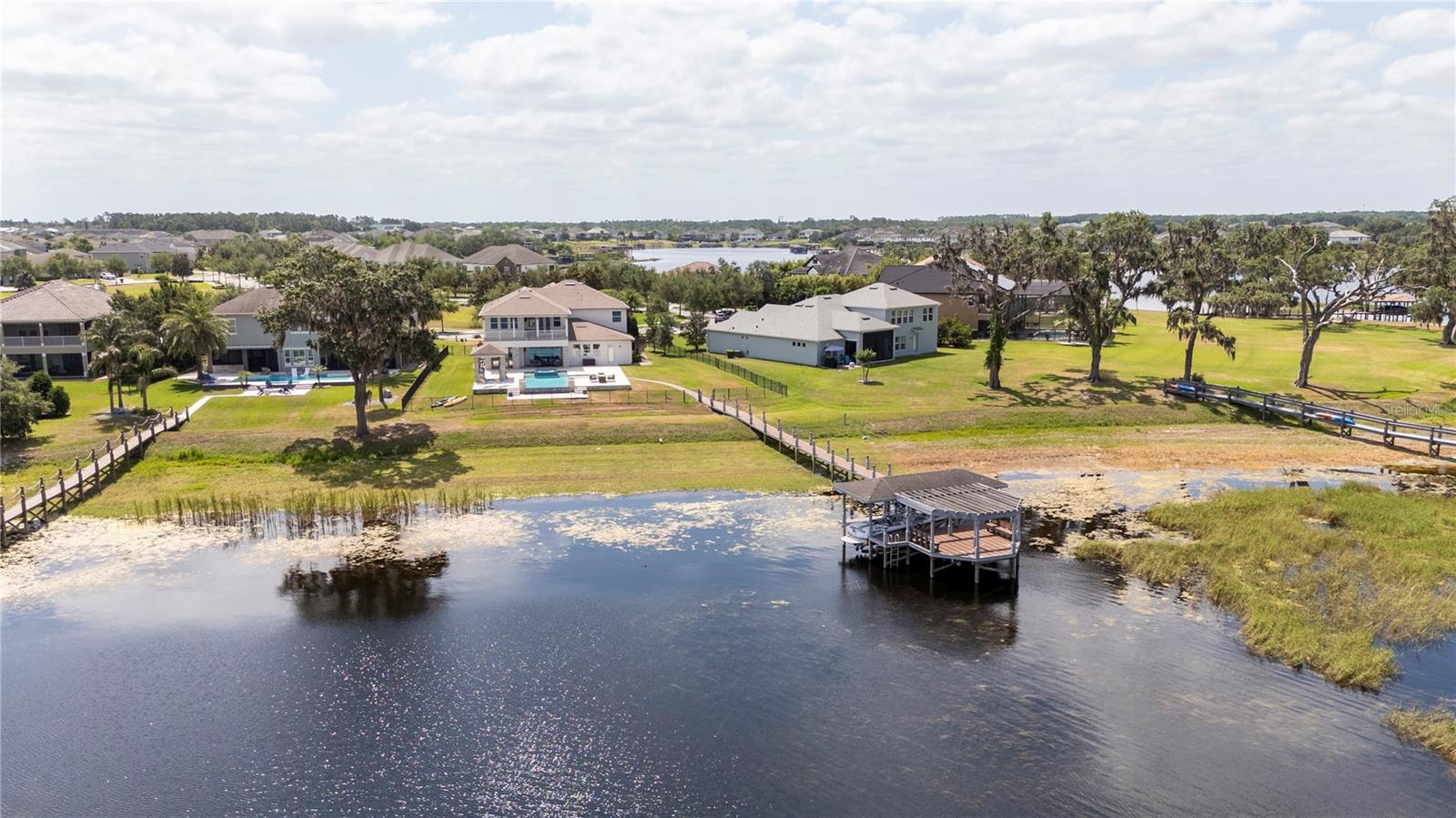 À beira do lago no lago Skable com doca de barco particular, elevador de barco e teleférico. Sunsets bonitos todas as noites ao longo do lago Johns. Esta casa possui 5 quartos, 6 banheiros, 2 meio banheiros, além de um escritório, sala de bônus e teatro à prova de som personalizado, com uma tela de 110 polegadas e cadeiras reclináveis. A costa da casa é de 135 pés. O lago Johns tem mais de 2.400 acres e abrange dois municípios. Espaçosa cozinha moderna com geladeira subzero, fabricante de gelo, forno de convecção dupla, armários atualizados e muito mais. A cozinha se abre para a sala da família, que possui uma lareira elétrica personalizada para o ambiente o ano todo., Draperias de controle remoto personalizadas; som surround e portas deslizantes empilháveis para a área adjacente da piscina. Relaxe em sua Lanai com vistas à beira do lago, telas de energia com vista para a piscina infinita de água salgada e spa. Grande área da piscina com 2 tigelas de fogo e 10 x 10 convés de natação. A cozinha de verão embutida em ovo verde, grelha a gás ao ar livre de 42 ", geladeira, fabricante de gelo, área de bar, TV externa e muito mais para entretenimento depois de um dia no lago. A doca de barco está no topo da linha com o deck resistente ao clima e o elevador de barcos cobertos e o banheiro principal. No térreo, a área de estar principal; Suite, Garagem de 3 carros, pisos epóxi, armários de trabalho personalizados. Lojas, restaurantes e pontos noturnos.