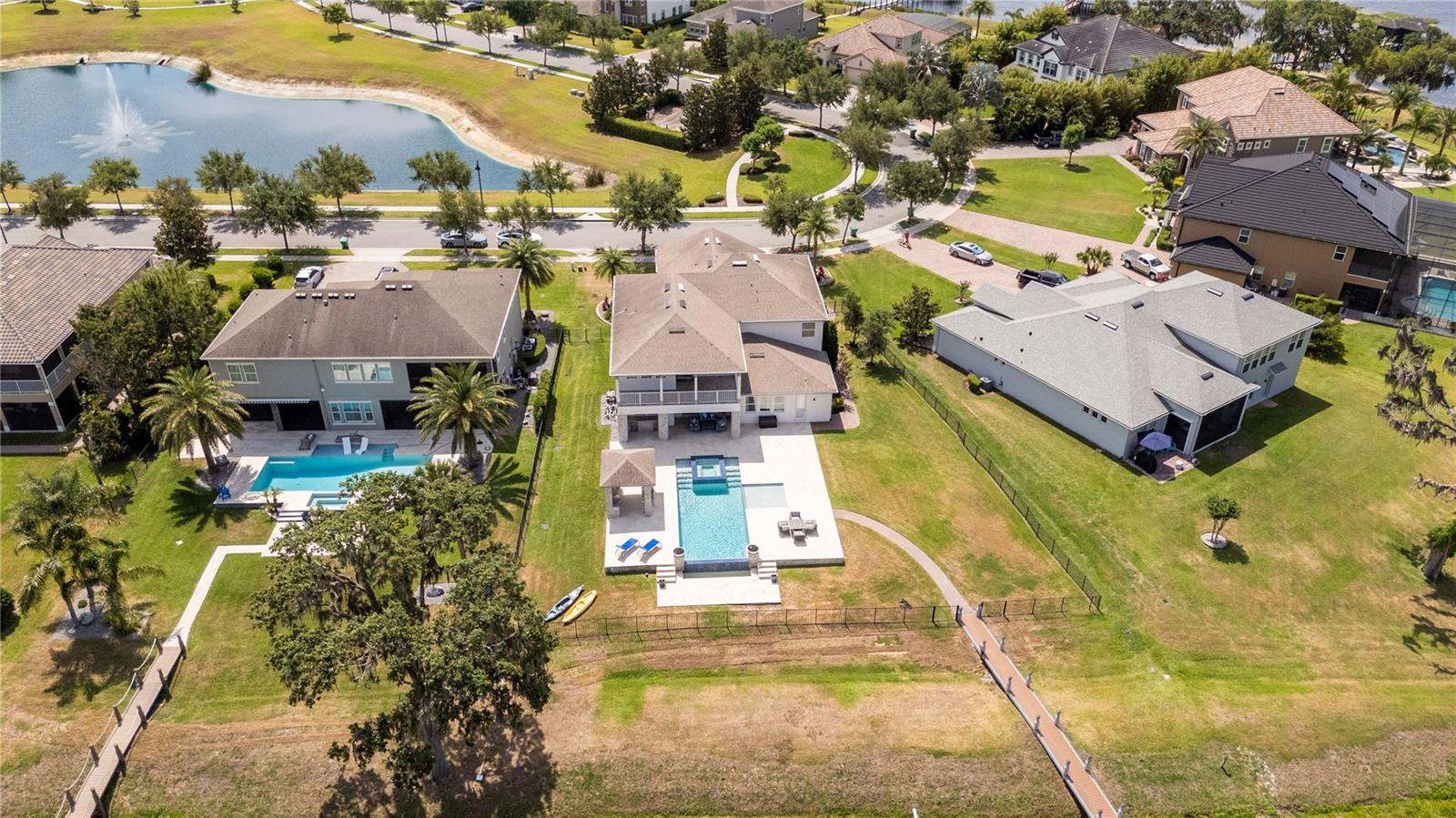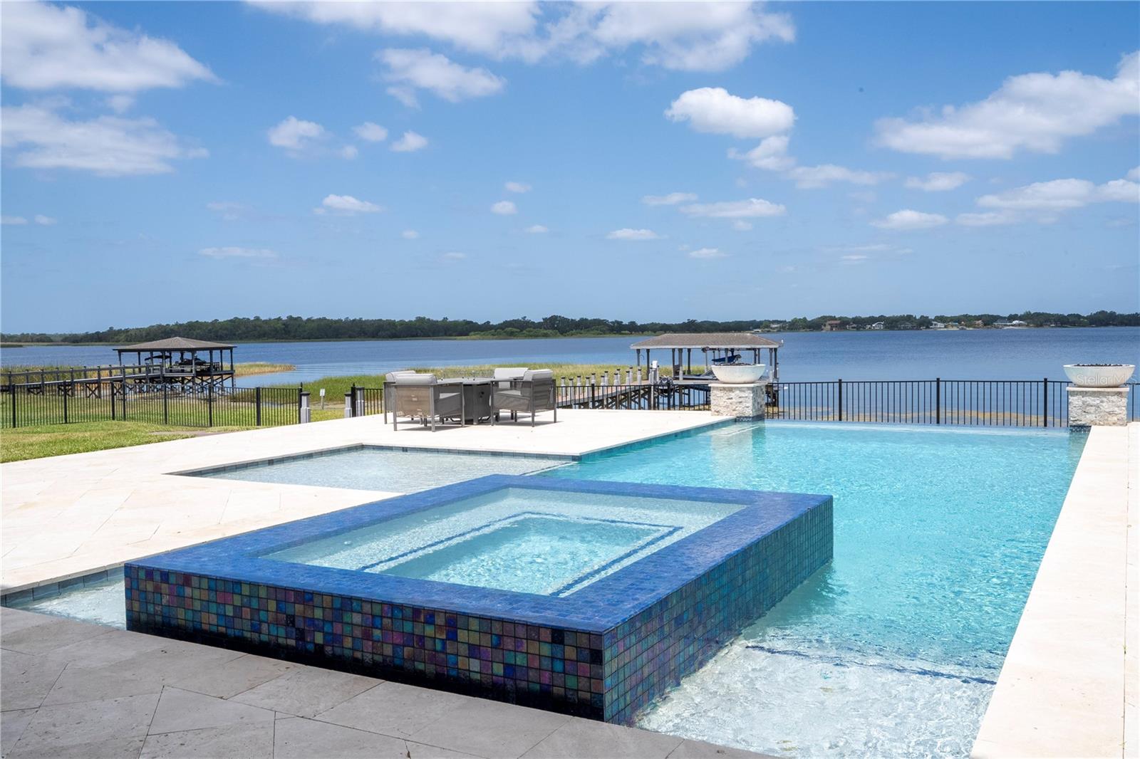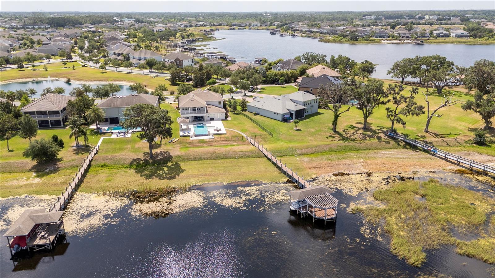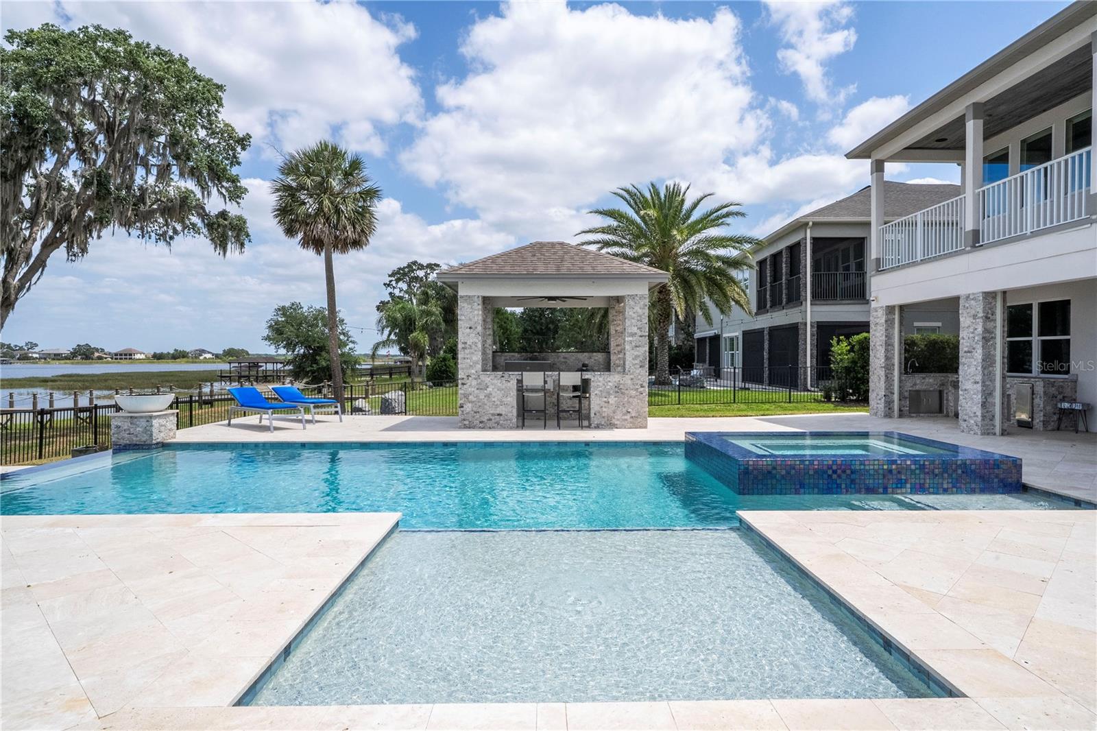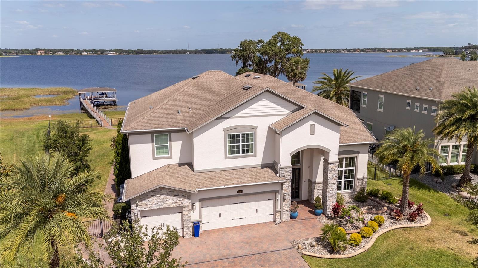 À beira do lago no lago Skable com doca de barco particular, elevador de barco e teleférico. Sunsets bonitos todas as noites ao longo do lago Johns. Esta casa possui 5 quartos, 6 banheiros, 2 meio banheiros, além de um escritório, sala de bônus e teatro à prova de som personalizado, com uma tela de 110 polegadas e cadeiras reclináveis. A costa da casa é de 135 pés. O lago Johns tem mais de 2.400 acres e abrange dois municípios. Espaçosa cozinha moderna com geladeira subzero, fabricante de gelo, forno de convecção dupla, armários atualizados e muito mais. A cozinha se abre para a sala da família, que possui uma lareira elétrica personalizada para o ambiente o ano todo., Draperias de controle remoto personalizadas; som surround e portas deslizantes empilháveis para a área adjacente da piscina. Relaxe em sua Lanai com vistas à beira do lago, telas de energia com vista para a piscina infinita de água salgada e spa. Grande área da piscina com 2 tigelas de fogo e 10 x 10 convés de natação. A cozinha de verão embutida em ovo verde, grelha a gás ao ar livre de 42 ", geladeira, fabricante de gelo, área de bar, TV externa e muito mais para entretenimento depois de um dia no lago. A doca de barco está no topo da linha com o deck resistente ao clima e o elevador de barcos cobertos e o banheiro principal. No térreo, a área de estar principal; Suite, Garagem de 3 carros, pisos epóxi, armários de trabalho personalizados. Lojas, restaurantes e pontos noturnos.