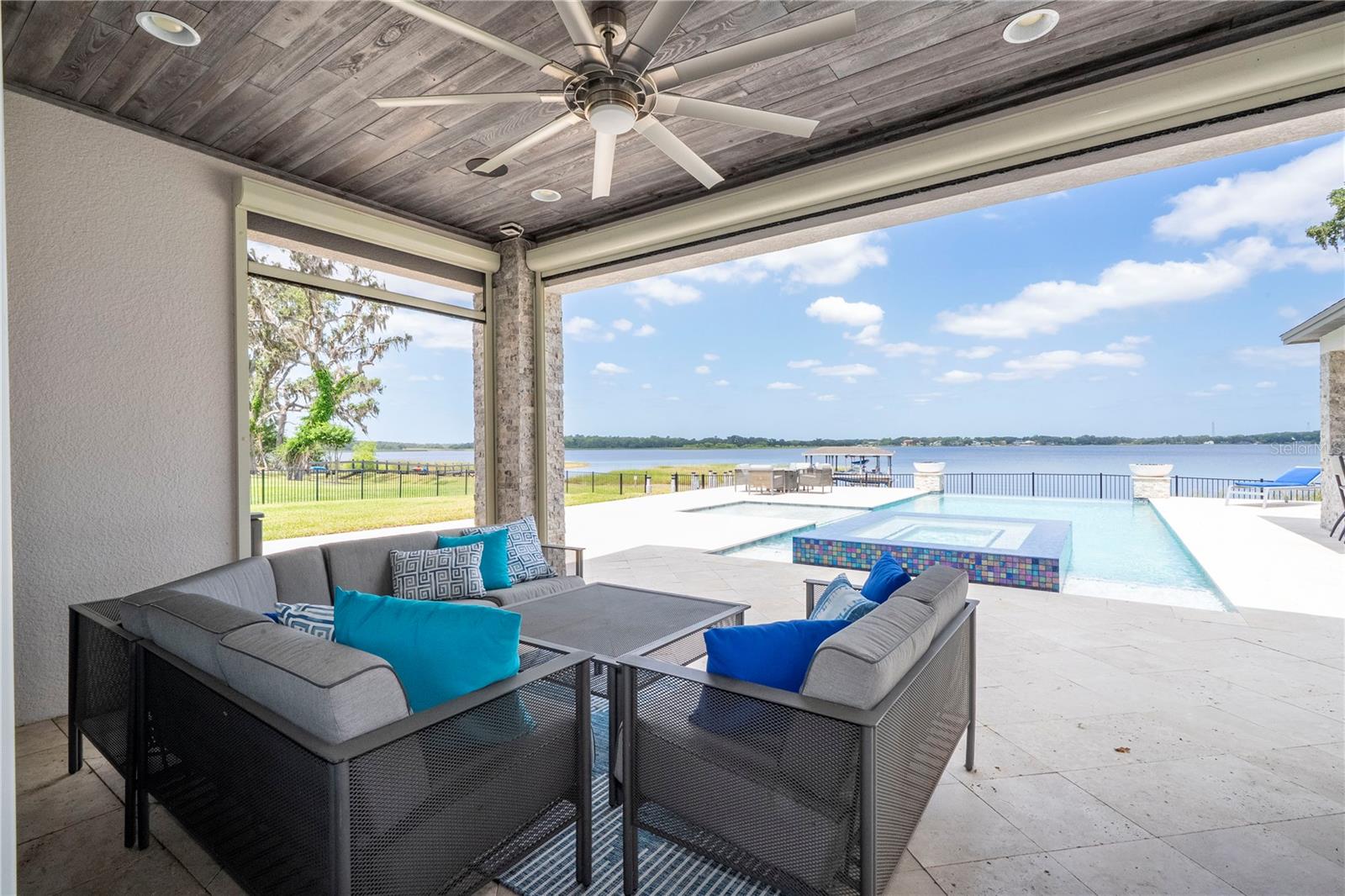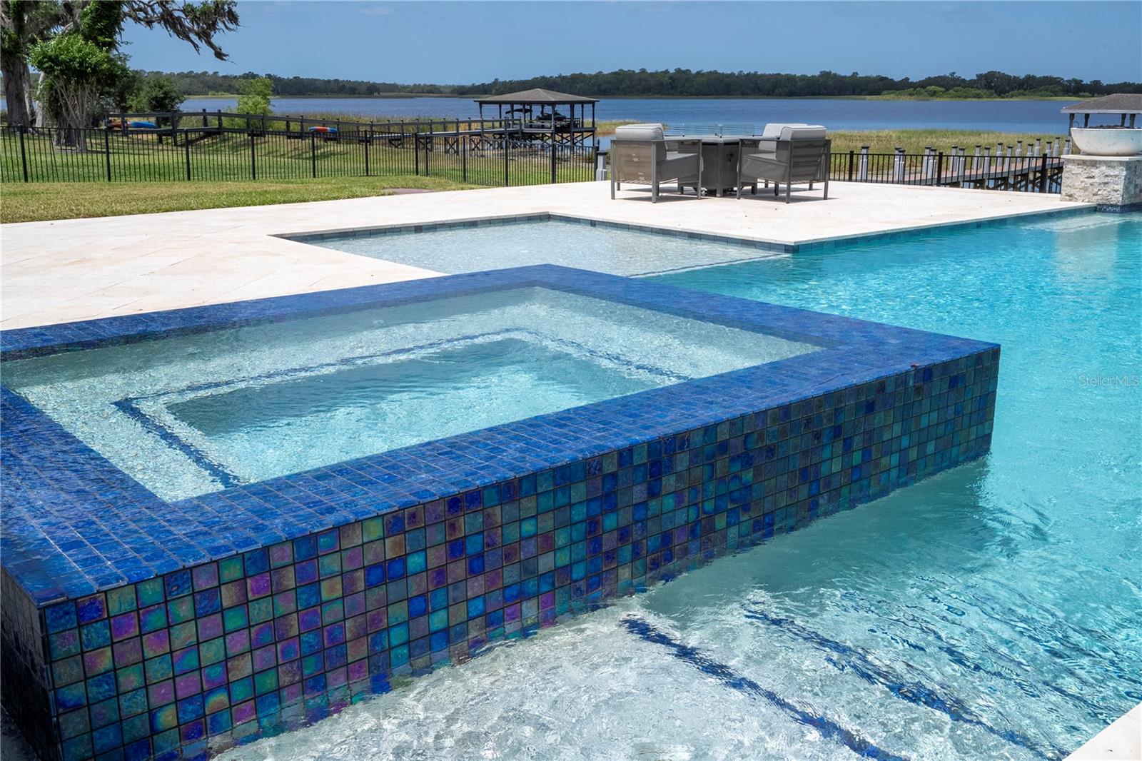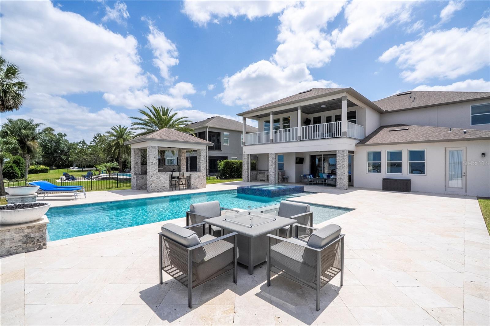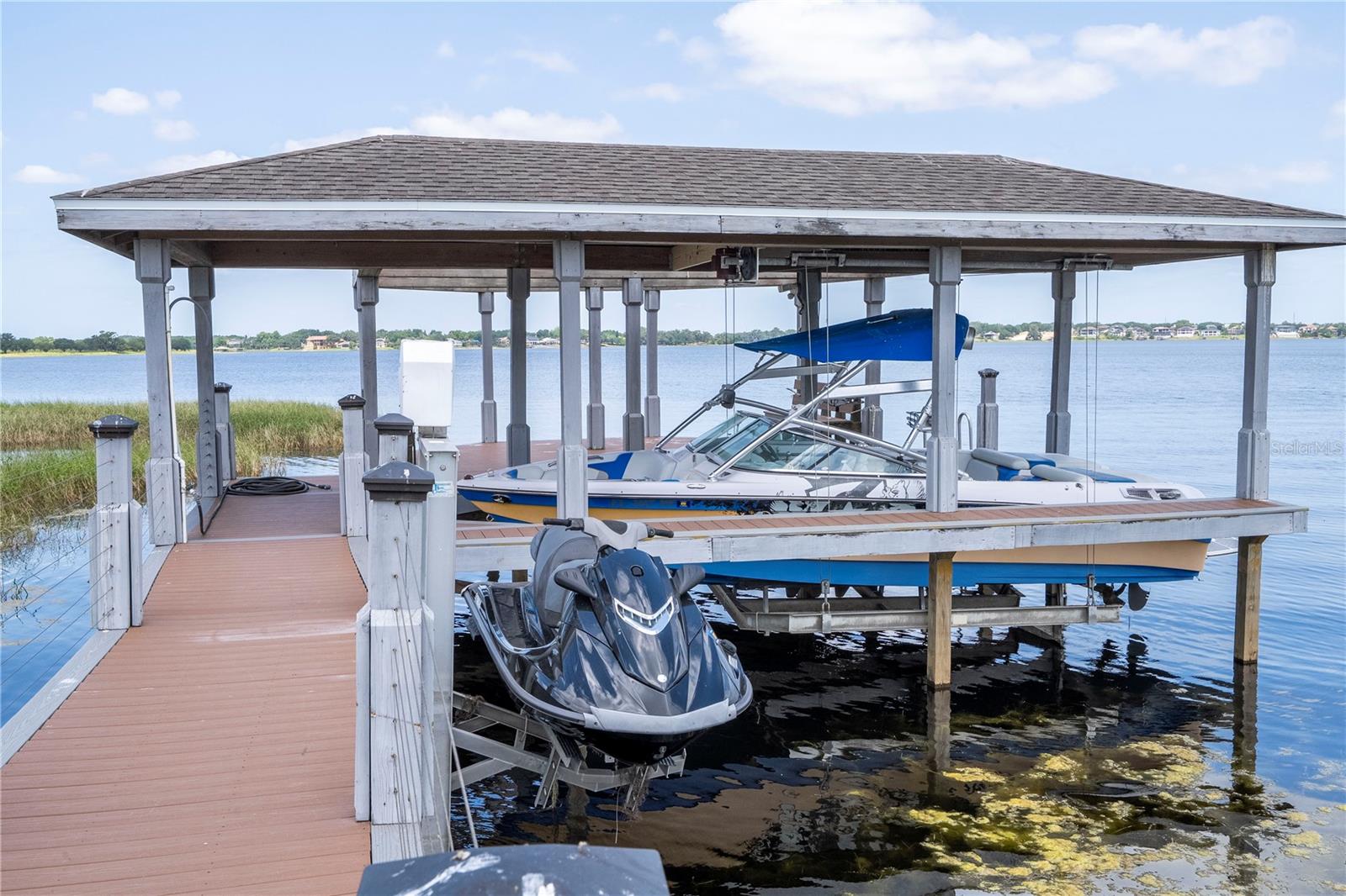 À beira do lago no lago Skable com doca de barco particular, elevador de barco e teleférico. Sunsets bonitos todas as noites ao longo do lago Johns. Esta casa possui 5 quartos, 6 banheiros, 2 meio banheiros, além de um escritório, sala de bônus e teatro à prova de som personalizado, com uma tela de 110 polegadas e cadeiras reclináveis. A costa da casa é de 135 pés. O lago Johns tem mais de 2.400 acres e abrange dois municípios. Espaçosa cozinha moderna com geladeira subzero, fabricante de gelo, forno de convecção dupla, armários atualizados e muito mais. A cozinha se abre para a sala da família, que possui uma lareira elétrica personalizada para o ambiente o ano todo., Draperias de controle remoto personalizadas; som surround e portas deslizantes empilháveis para a área adjacente da piscina. Relaxe em sua Lanai com vistas à beira do lago, telas de energia com vista para a piscina infinita de água salgada e spa. Grande área da piscina com 2 tigelas de fogo e 10 x 10 convés de natação. A cozinha de verão embutida em ovo verde, grelha a gás ao ar livre de 42 ", geladeira, fabricante de gelo, área de bar, TV externa e muito mais para entretenimento depois de um dia no lago. A doca de barco está no topo da linha com o deck resistente ao clima e o elevador de barcos cobertos e o banheiro principal. No térreo, a área de estar principal; Suite, Garagem de 3 carros, pisos epóxi, armários de trabalho personalizados. Lojas, restaurantes e pontos noturnos.