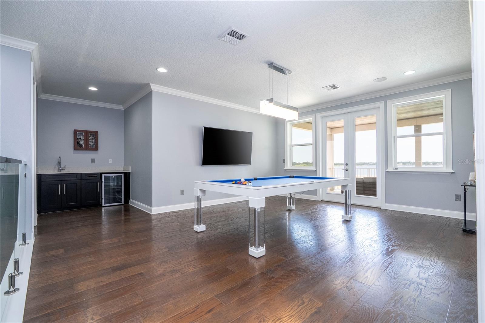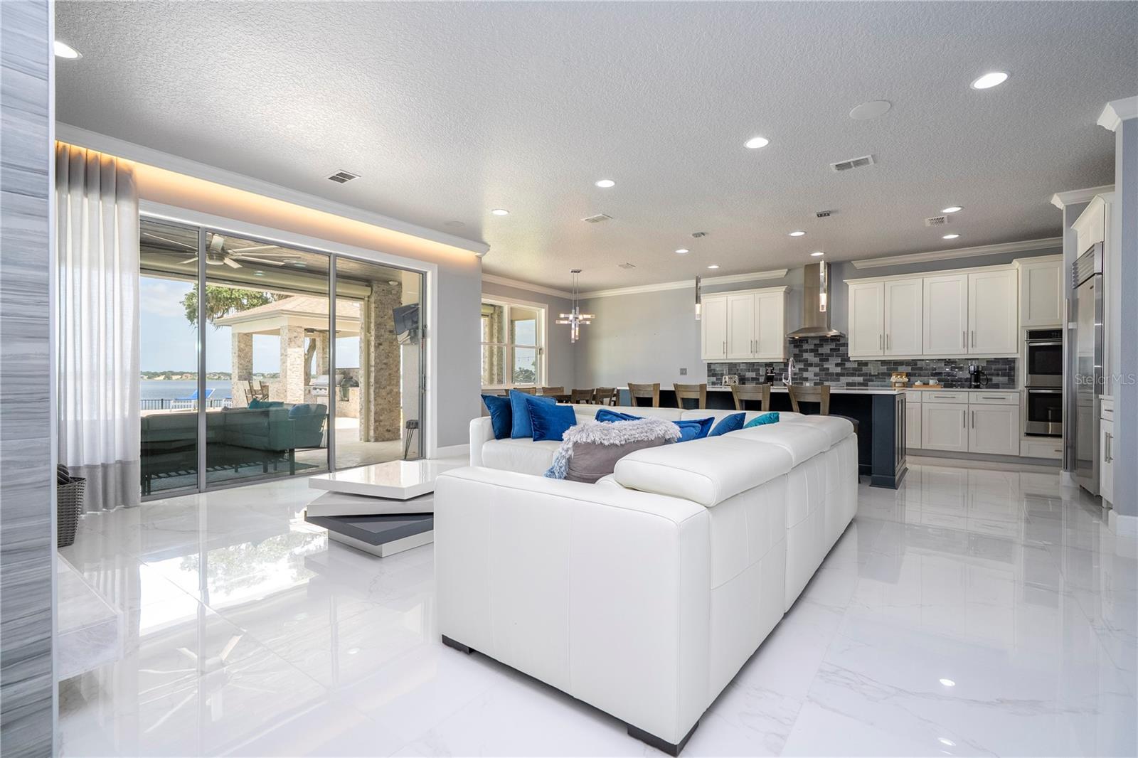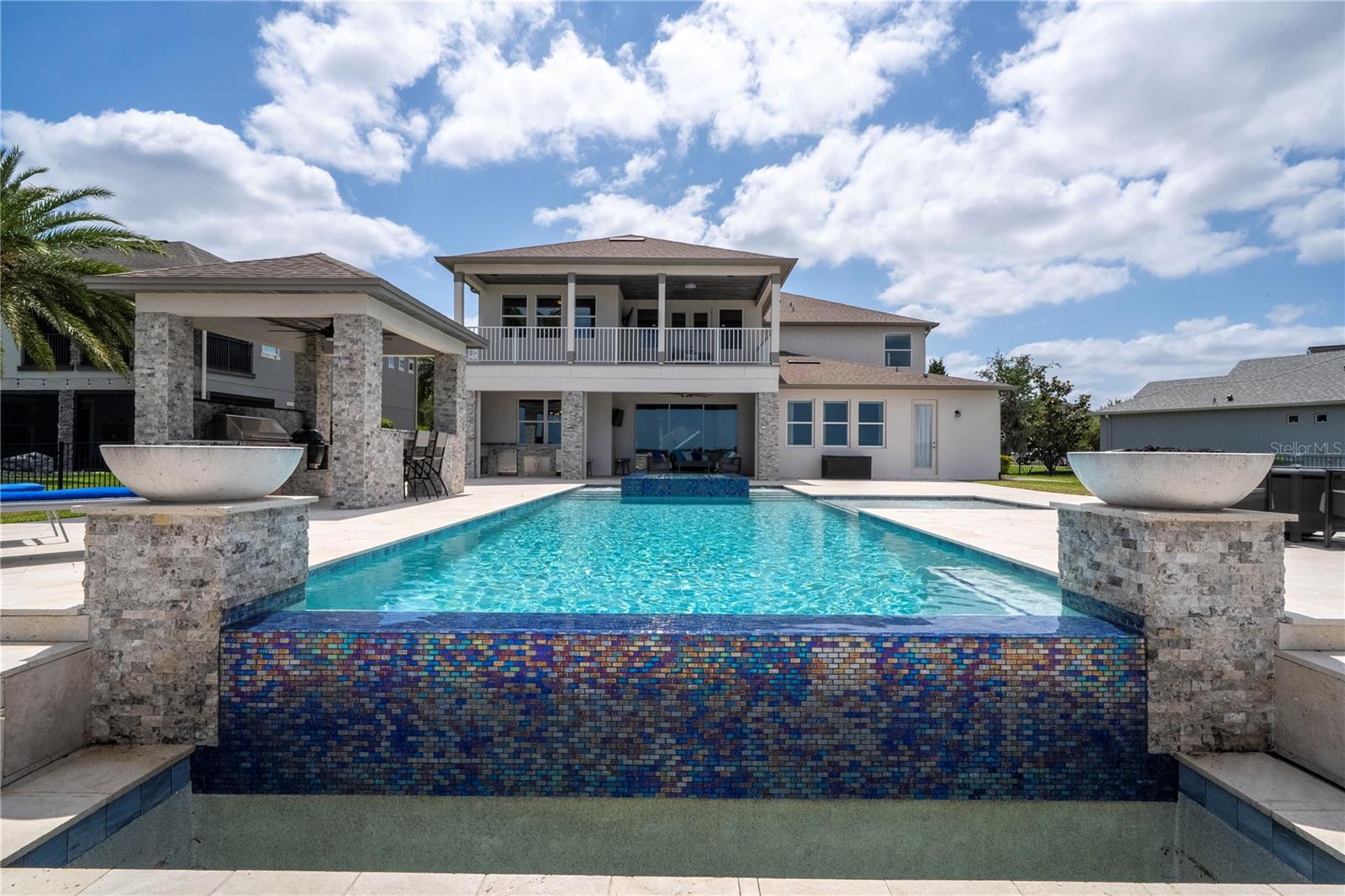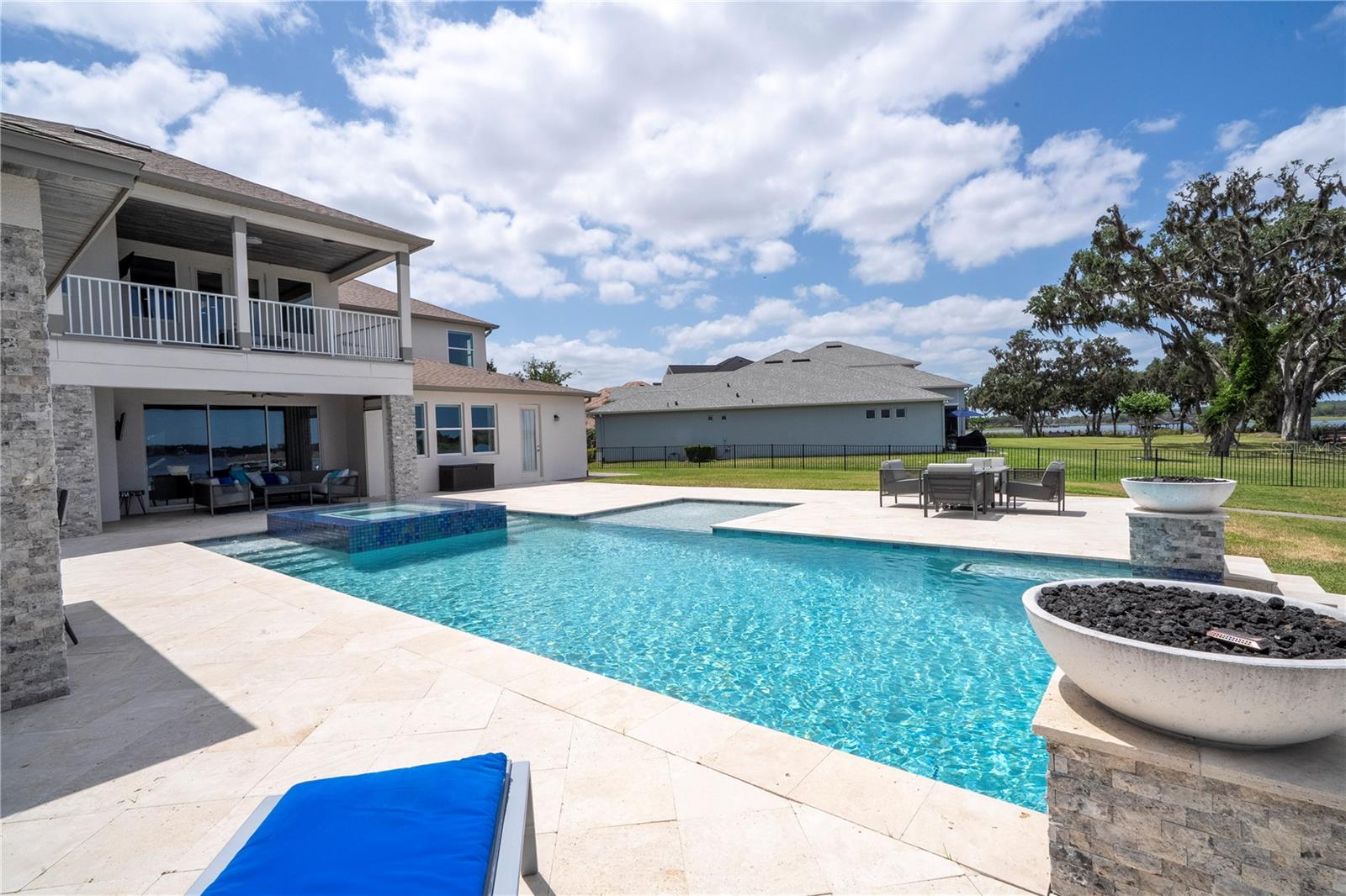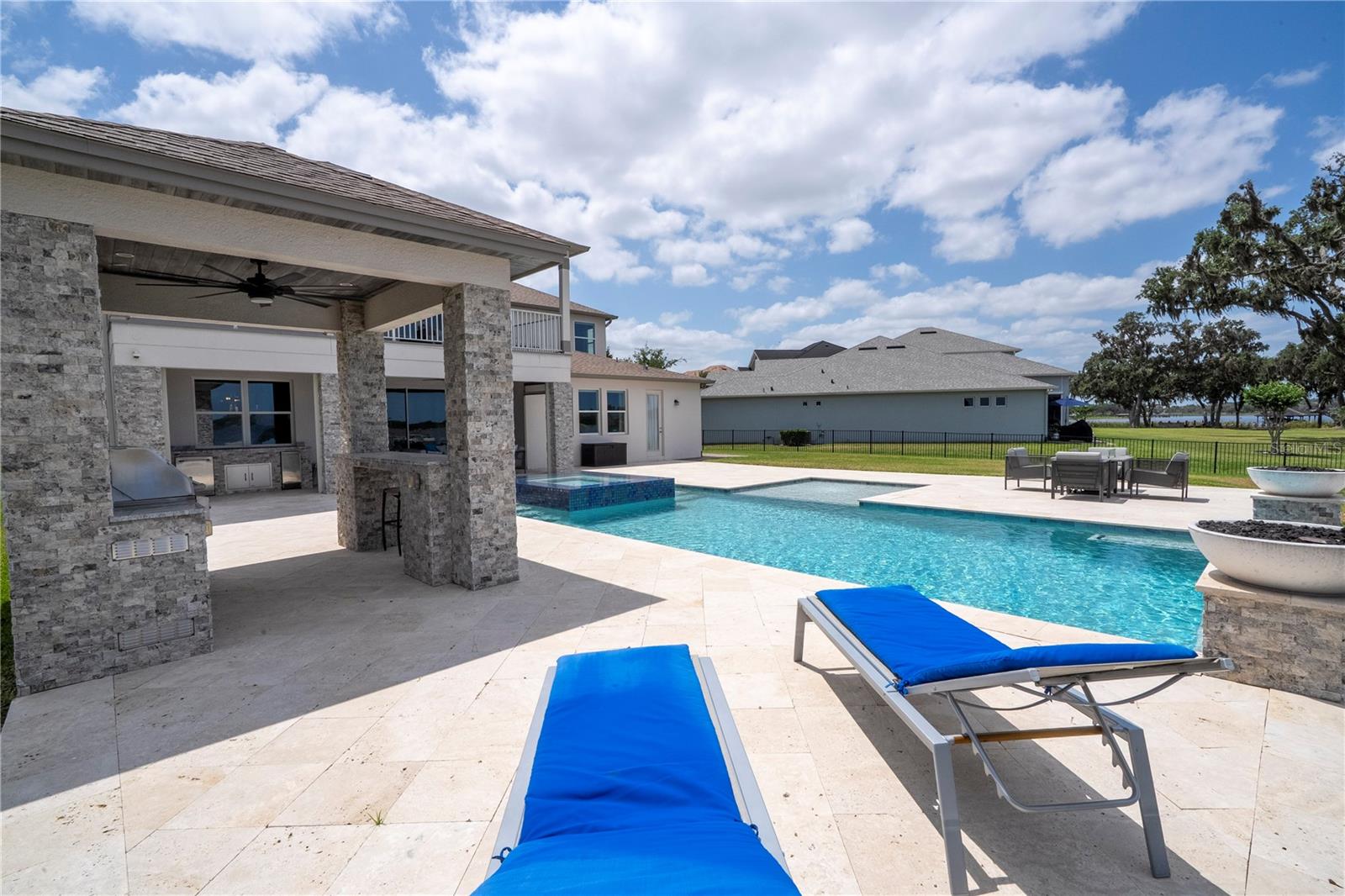 À beira do lago no lago Skable com doca de barco particular, elevador de barco e teleférico. Sunsets bonitos todas as noites ao longo do lago Johns. Esta casa possui 5 quartos, 6 banheiros, 2 meio banheiros, além de um escritório, sala de bônus e teatro à prova de som personalizado, com uma tela de 110 polegadas e cadeiras reclináveis. A costa da casa é de 135 pés. O lago Johns tem mais de 2.400 acres e abrange dois municípios. Espaçosa cozinha moderna com geladeira subzero, fabricante de gelo, forno de convecção dupla, armários atualizados e muito mais. A cozinha se abre para a sala da família, que possui uma lareira elétrica personalizada para o ambiente o ano todo., Draperias de controle remoto personalizadas; som surround e portas deslizantes empilháveis para a área adjacente da piscina. Relaxe em sua Lanai com vistas à beira do lago, telas de energia com vista para a piscina infinita de água salgada e spa. Grande área da piscina com 2 tigelas de fogo e 10 x 10 convés de natação. A cozinha de verão embutida em ovo verde, grelha a gás ao ar livre de 42 ", geladeira, fabricante de gelo, área de bar, TV externa e muito mais para entretenimento depois de um dia no lago. A doca de barco está no topo da linha com o deck resistente ao clima e o elevador de barcos cobertos e o banheiro principal. No térreo, a área de estar principal; Suite, Garagem de 3 carros, pisos epóxi, armários de trabalho personalizados. Lojas, restaurantes e pontos noturnos.