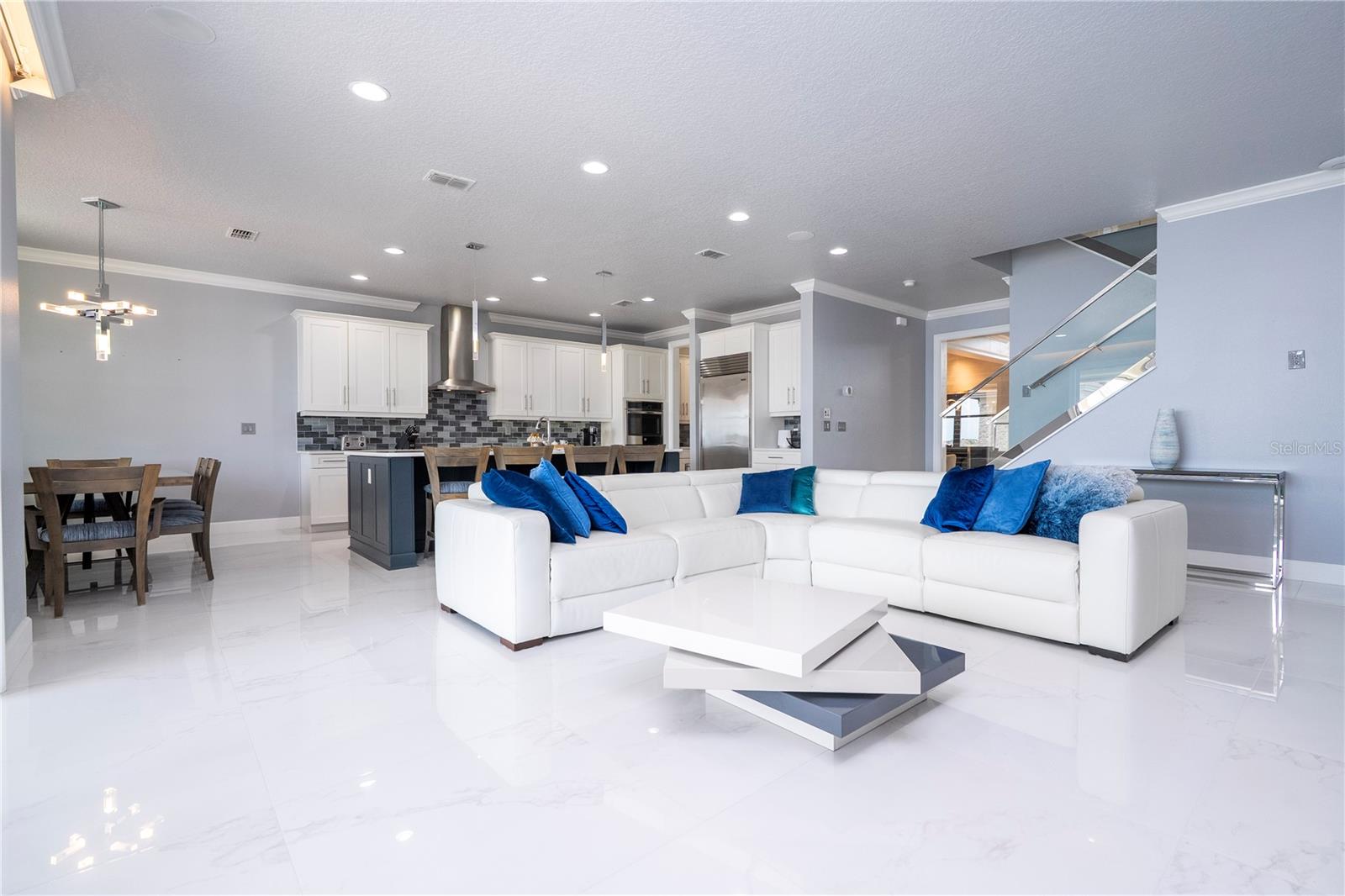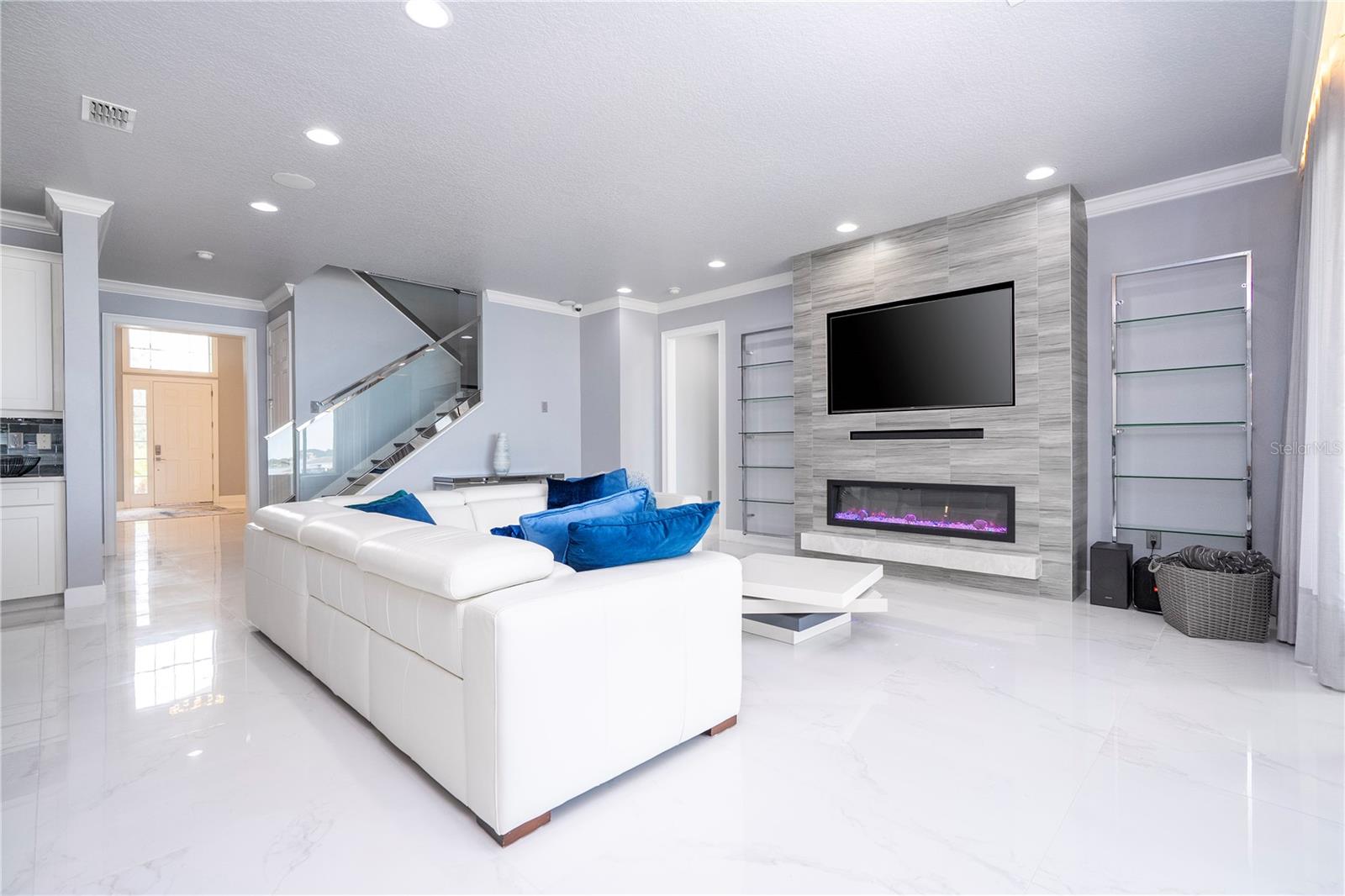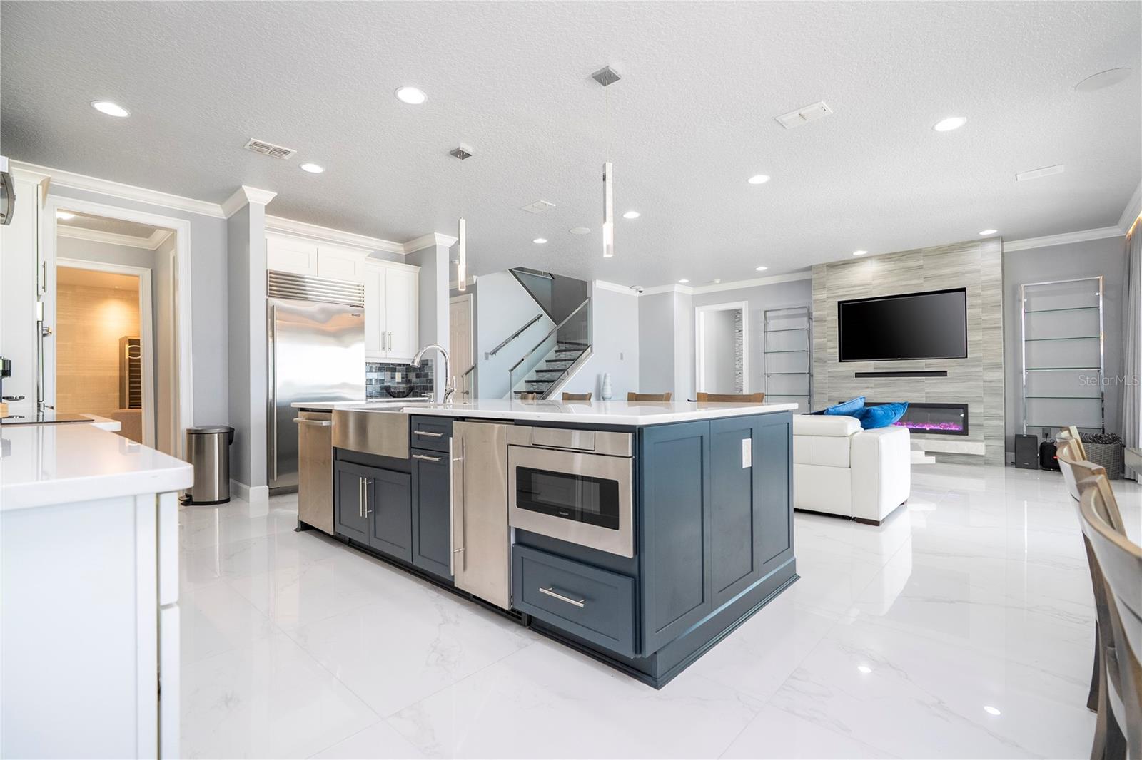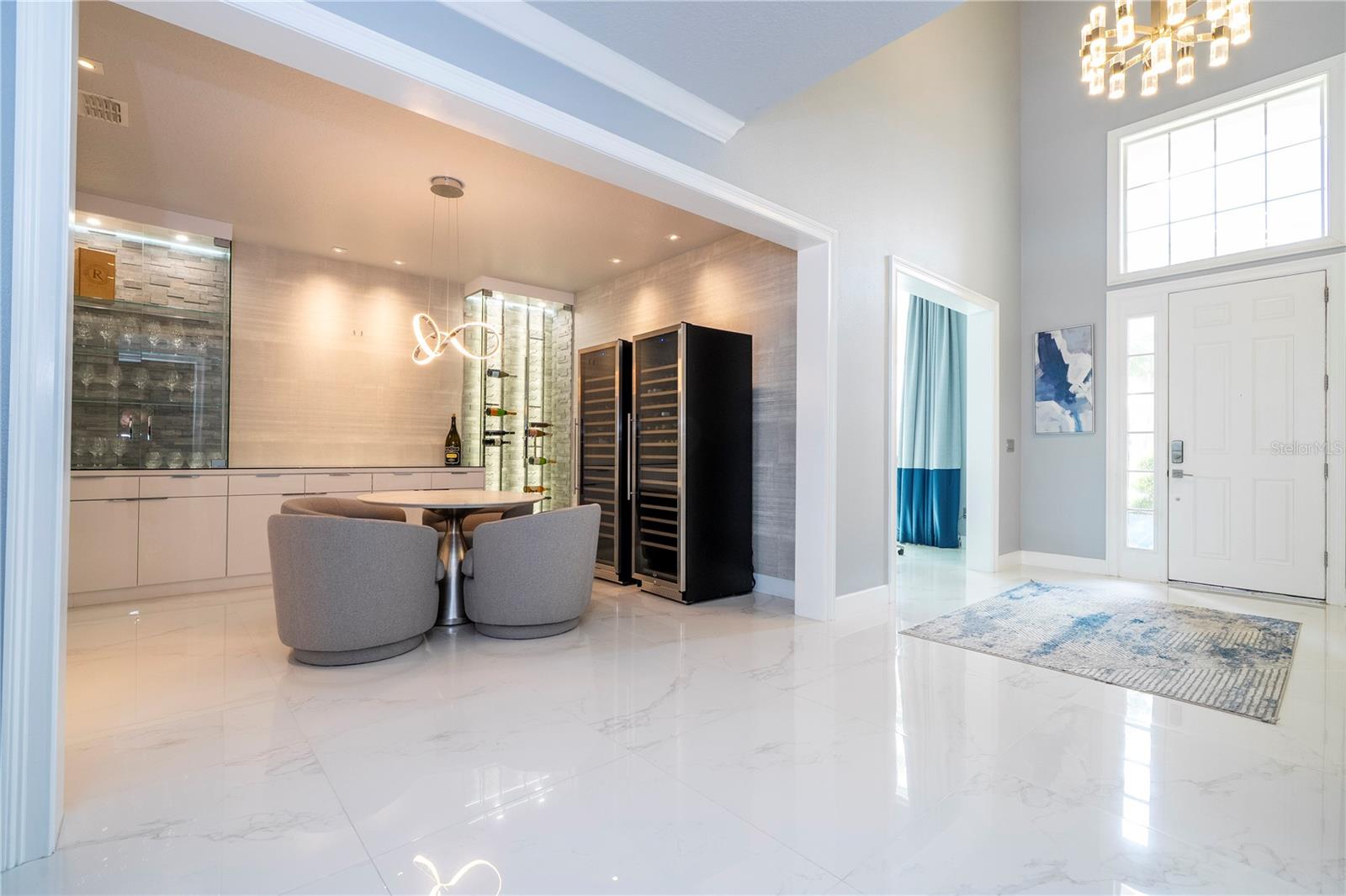 À beira do lago no lago Skable com doca de barco particular, elevador de barco e teleférico. Sunsets bonitos todas as noites ao longo do lago Johns. Esta casa possui 5 quartos, 6 banheiros, 2 meio banheiros, além de um escritório, sala de bônus e teatro à prova de som personalizado, com uma tela de 110 polegadas e cadeiras reclináveis. A costa da casa é de 135 pés. O lago Johns tem mais de 2.400 acres e abrange dois municípios. Espaçosa cozinha moderna com geladeira subzero, fabricante de gelo, forno de convecção dupla, armários atualizados e muito mais. A cozinha se abre para a sala da família, que possui uma lareira elétrica personalizada para o ambiente o ano todo., Draperias de controle remoto personalizadas; som surround e portas deslizantes empilháveis para a área adjacente da piscina. Relaxe em sua Lanai com vistas à beira do lago, telas de energia com vista para a piscina infinita de água salgada e spa. Grande área da piscina com 2 tigelas de fogo e 10 x 10 convés de natação. A cozinha de verão embutida em ovo verde, grelha a gás ao ar livre de 42 ", geladeira, fabricante de gelo, área de bar, TV externa e muito mais para entretenimento depois de um dia no lago. A doca de barco está no topo da linha com o deck resistente ao clima e o elevador de barcos cobertos e o banheiro principal. No térreo, a área de estar principal; Suite, Garagem de 3 carros, pisos epóxi, armários de trabalho personalizados. Lojas, restaurantes e pontos noturnos.