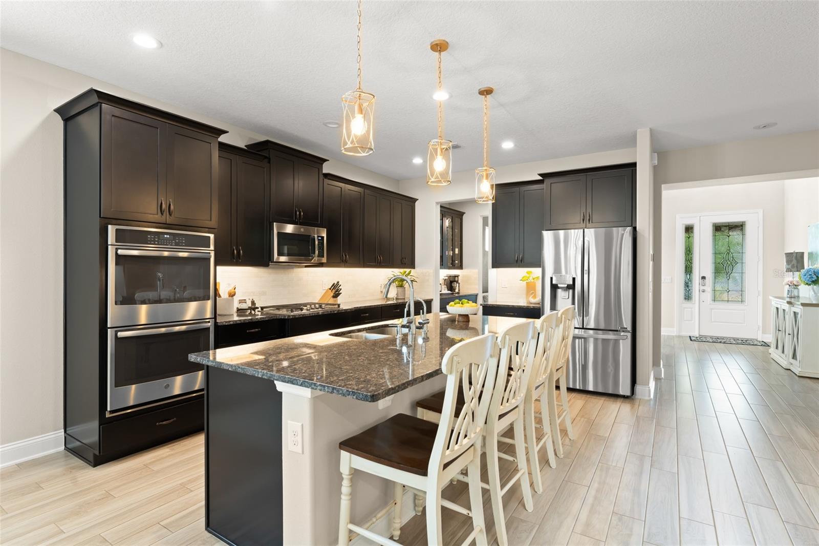 Descubra a casa dos seus sonhos em Summerlake, uma comunidade alta aninhada ao lado do pitoresco campo de golfe nacional de Orange County. Esta propriedade excepcional foi projetada para quem aprecia a elegância, o conforto e as vistas deslumbrantes. Entre em uma cozinha de conceito aberto que flui perfeitamente para o recanto do café da manhã e a sala da família, todos adornados com um requintado piso de ladrilhos de nível 4 de nível 4. O paraíso deste chef possui utensílios de gás de aço inoxidável, bancadas de granito atualizadas e espaço abundante no gabinete em belos armários de 42 ". Perfeito para os hóspedes, um quarto particular com banheiro completo está situado no primeiro andar. Desfrute de entretenimento no convidativo Lanai coberto, que oferece uma vista deslumbrante do campo de golfe e tem vista para uma piscina de tamanho generoso, ideal para relaxar ou hospedar reuniões animadas. O segundo andar abriga três quartos secundários de tamanho generoso, um banheiro compartilhado e um loft espaçoso, criando uma área de estar privada perfeita para família ou convidados. A suíte do quarto principal, um verdadeiro santuário, ocupa toda a parte traseira da casa e apresenta um teto de bandeja com vistas de golfe de todos os cantos. Este refúgio luxuoso inclui uma varanda privada, pias duplas, um chuveiro deslumbrante com detalhes elegantes, uma banheira de imersão, um closet, um armário de água privado e uma abundância de luz natural. Para maior conveniência, a lavanderia está localizada no segundo andar, aumentando a funcionalidade desta casa notável. Não perca a oportunidade de viver nesta propriedade excepcional que combina perfeitamente estilo e conforto! Sem vizinhos traseiros. Lar e piscina inteira e salgada têm energia solar, que é totalmente de propriedade. Perto de 429.