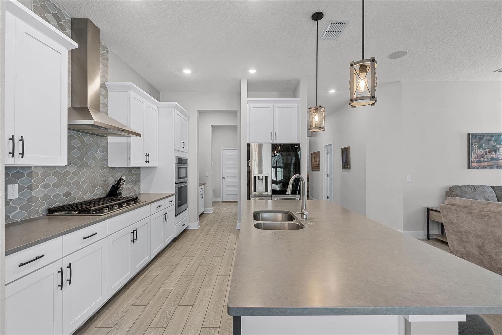 Vendedor oferecendo uma contribuição de US$ 8.000 para os custos de fechamento do comprador! Bem-vindo a esta deslumbrante casa térrea, idealmente localizada na muito procurada área de Horizon West/Winter Garden, a poucos minutos dos portões da Disney. Situada em um condomínio residencial conhecido por sua localização privilegiada e comodidades comunitárias, esta casa combina perfeitamente conforto, estilo e conveniência. Um hall de entrada amplo e acolhedor com uma charmosa parede com detalhes em shiplap prepara o cenário quando você entra. A planta aberta e iluminada é repleta de luz natural e destacada pelo belo piso de cerâmica com aspecto de madeira em todas as áreas de estar principais. A cozinha inspirada no chef é o coração da casa, com armários brancos com gavetas de fechamento suave, ferragens de níquel escovado, bancadas de quartzo cinza, uma pia de casa de fazenda e um backsplash atraente que reúne o espaço lindamente. Atualizações cuidadosas continuam com som surround no teto, tetos de bandeja no corredor e na suíte principal e armários com fechamento suave nos banheiros também. Com quatro quartos de áreas generosas e três banheiros completos, o layout oferece flexibilidade para convivência familiar, convidados ou home office. Relaxe na varanda com vista para um quintal tranquilo sem vizinhos traseiros! Aproveite o seu próprio retiro privado na Flórida. Localizada em uma comunidade de gás e perto de tudo o que a Flórida Central tem a oferecer, esta casa realmente atende a todos os requisitos. Não perca a oportunidade de tornar seu este imóvel excepcional.