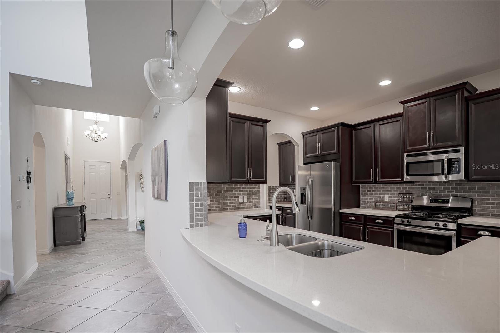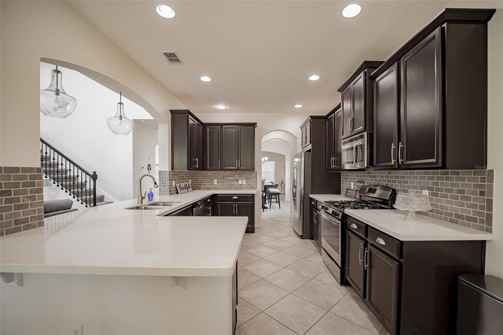 Bem-vindo a esta excepcional casa de 5 quartos e 4 banheiros, localizada no Olaok em Hamlin. Esta residência lindamente atualizada oferece uma mistura perfeita de luxo e conforto, ideal para a vida moderna. À medida que você se aproxima, você será cativado pela tinta externa fresca da casa, garagem para entrada lateral, entrada de automóveis de pavimentação recém-selada e jardim da frente profissionalmente paisagístico. No interior, o convidativo hall de entrada leva a uma planta baixa, com pisos de ladrilhos deslumbrantes por toda parte, tetos altos, arcos e molduras elegantes da coroa. A sala de jantar formal é perfeita para entretenimento, enquanto o escritório em casa, completo com portas francesas e armazenamento embutido, oferece um espaço privado para o trabalho ou estudo. A cozinha gourmet é o sonho de um chef, com um recanto de jantar, despensa espaçosa, novos utensílios de aço inoxidável, bancadas em granito, um backsplash de vidro, uma ilha e uma barra de café da manhã com assentos e luzes pendentes. A sala de estar adjacente é perfeita para reuniões familiares e abre para um lanai traseiro, ideal para o relaxamento do verão. O expansivo quintal oferece amplo espaço para uma paisagem de jogadas, jardim ou fogo de fogo e apoia o espaço verde para maior privacidade. A suíte primária, localizada no nível principal, é um verdadeiro retiro com tetos de bandeja, armários duplos e um banheiro privativo com vaidades dele e seu, uma banheira de imersão de canto e um chuveiro de vidro sem moldura. No andar de cima, uma grande sala familiar oferece espaço adicional, enquanto quatro quartos de hóspedes, cada um em seu próprio canto da casa, oferecem privacidade e conforto. Dois banheiros completos completam o nível superior. Recursos adicionais incluem uma lavanderia de zona de gota na entrada da garagem de 2 carros. O Overlook da Comunidade Hamlin oferece uma riqueza de comodidades, incluindo trilhas serenas, piscinas de vários resorts, um splash pad, um clube à beira do lago, um centro de fitness e um parque à beira-mar com lançamento de barco e playground. A casa está convenientemente localizada a apenas 5 minutos do Publix e as opções de compras e restaurantes no Hamlin Mall, com fácil acesso à RT. 429. A Disney e outros parques temáticos estão a menos de 15 minutos, e fica a uma curta distância de carro do centro de Orlando. Não perca a oportunidade de tornar esta propriedade impressionante sua nova casa!