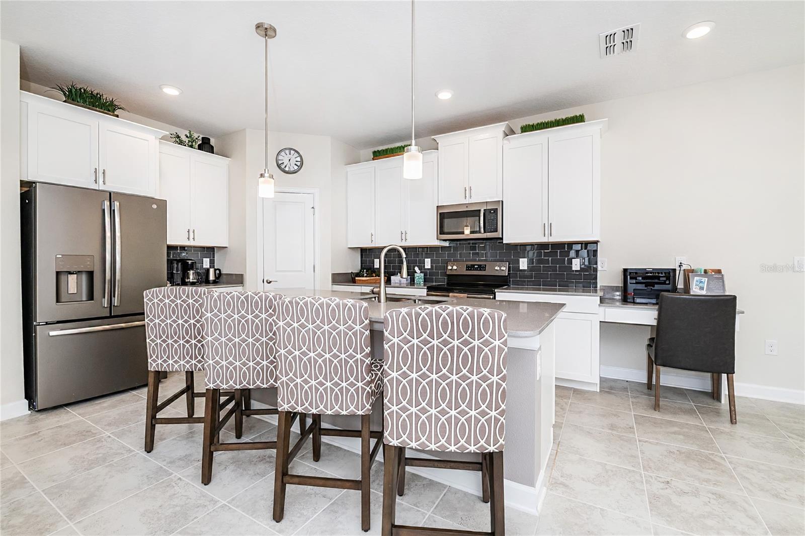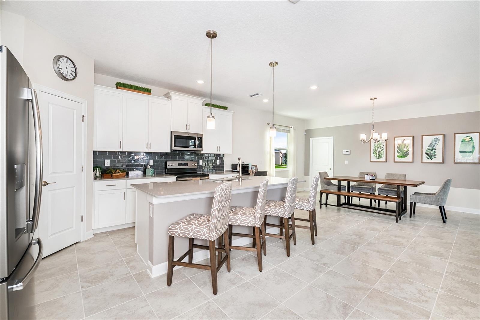 Bem -vindo à sua casa de sonho no coração da Flórida Central! Esta residência de tirar o fôlego de 5 quartos e 3 banheiros eficientes em termos de energia está aninhada em um lote de canto desejável e oferece uma mistura imbatível de estilo, conforto e conveniência. A partir do momento em que você chega, você vai adorar o apelo do meio -fio desta casa, pois a garagem da entrada traseira coloca o foco na encantadora varanda da frente. Entre em uma planta piso de conceito aberto com pisos elegantes em todas as áreas de estar, criando uma atmosfera brilhante e convidativa. The modern chef’s kitchen features 42” cabinets, stone countertops, stainless steel appliances, a closet pantry, and an island sink with a breakfast bar, ideal for casual dining and entertaining. The expansive master suite is a true retreat, boasting a tray ceiling, walk-in closet, and spa-like en-suite bathroom with dual sinks, a luxurious garden tub, and a separate shower. In the rear of the home, you'll love and the large screened-in lanai, perfect for relaxing all year long....Located in the sought-after Panther View community, you'll enjoy the tranquility of nature while having easy access to major highways, world-class golf courses, top-rated hospitals, and highly acclaimed schools. Plus, you're just minutes away from Disney World, premier shopping, fine dining, and all of Orlando’s top attractions! Don’t miss this rare opportunity to own a spectacular home in one of Central Os locais mais cobiçados da Flórida.
